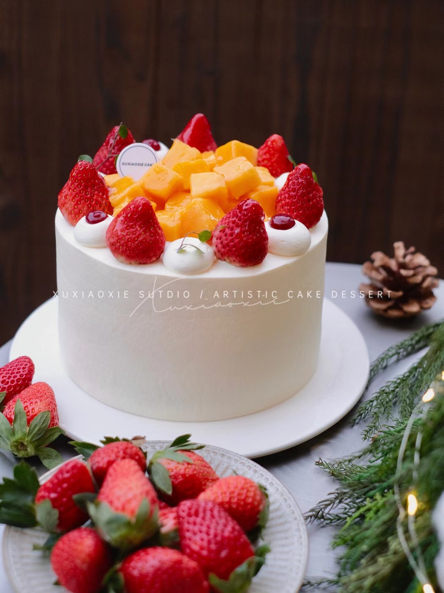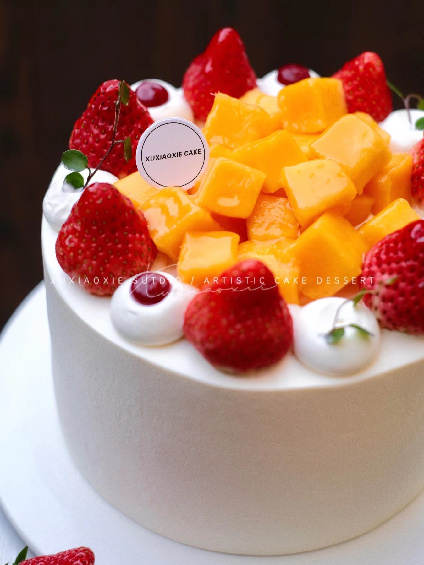 快来感受草莓和芒果的双重快乐!晶莹剔透的奶油草莓和黄金水润的新鲜芒果,松软的戚风胚,最经典的搭配,快乐也是超级加倍!