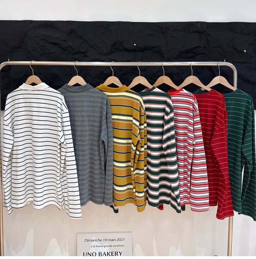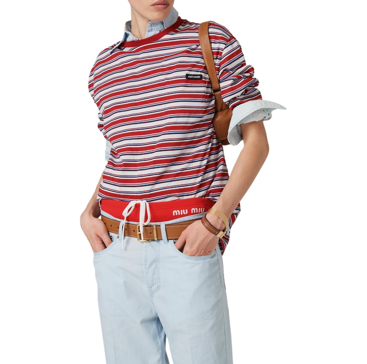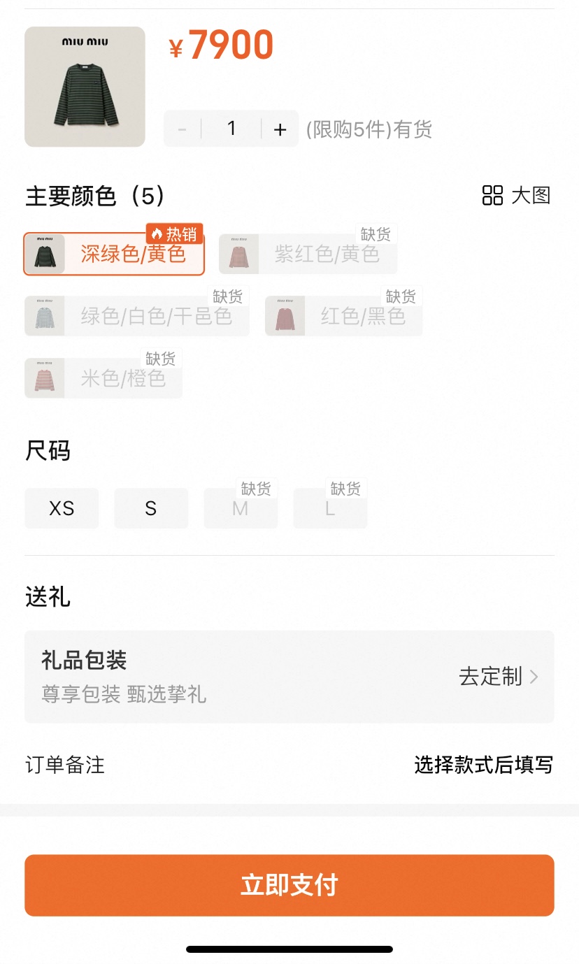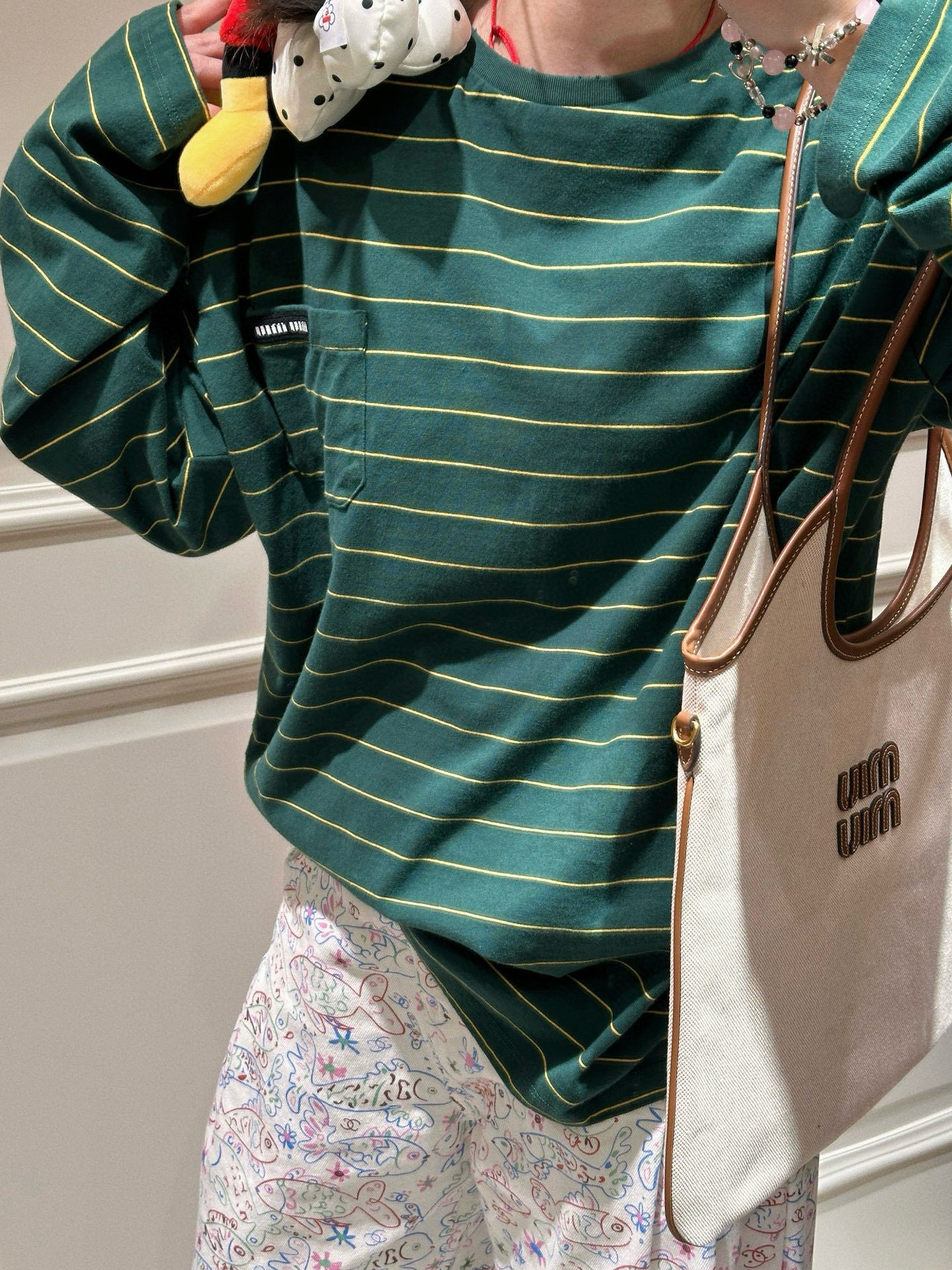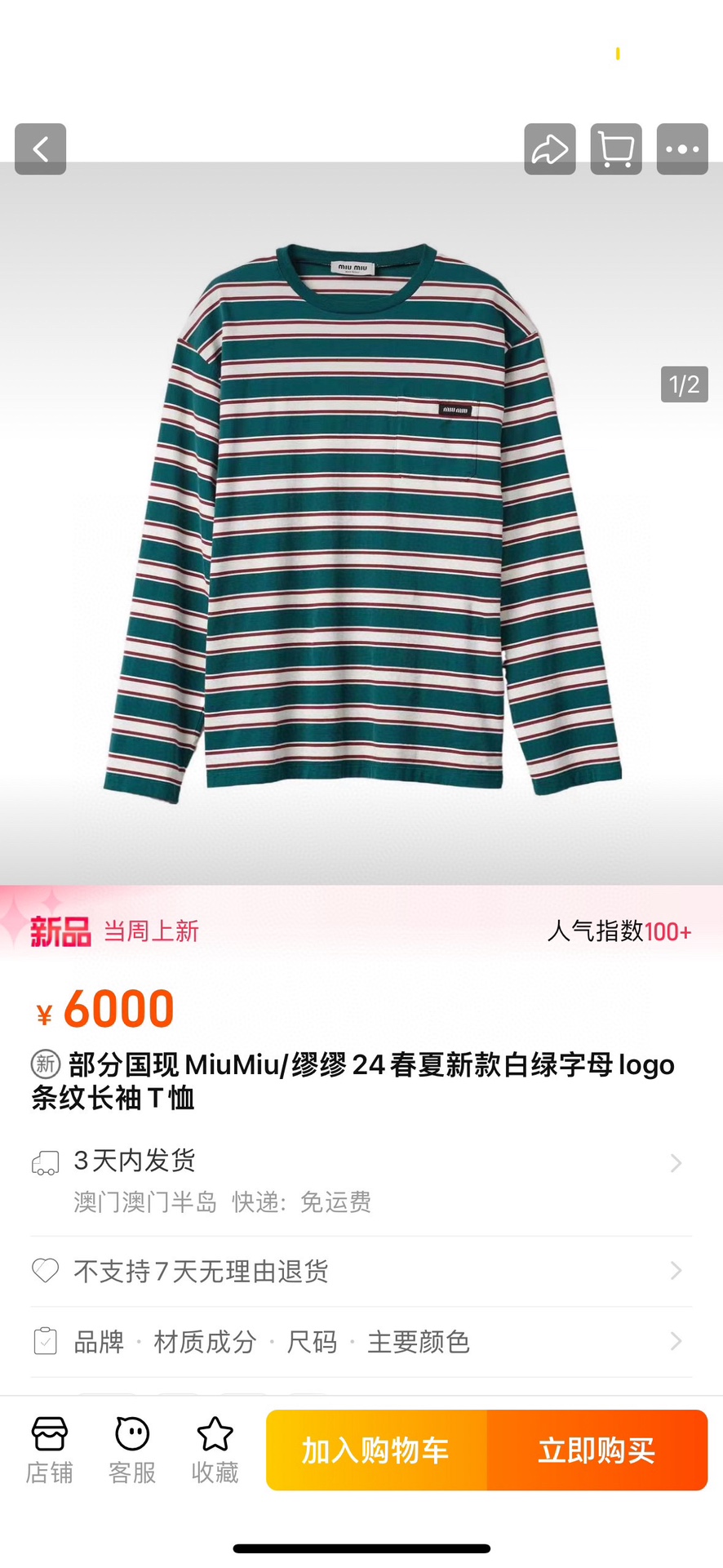 感觉miu家的设计师真的没有设计瓶颈 每个新款都可以美出新高度! 开挂条纹miu 是主推元素 miu男孩女孩都蹲好 搭配万金油🌚 款1️⃣黄色条纹Polo款2️⃣灰色条纹Polo款3️⃣粗条纹t-绿色、粗条纹t-红色款4️⃣细条纹t-绿色、细条纹t-红色款5️⃣ 白色条纹polo