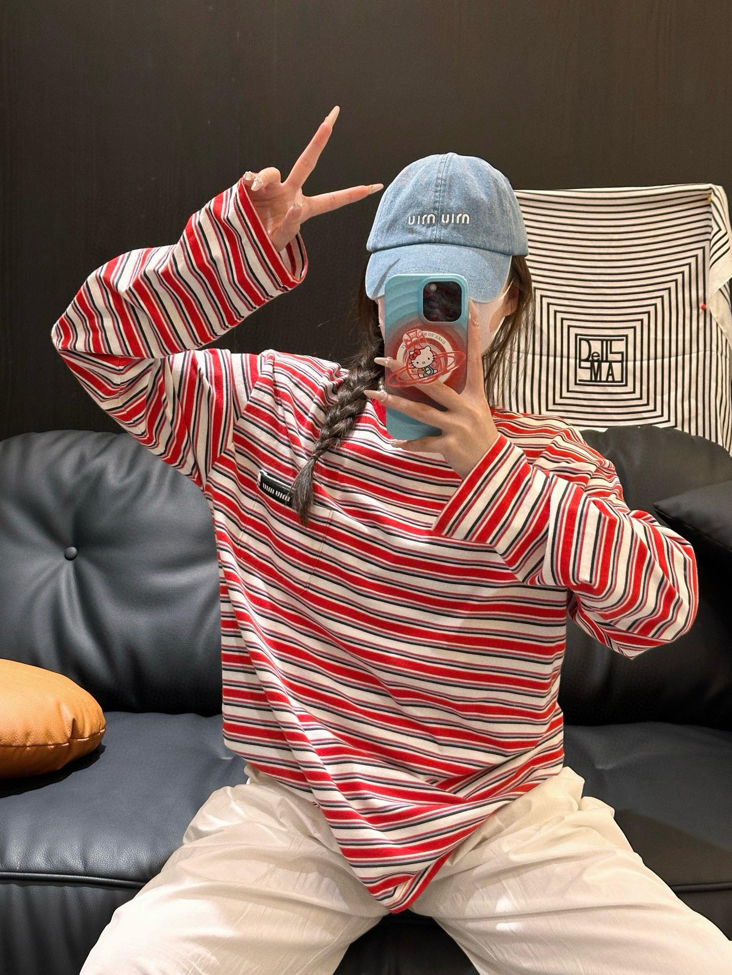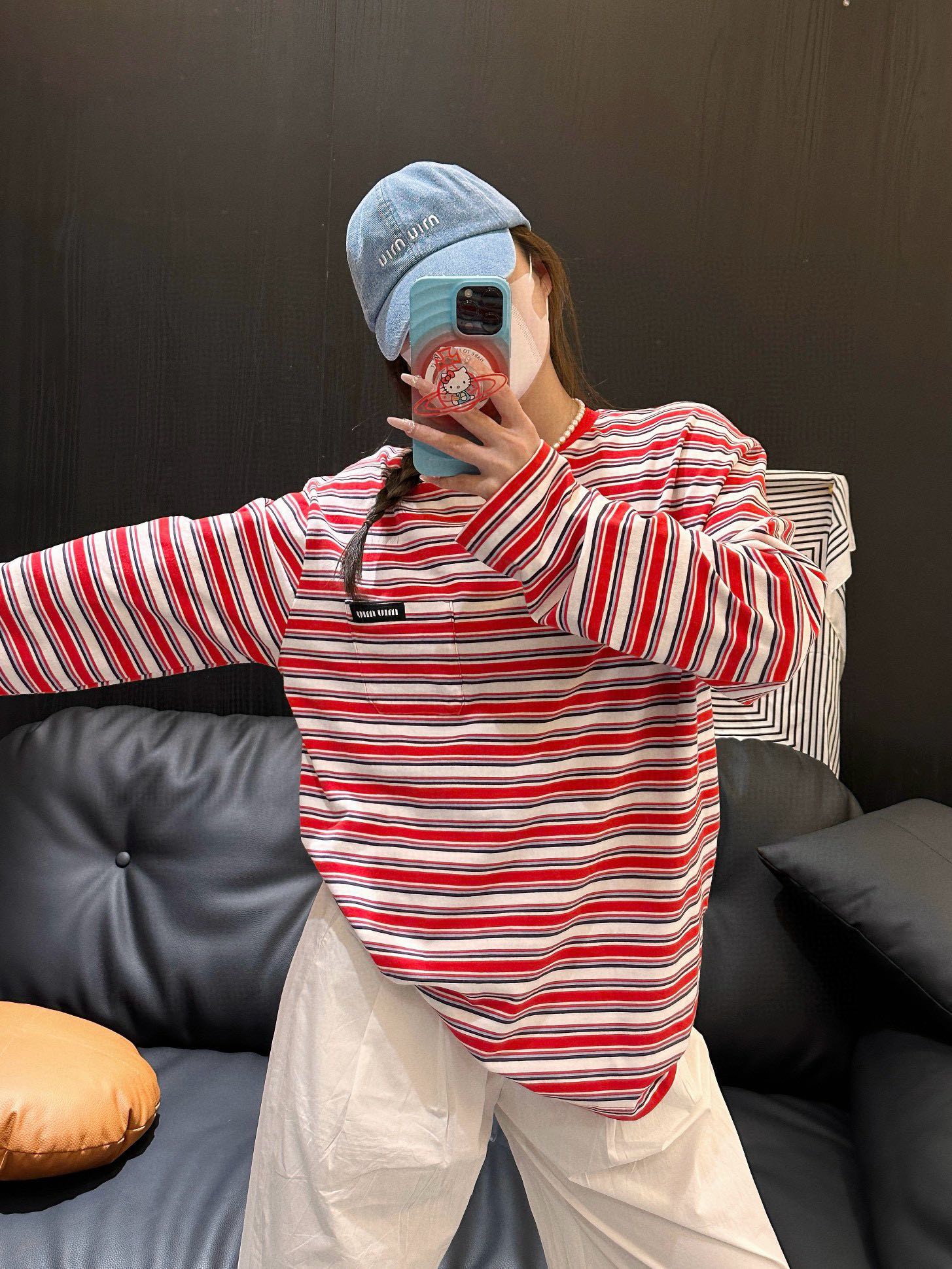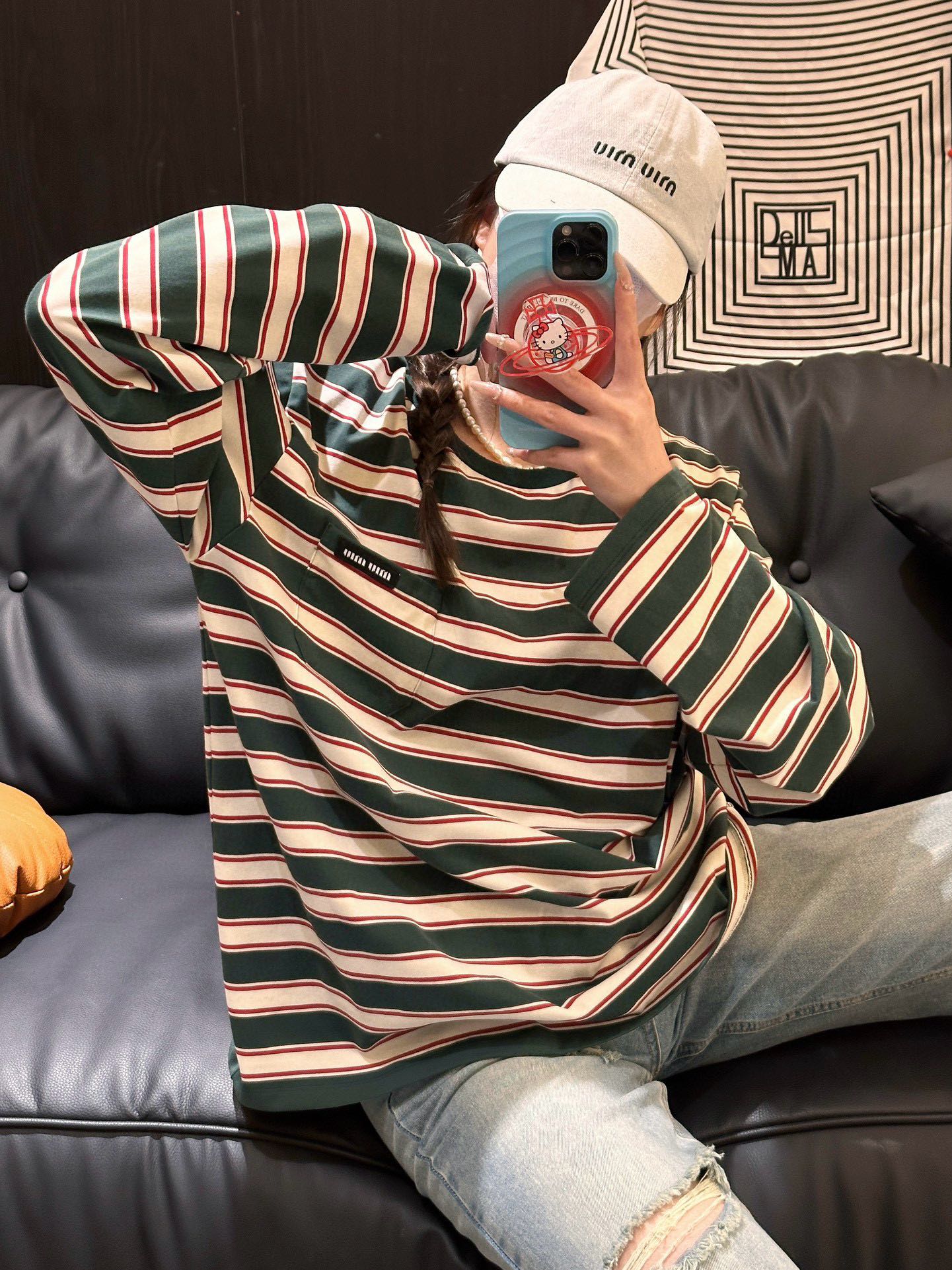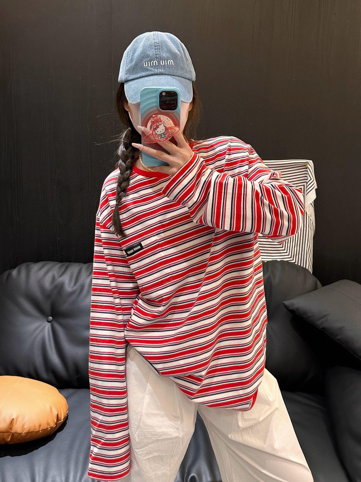 1️⃣𝐦𝐢𝐮𝟐𝟓𝐬𝐬最新款情侣条纹长𝐭𝐞𝐞