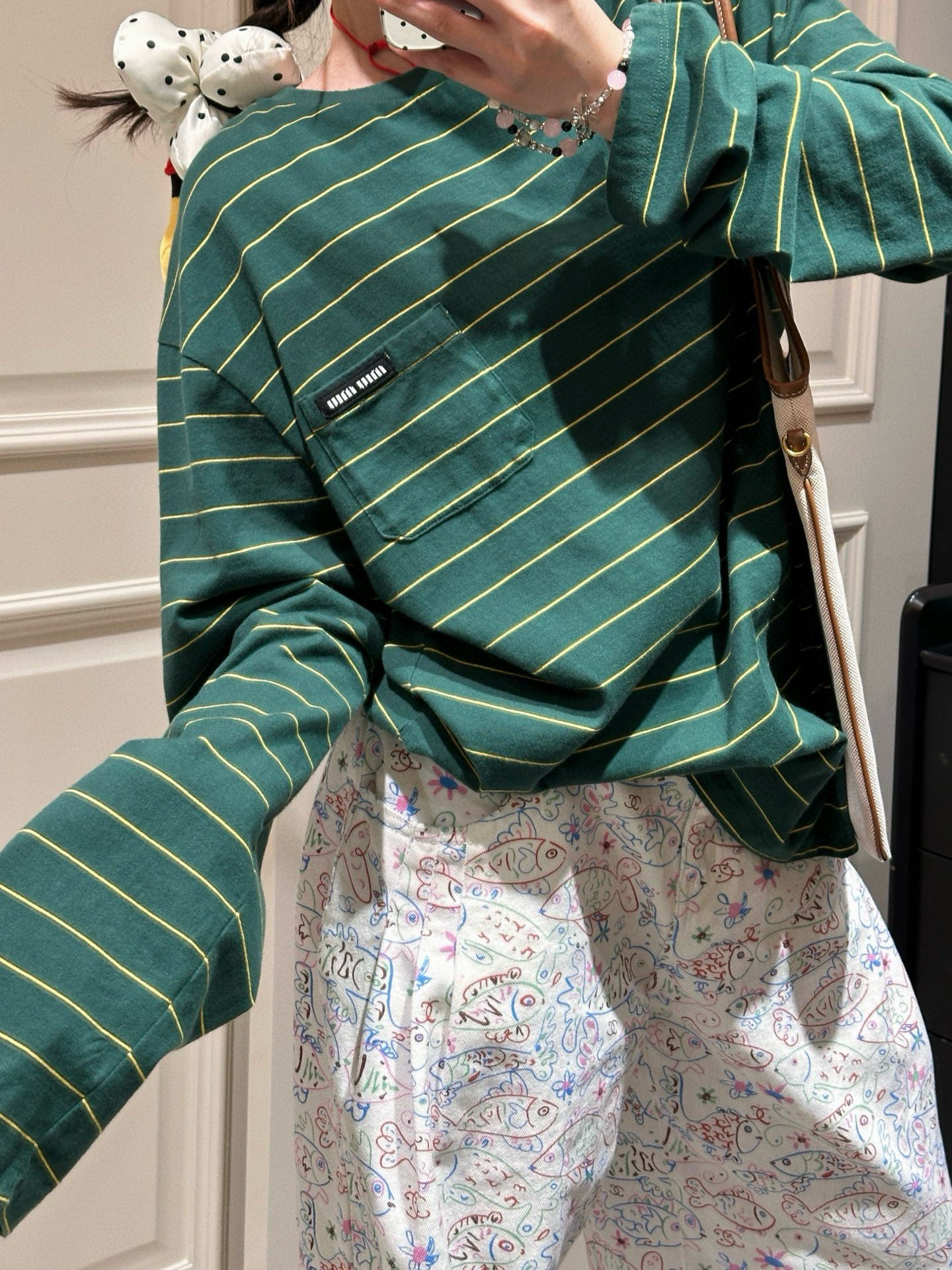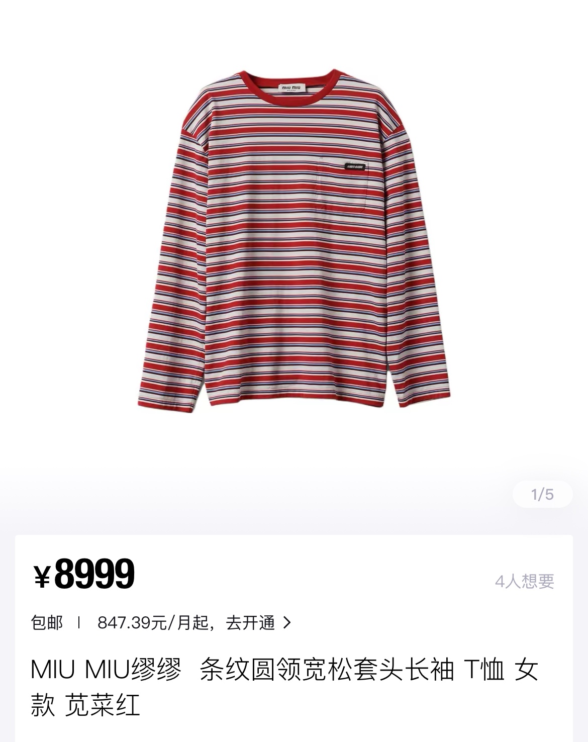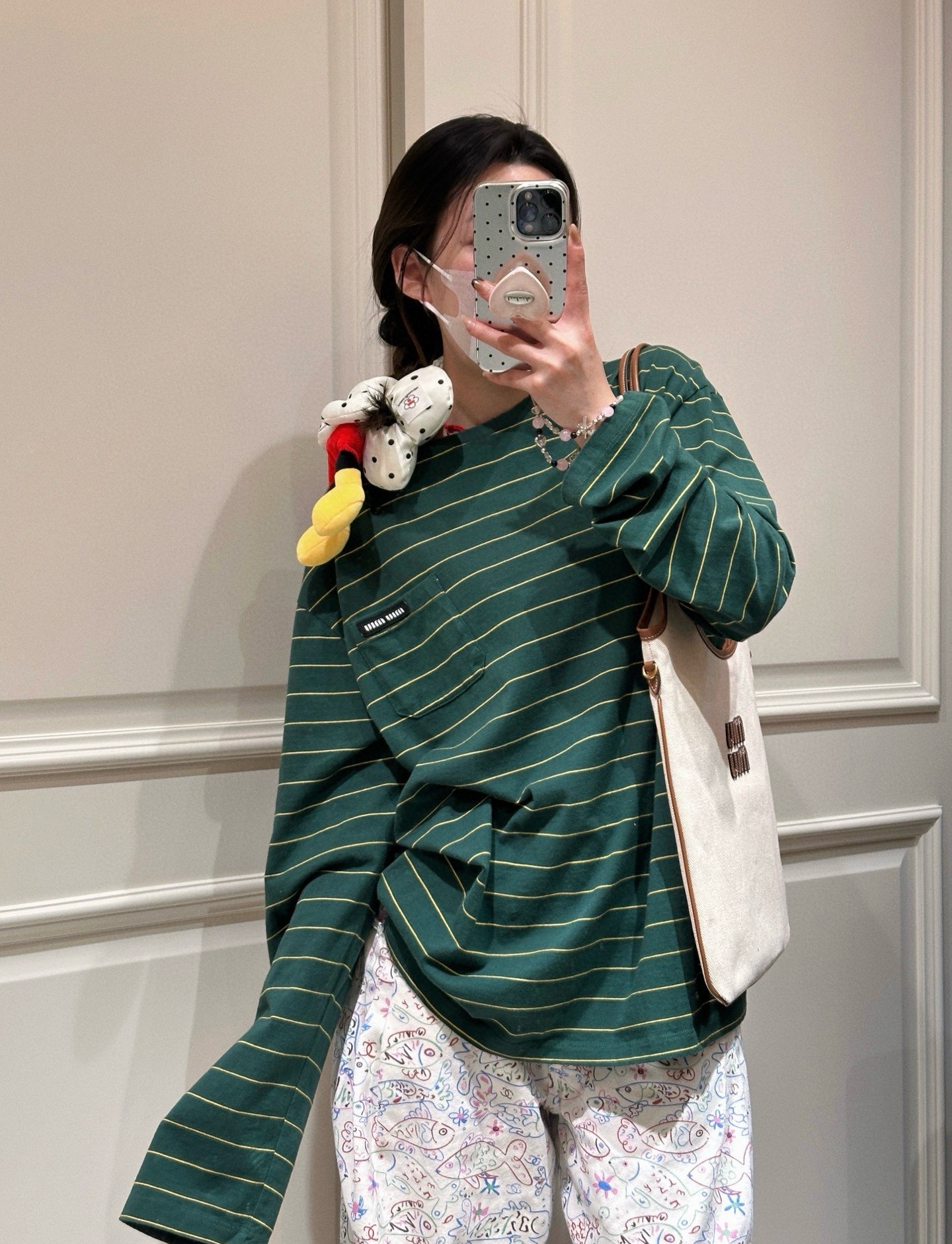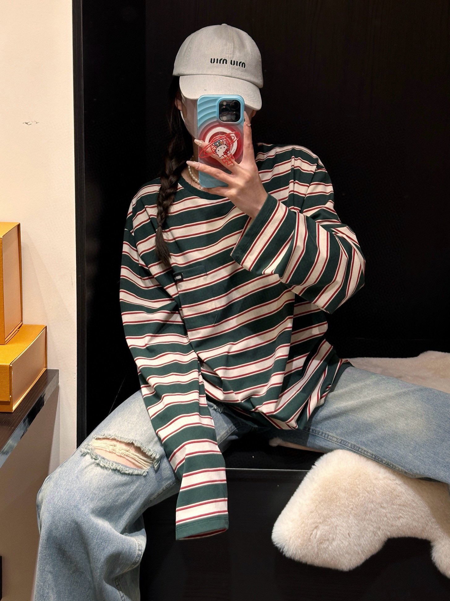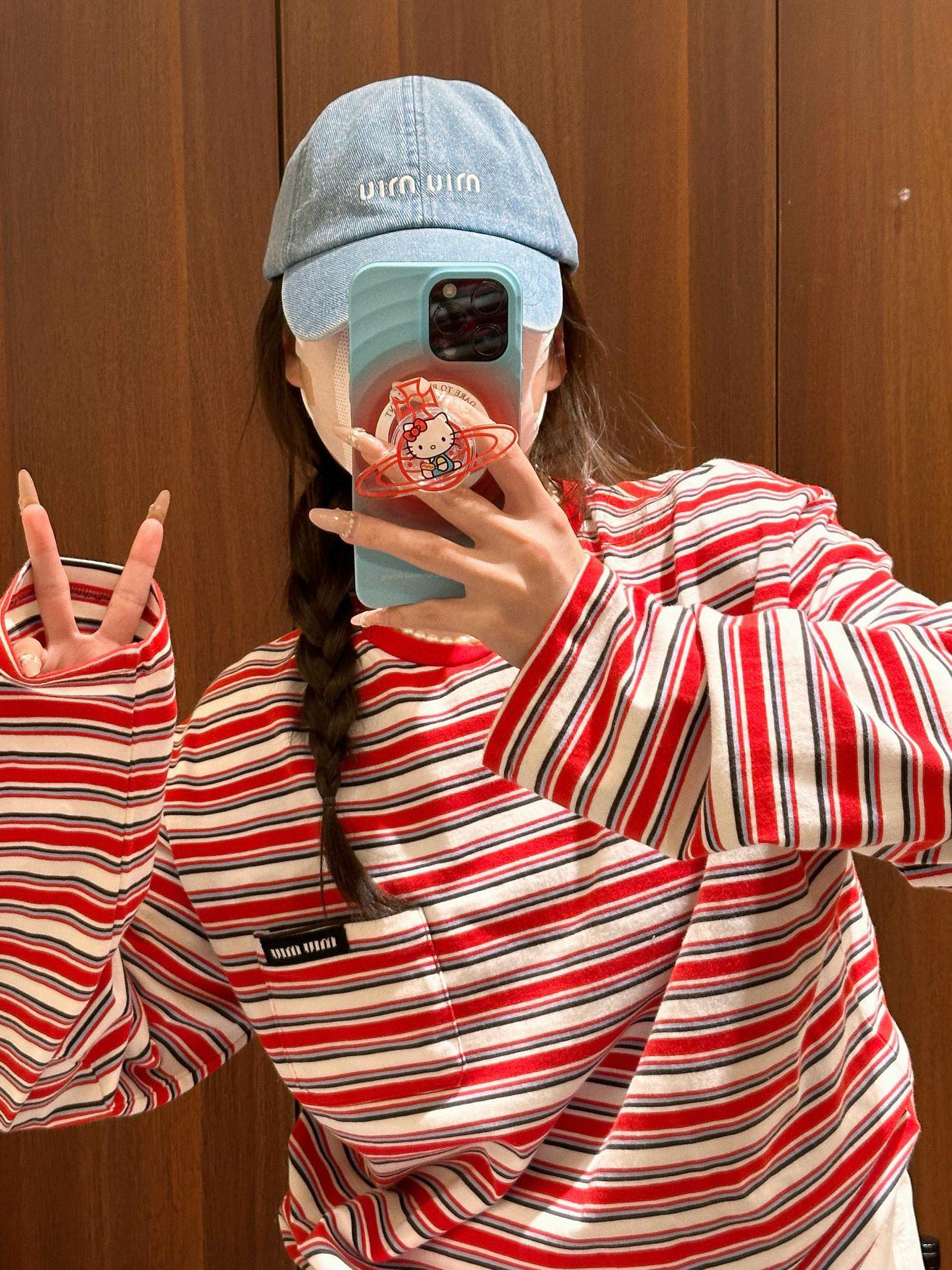 1️⃣𝐦𝐢𝐮𝟐𝟓𝐬𝐬最新款情侣条纹长𝐭𝐞𝐞