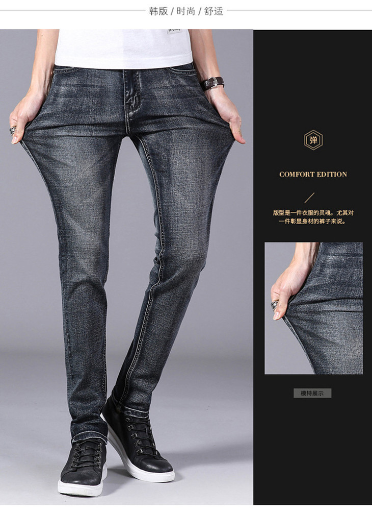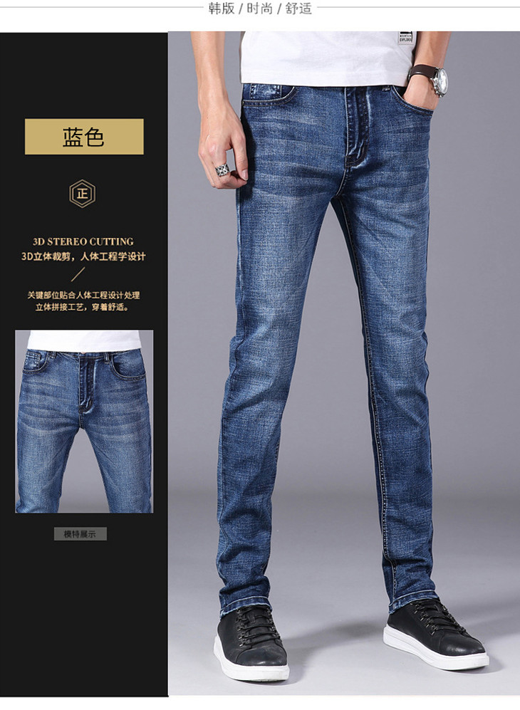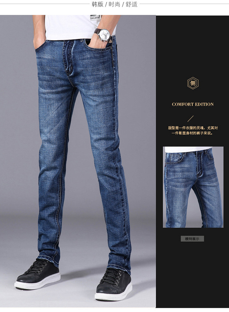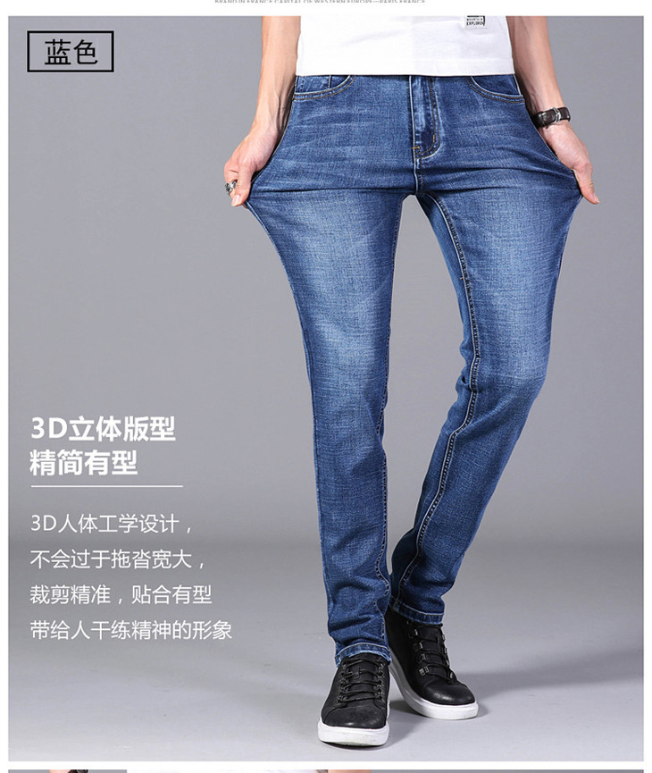 【服饰鞋包】.弹力小直筒牛仔裤男春夏款轻薄透气时尚男装修身裤子商务休闲男裤