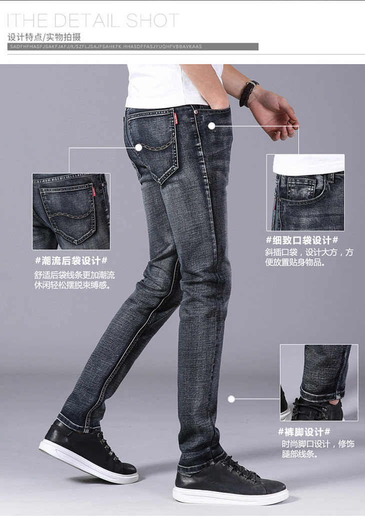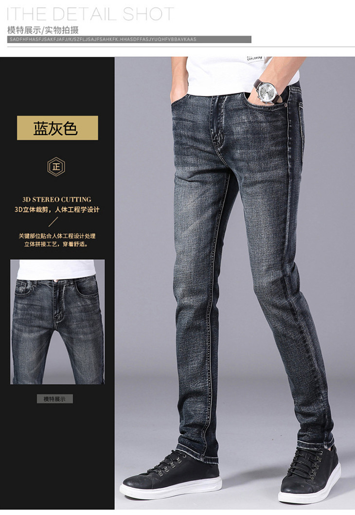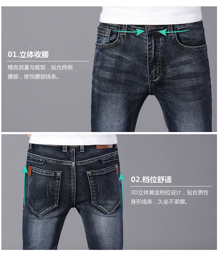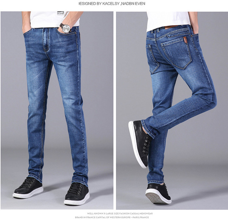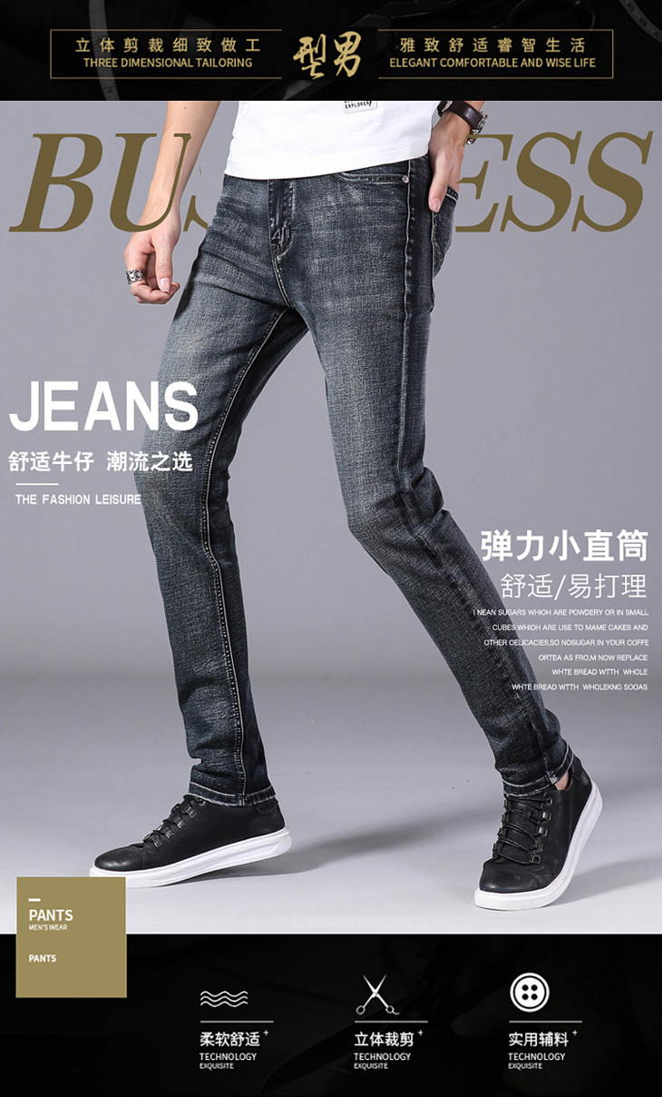 【服饰鞋包】.弹力小直筒牛仔裤男春夏款轻薄透气时尚男装修身裤子商务休闲男裤