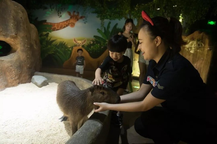 看完海豹训练表演后,小朋友们可以亲自上阵