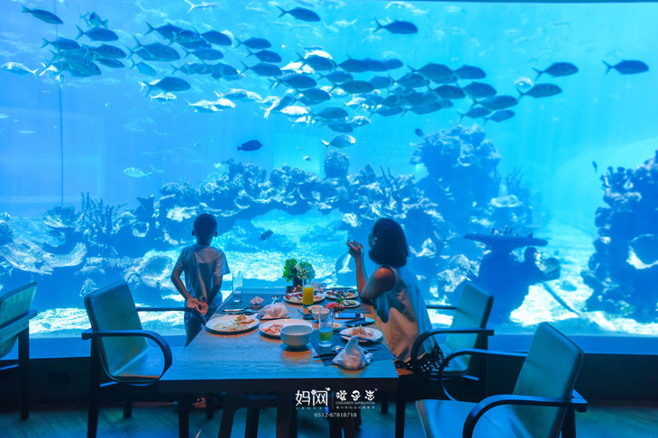 还可以在吃饭时和鲨鱼隔玻璃相望