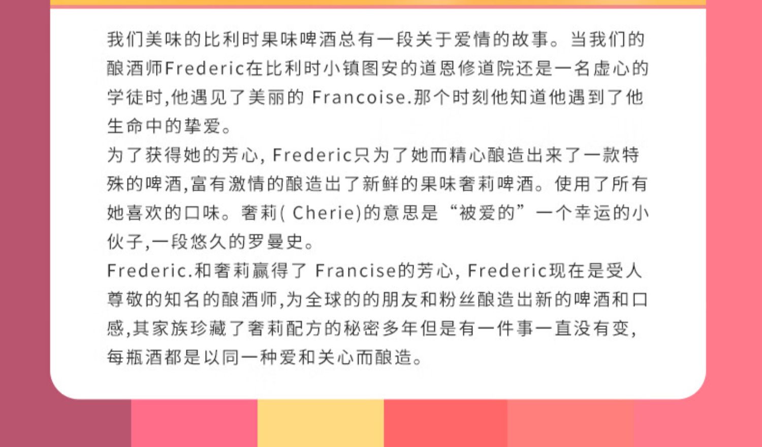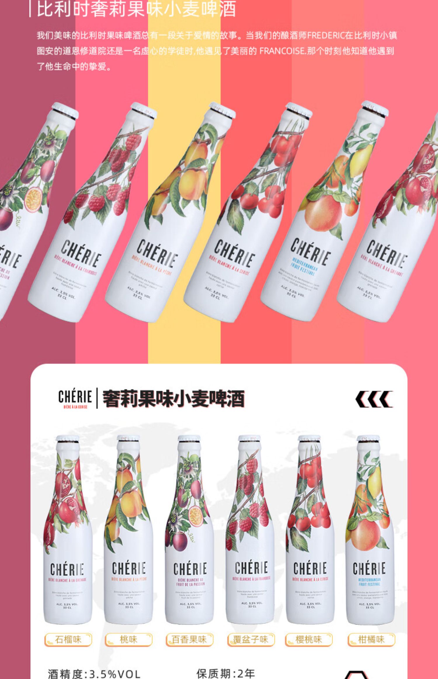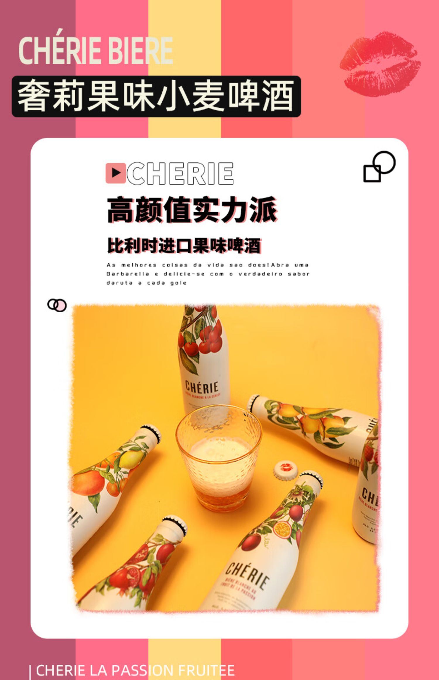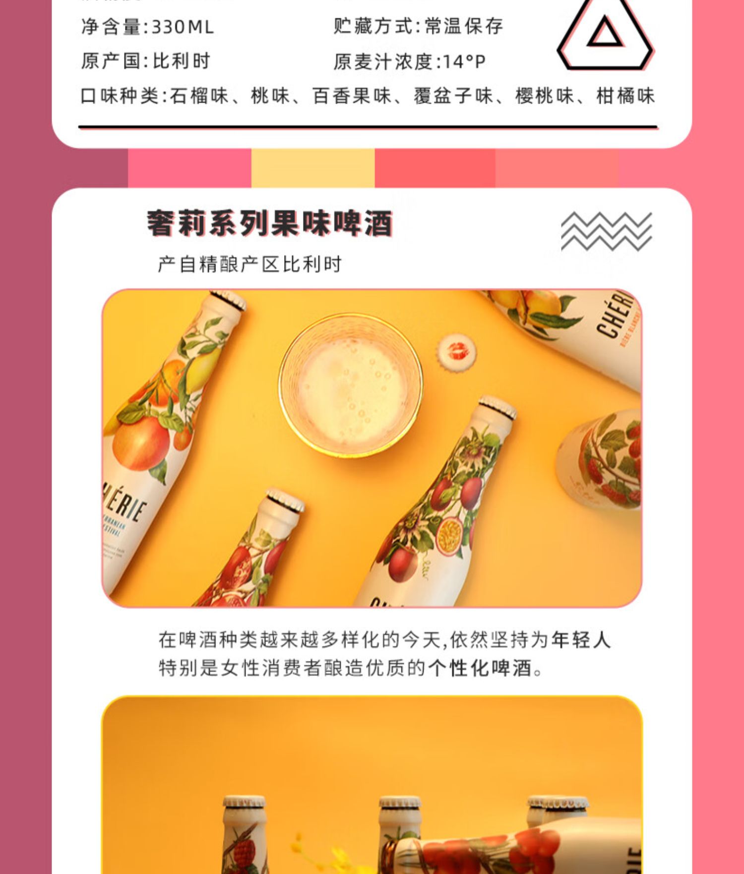 比利时进口Cherie奢莉桃味小麦啤酒女士水果味冰镇啤酒330ml/瓶