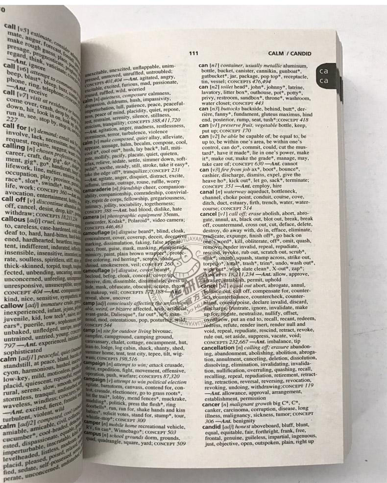 如果你在为写作总是用千篇一律的词感到烦恼,Roget’s 21st Century Thesaurus《罗氏21世纪近反义词典》这本工具书可以派上用场,还能当近反义词词典查。本词典出自业界负有盛名的Princeton Language Institute(普林斯顿语言学院),共收录50万个近义词反义词,全书词汇量超过100万,为目前市场上收词量较多的一本英语近反义词词典。 推荐理由: 1.按字母A-Z编排,方便快速准确查找单词; 2.收词丰富,释义简明、清晰、易懂; 3. 采用独特的Concept Index(概念索引),方便读者集中记忆意思相近的单词; 4. 第三版,所有近义词反义词均反映现代英语用法。 Combining scholarly authority with a new awareness of today’s communication demands, Roget’s 21st Century Thesaurus is the simple, reliable way to find the perfect word for your needs. It features an easy-to-use dictionary format plus a revolutionary Concept Index that arranges words by idea, thus enhancing the user’s process of association and leading to scores of additional selections. The inclusion of a wide spectrum of words and phrases with each entry-from sophisticated choices to completely new vocabulary in the language-brings users an exceptional number of alternatives to fit any variation of style and tone. —Created by the highly respected Princeton Language Institute —More word choices than any other thesaurus—OVER 1 MILLION WORDS! —Concise definitions for each main entry —A revolutionary Concept Index-arranged by idea, it mirrors the way we actually think! —No obsolete terms-all synonyms and antonyms reflect modern usage