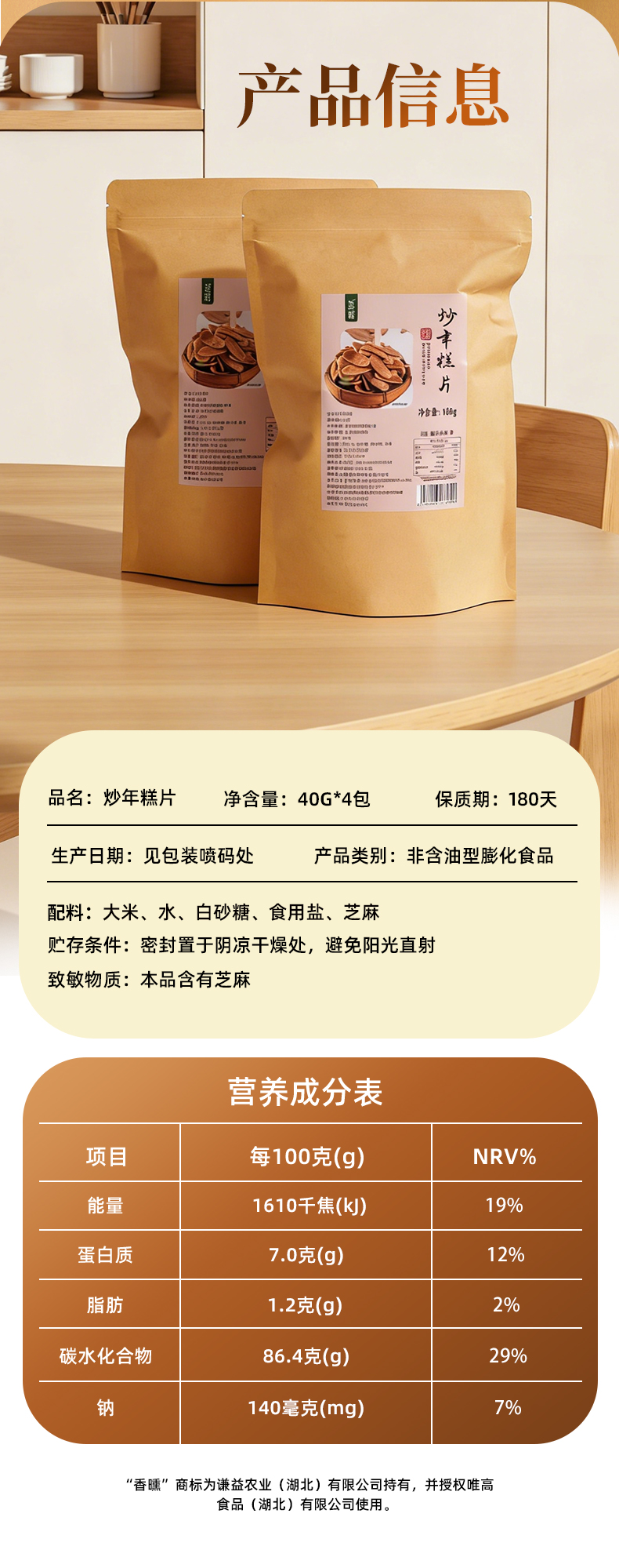 谦益香脆年糕片168g 石板大米年糕 明火炒制 0添加 非遗工艺 香脆可口