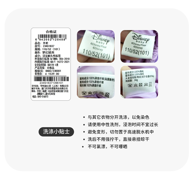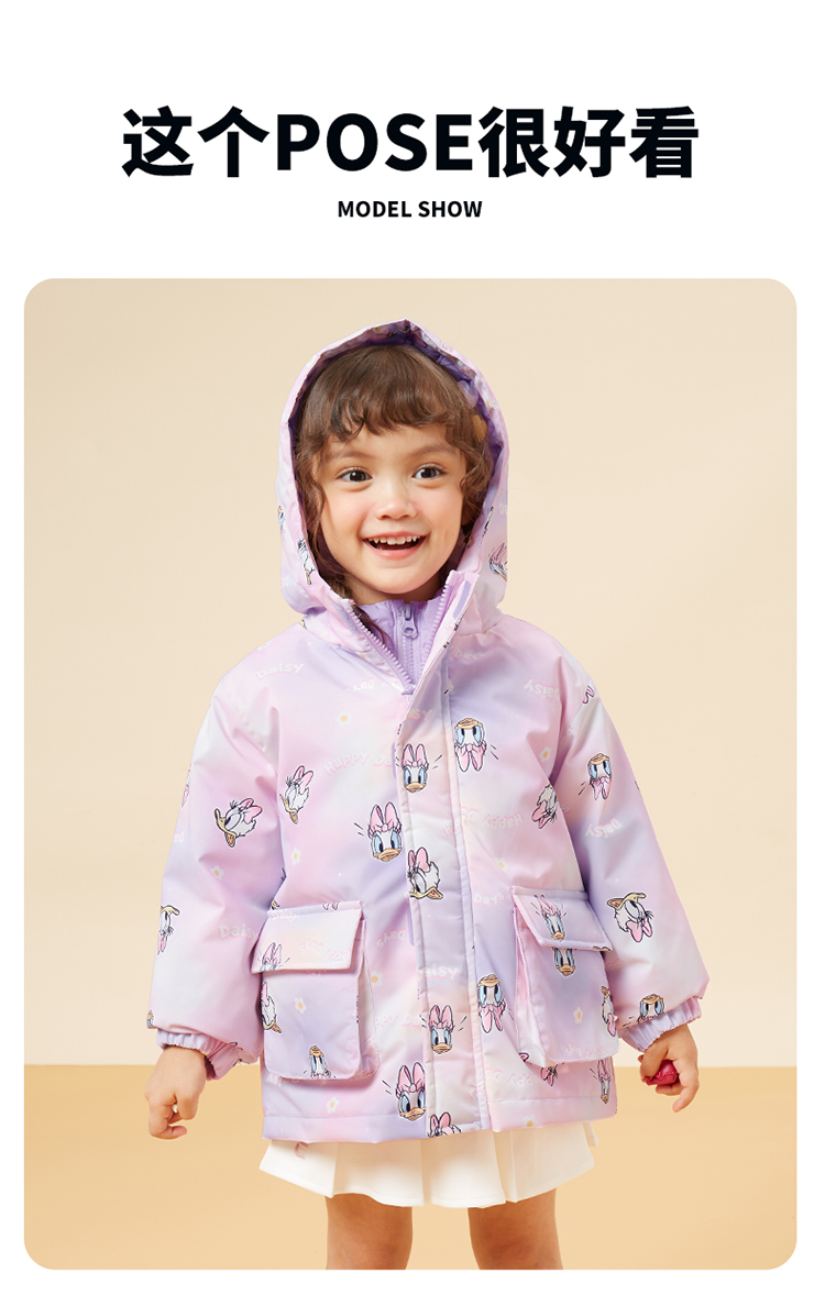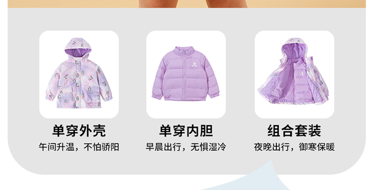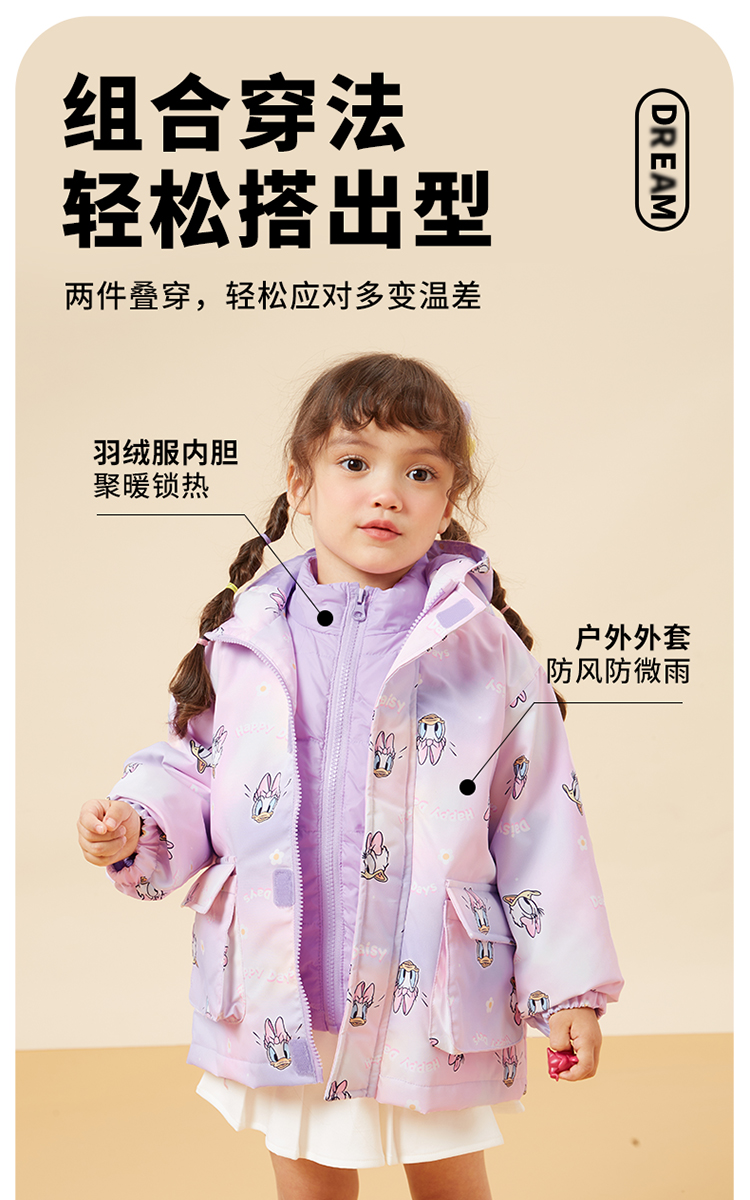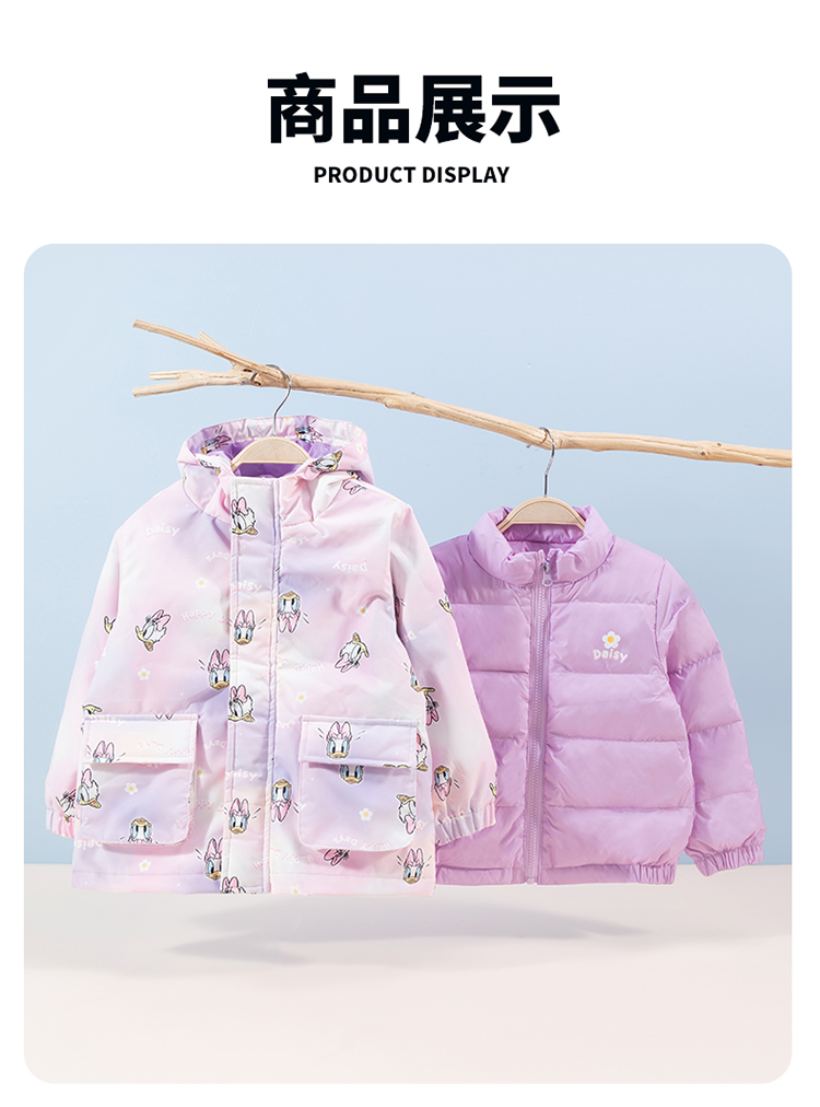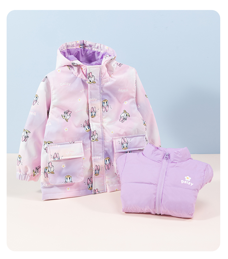 【一衣三穿】迪士尼秋冬女童羽绒内胆夹棉外套防风保暖冲锋衣两件套卡通234S1837