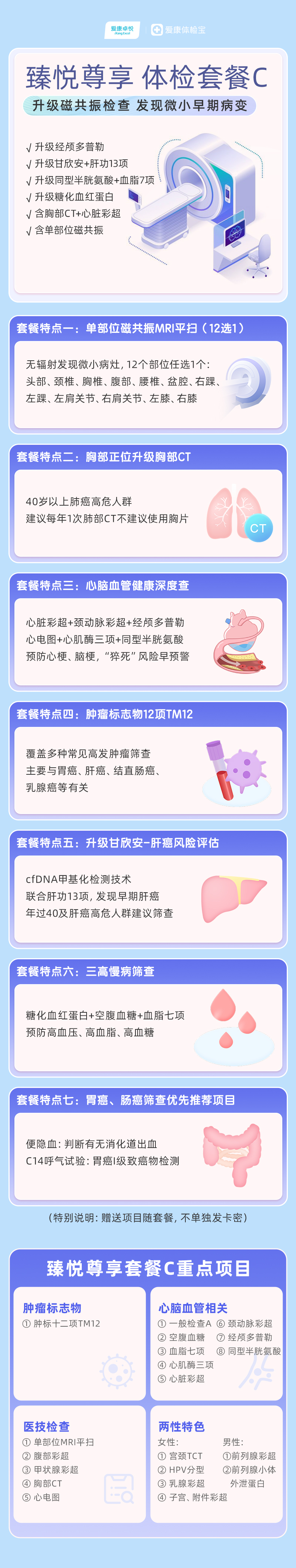 【升级胸部CT+C14呼气试验】爱康 悦享安心检套餐B