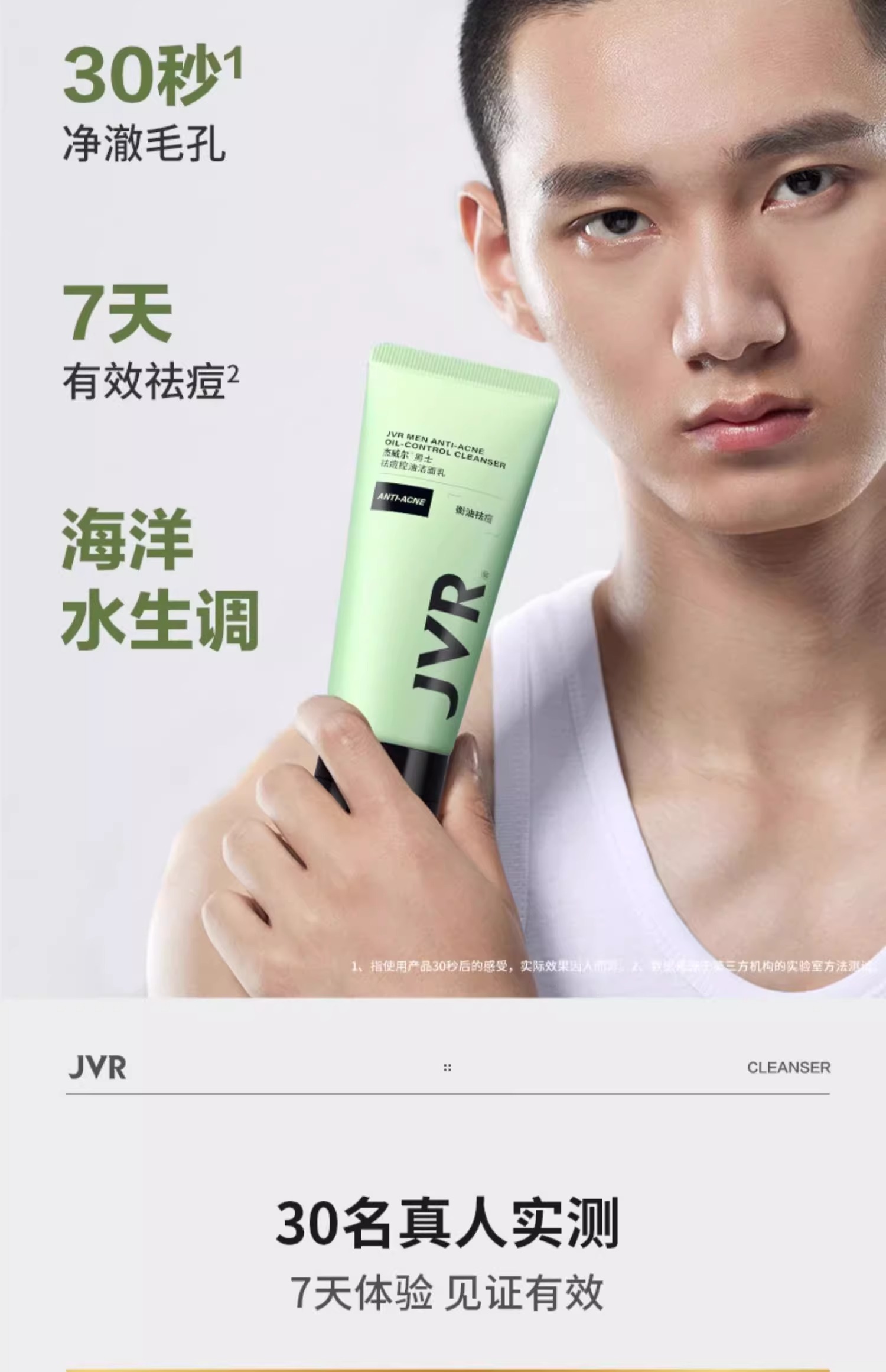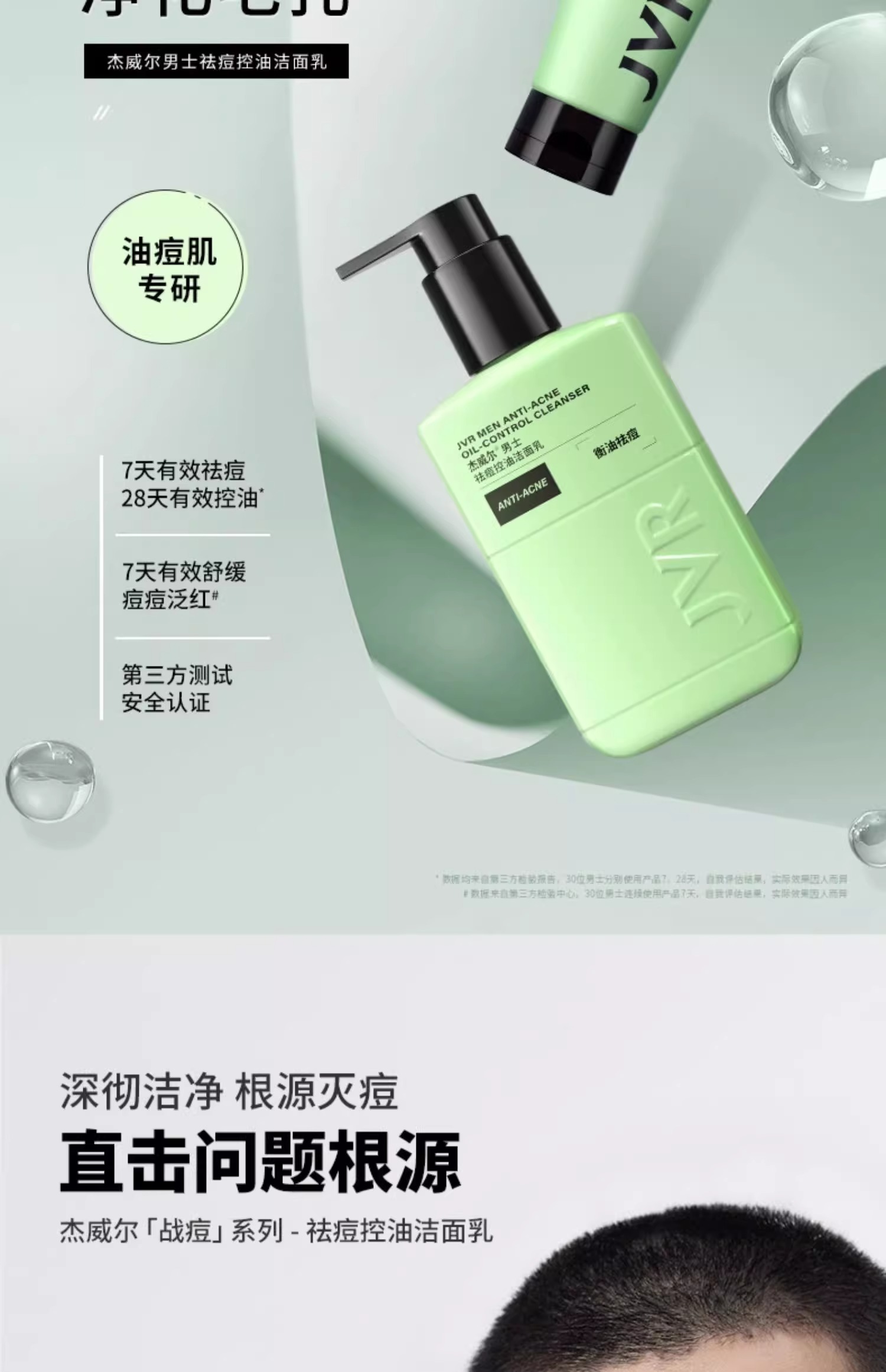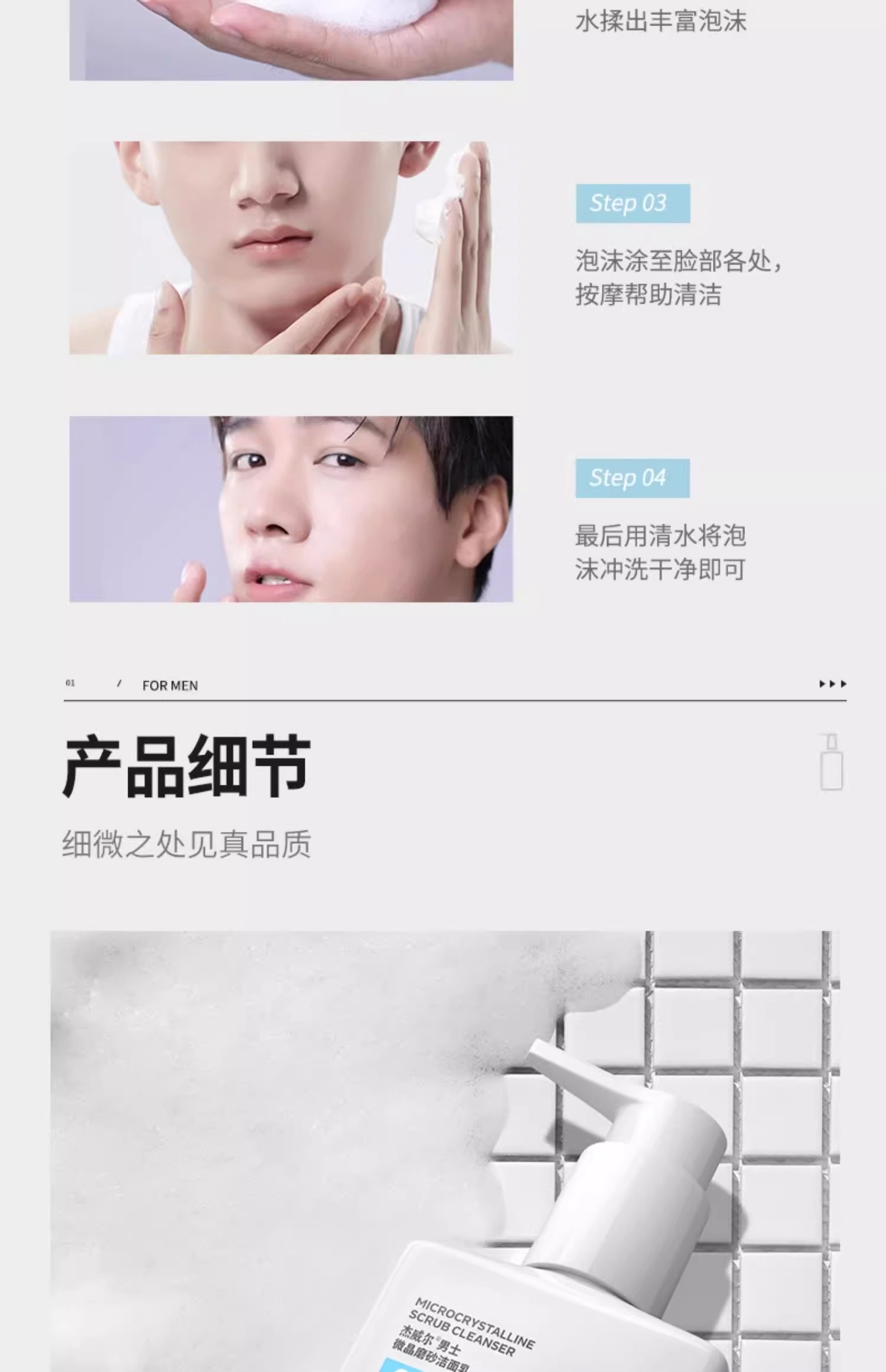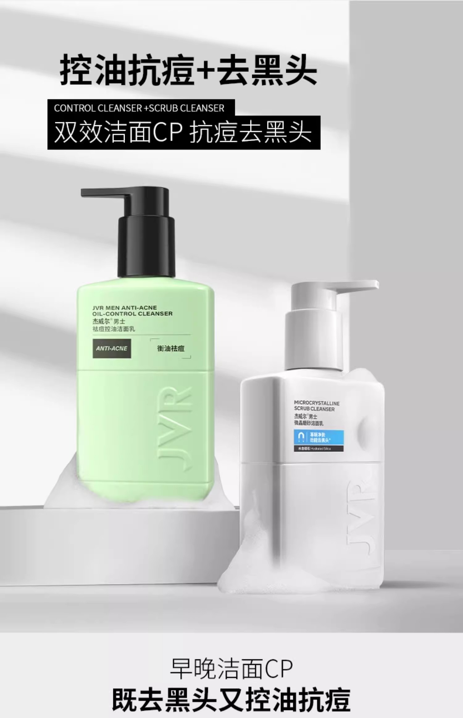 杰威尔男士专用洗面奶清爽控油去黑头粉刺磨砂泡沫洁面乳洁面膏