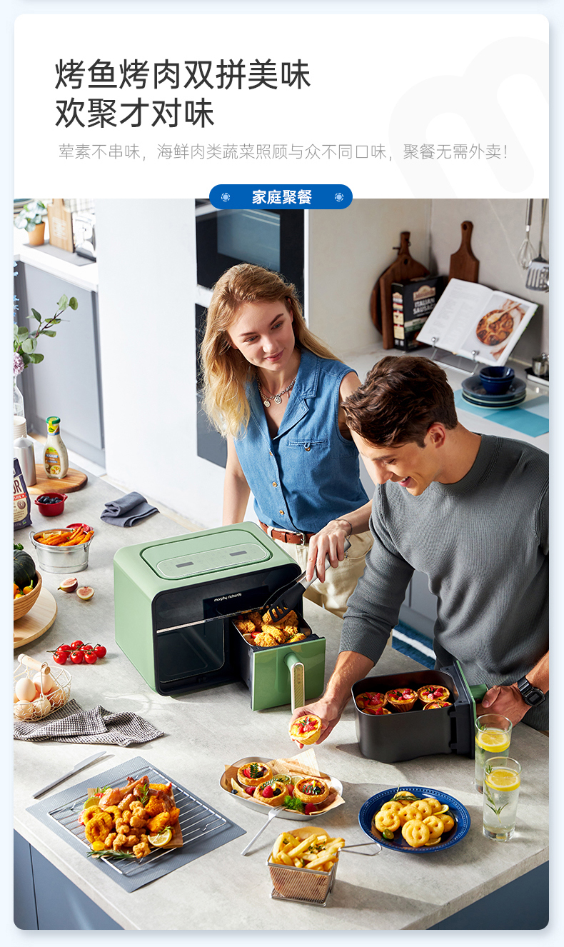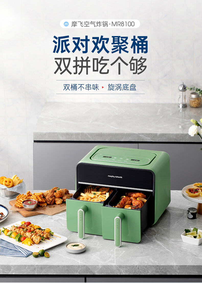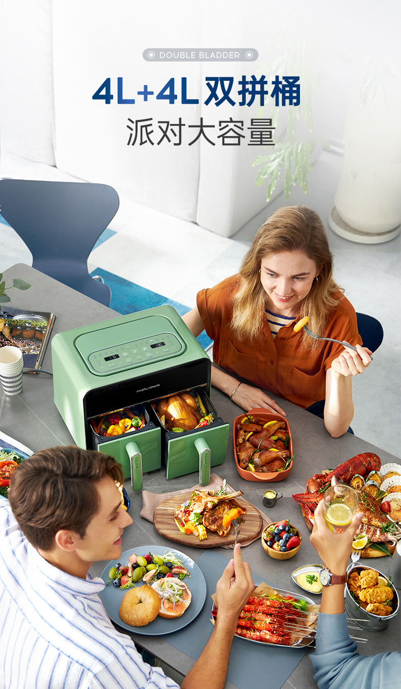 [屁侠推荐] 摩飞双仓空气炸锅 家用8L大容量 可视双炸篮 多功能空气炸烤箱