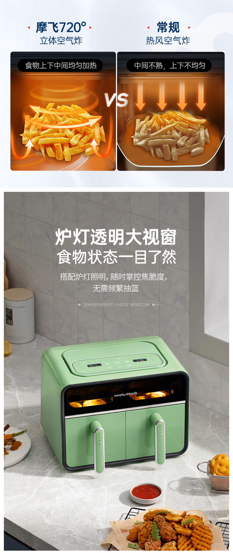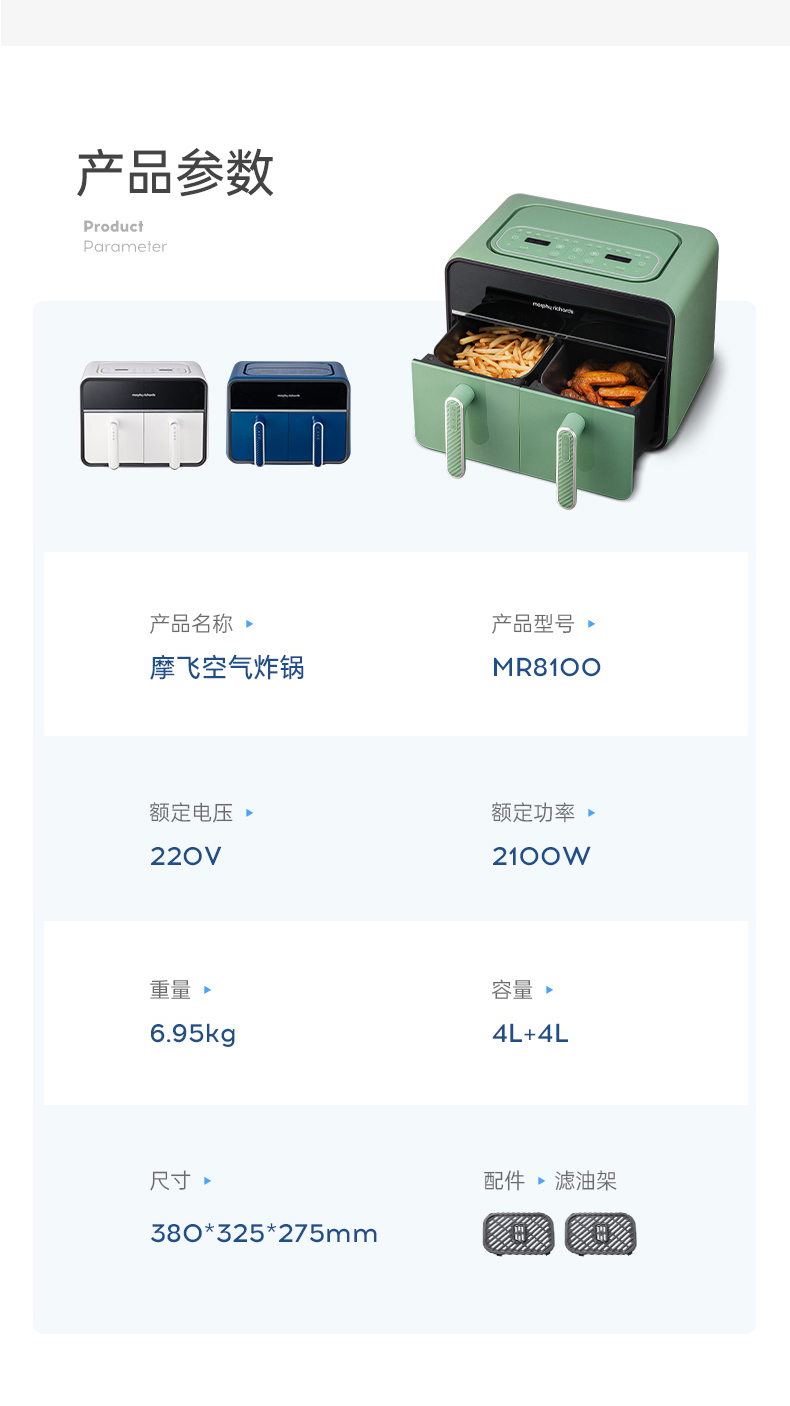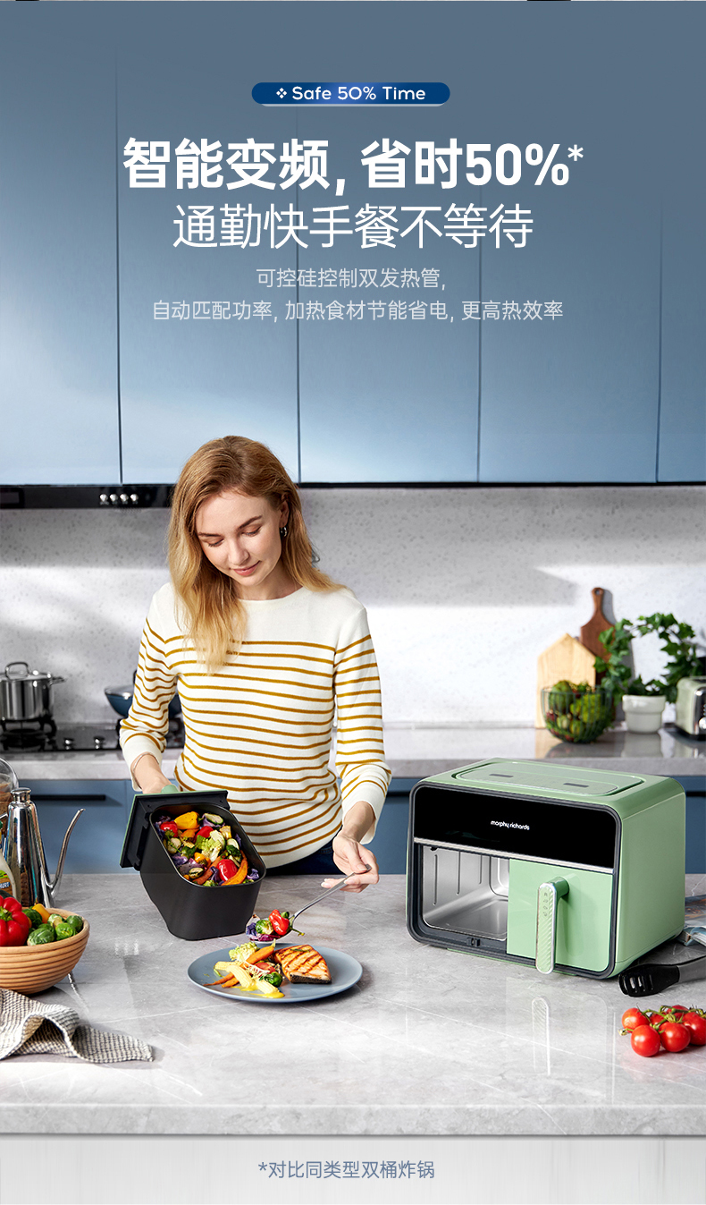 [屁侠推荐] 摩飞双仓空气炸锅 家用8L大容量 可视双炸篮 多功能空气炸烤箱
