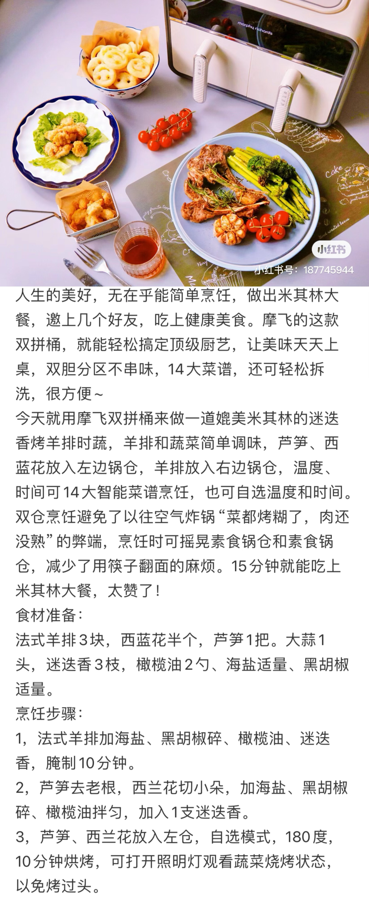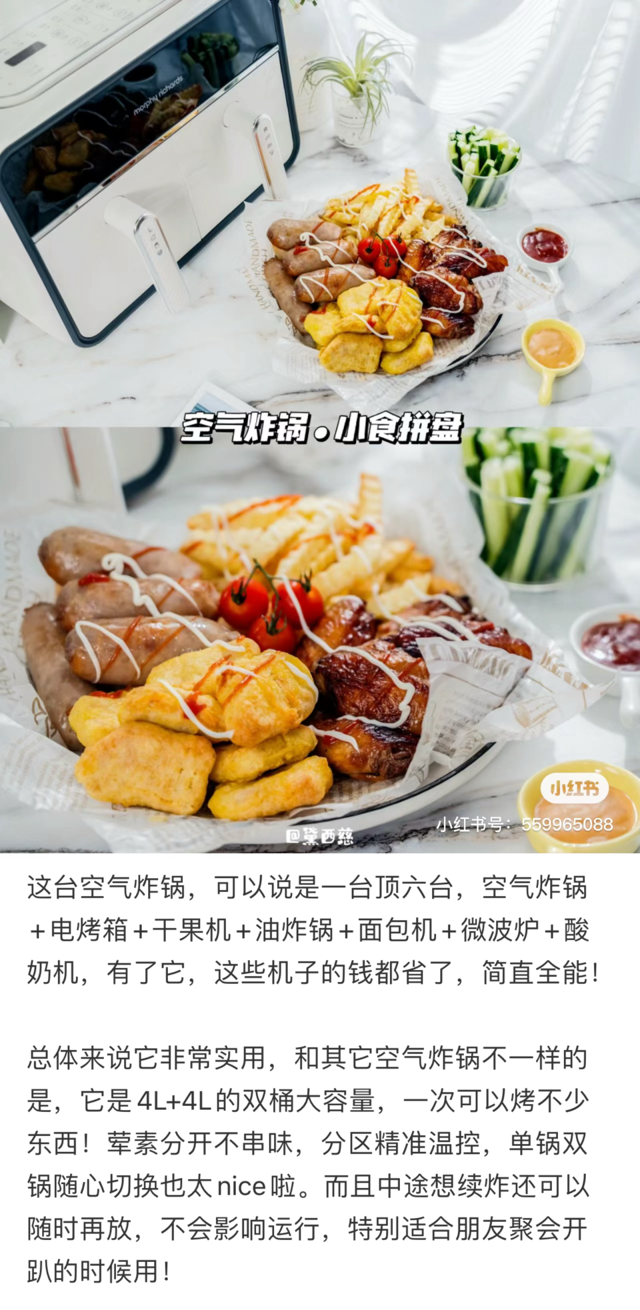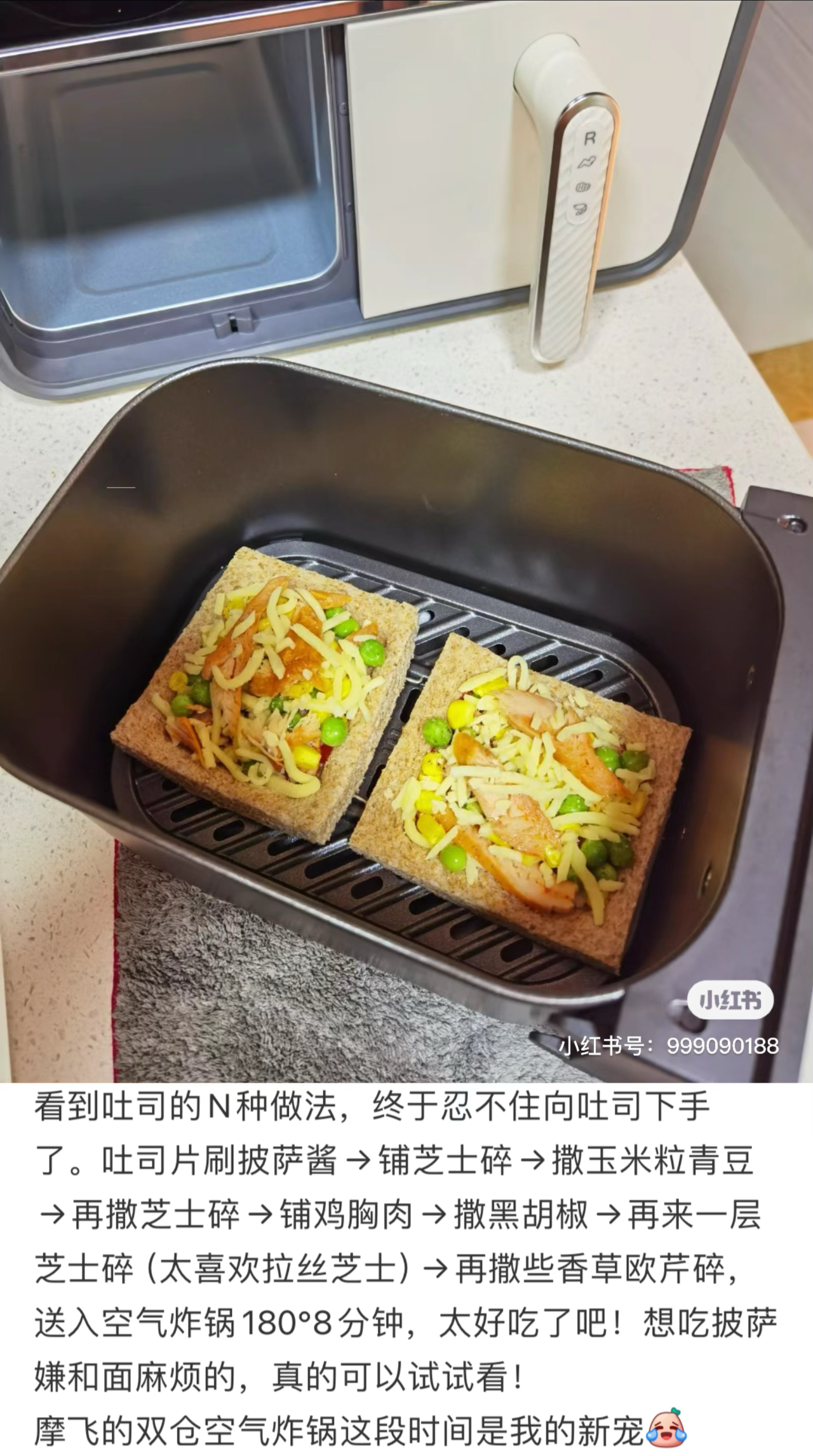 我的空气炸锅也换新啦!这次是留了摩飞的双胆,每次又要烤面包又要烤肉肉时可以省十分钟左右同时进行!而且作为一台“全能型”厨房神器,他还是电烤箱、干果机、油炸锅、面包机、微波炉以及酸奶机,真是万千功能集一身!当然,如果用不了同时开动,摩飞也有单桶的,可选!