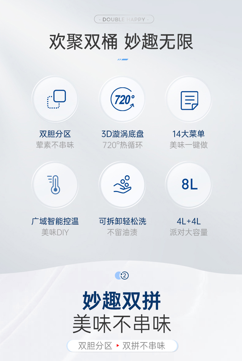 摩飞的双桶空气炸锅,4L+4L的双桶设计,不仅容量大,能够满足大家庭或聚会时的烹饪需求,更重要的是实现了荤素食材的分区烹饪,避免食物间串味。同时,还有高效加热和双重3D旋涡底盘的立体加热技术,实现了720度全方位包裹食物,确保了受热均匀且快速,外酥里嫩的效果令人垂涎。相较于传统热风空气炸,这项技术解决了食物中心不熟或上下受热不均的问题,让烹饪变得更加简单高效!