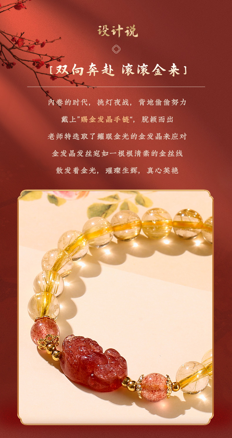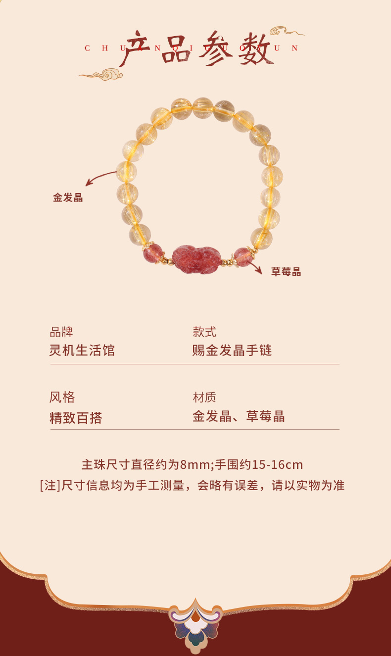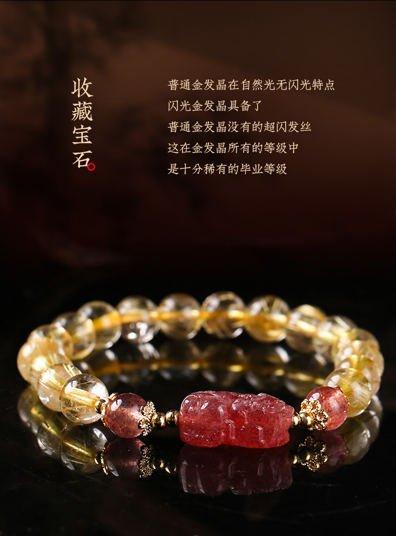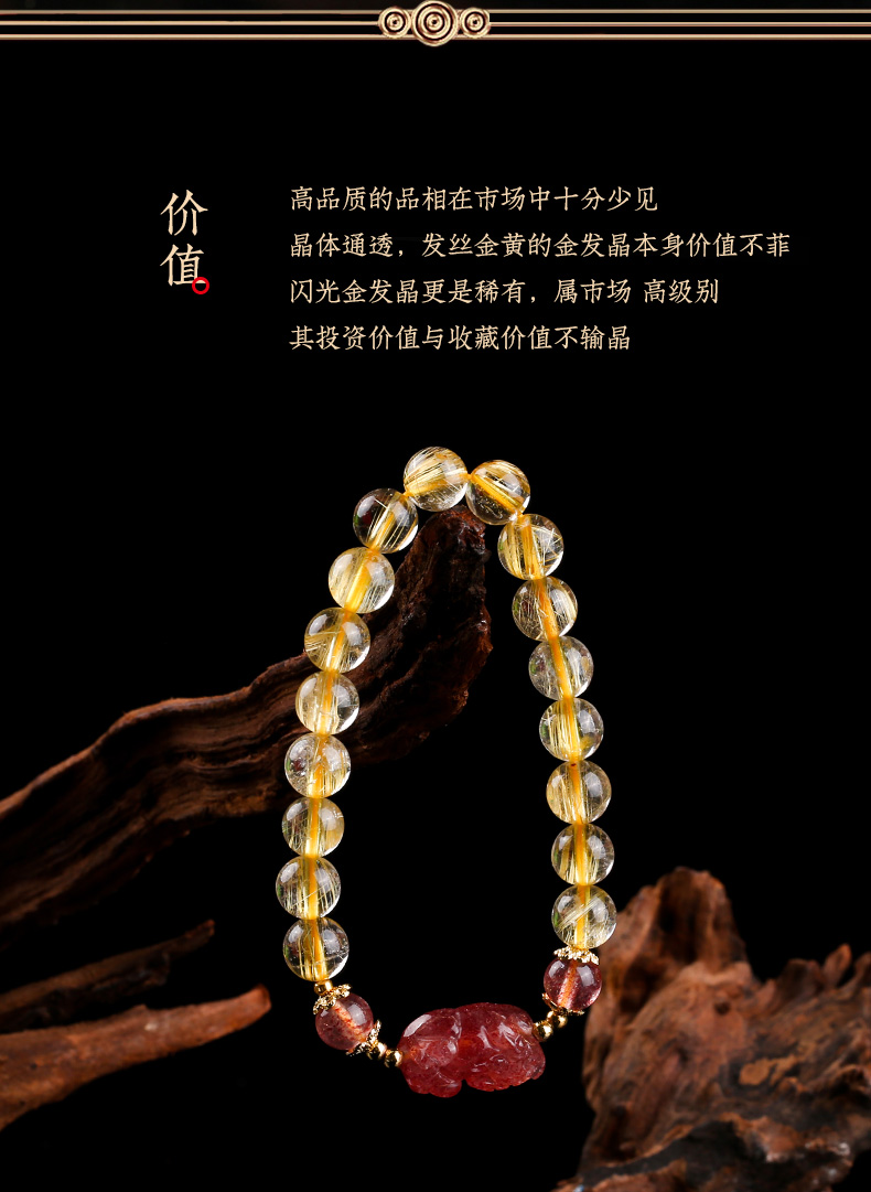 灵机吉品 金发晶手链 女草莓晶貔貅手串