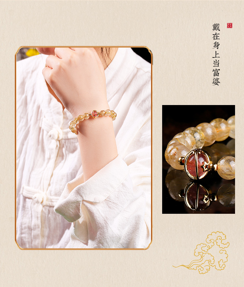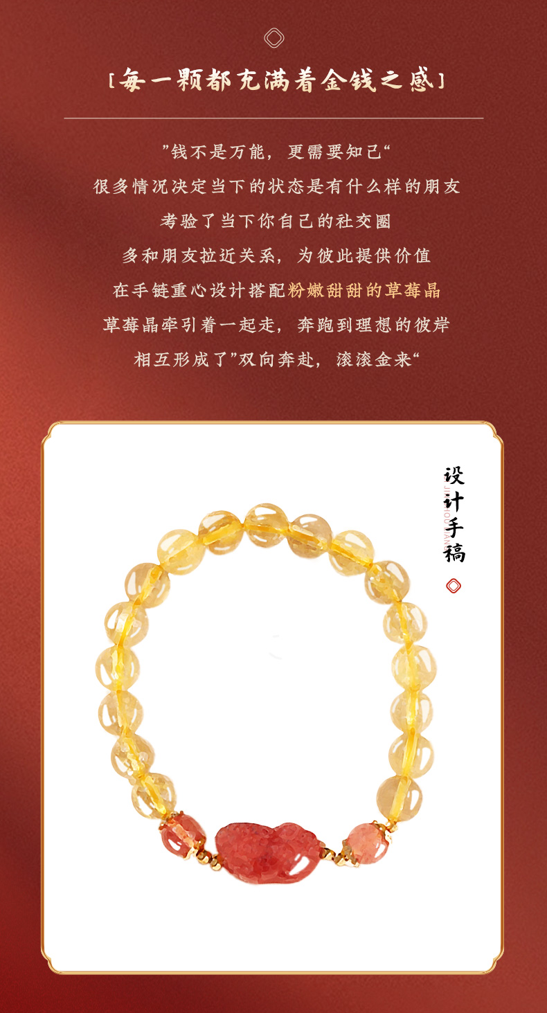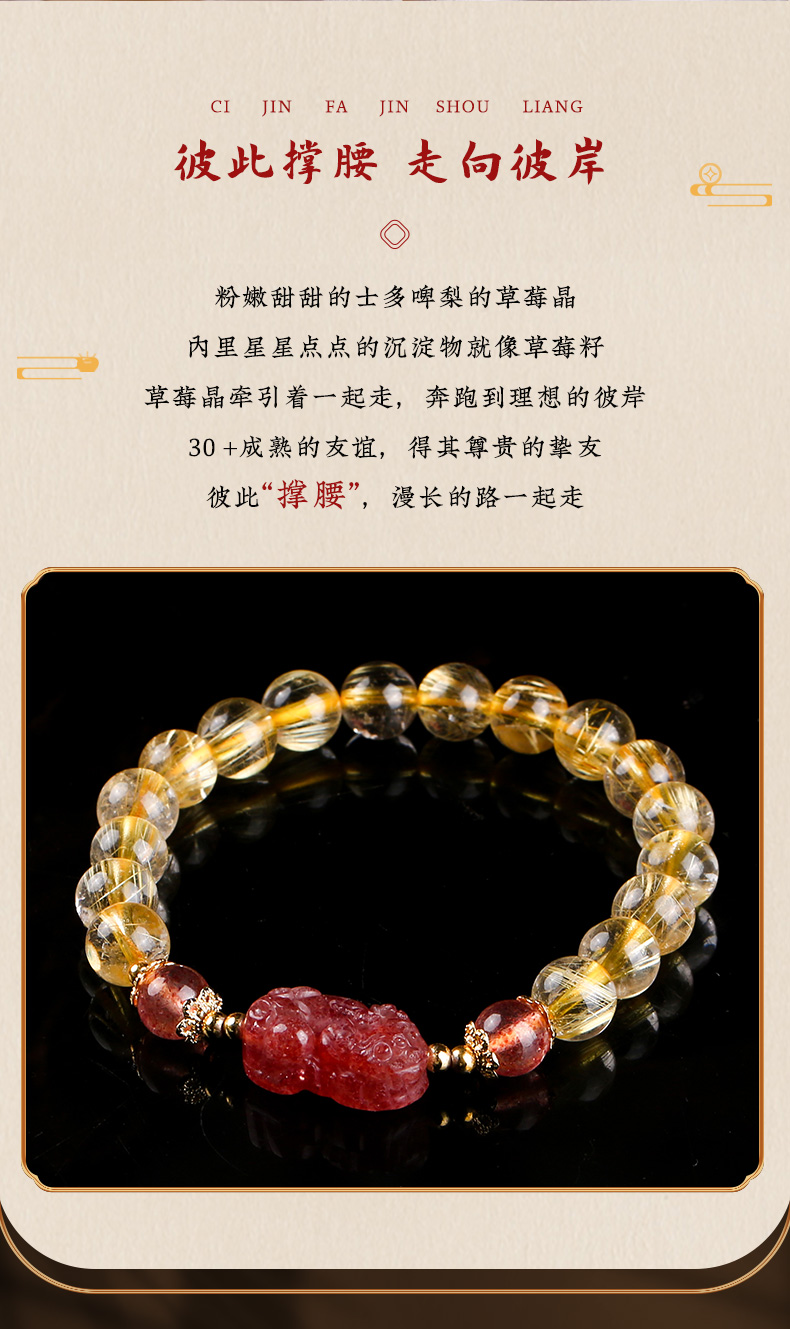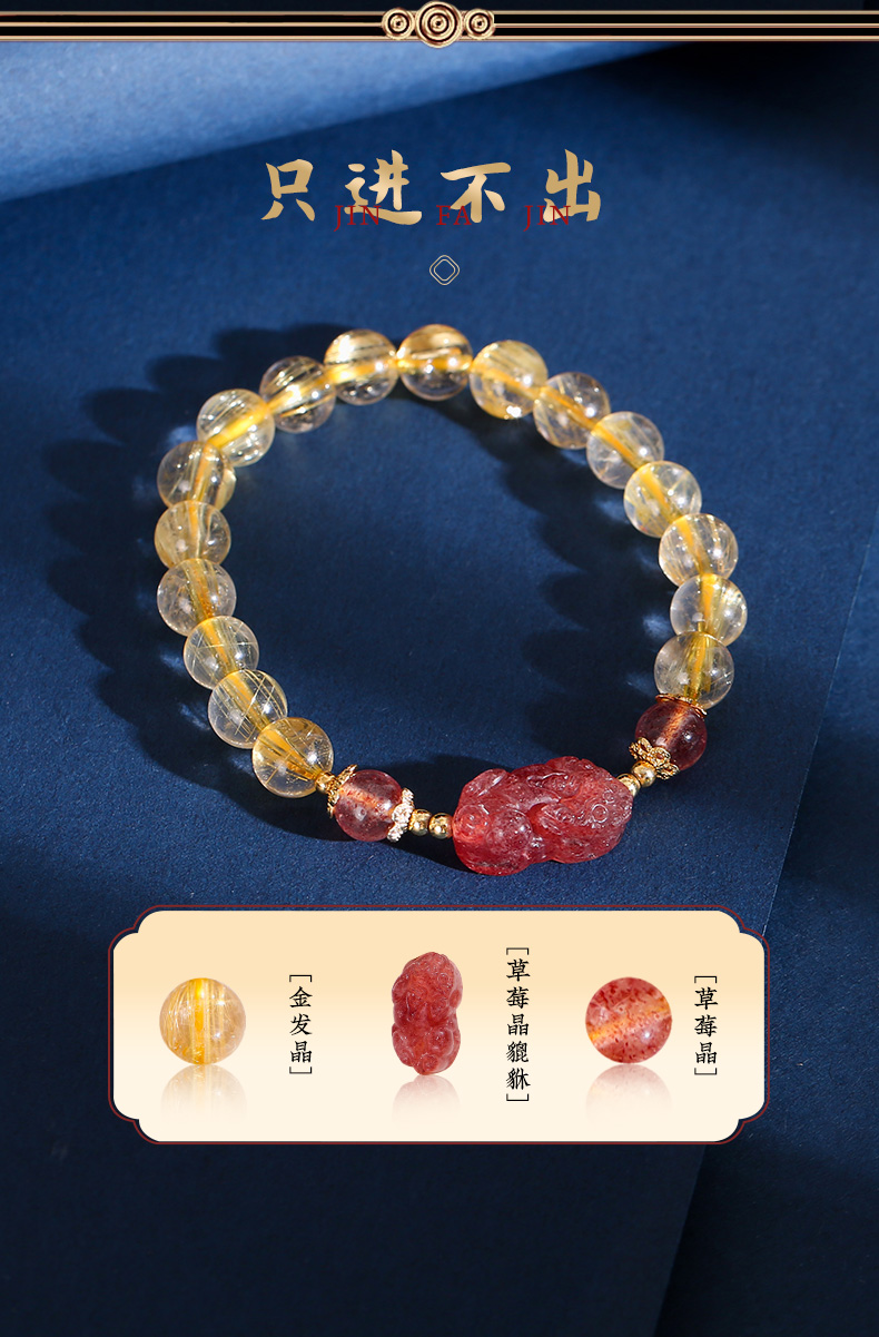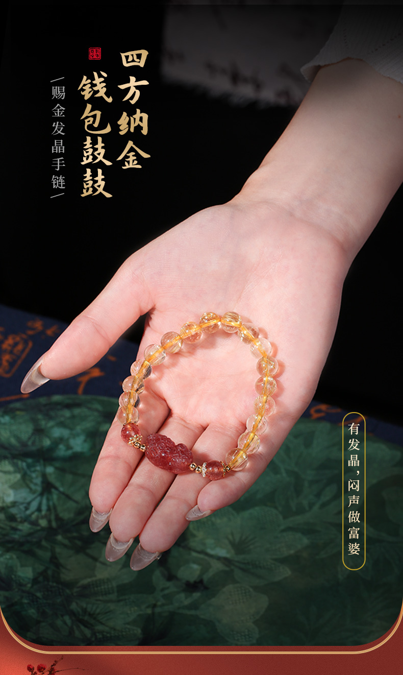 灵机吉品 金发晶手链 女草莓晶貔貅手串