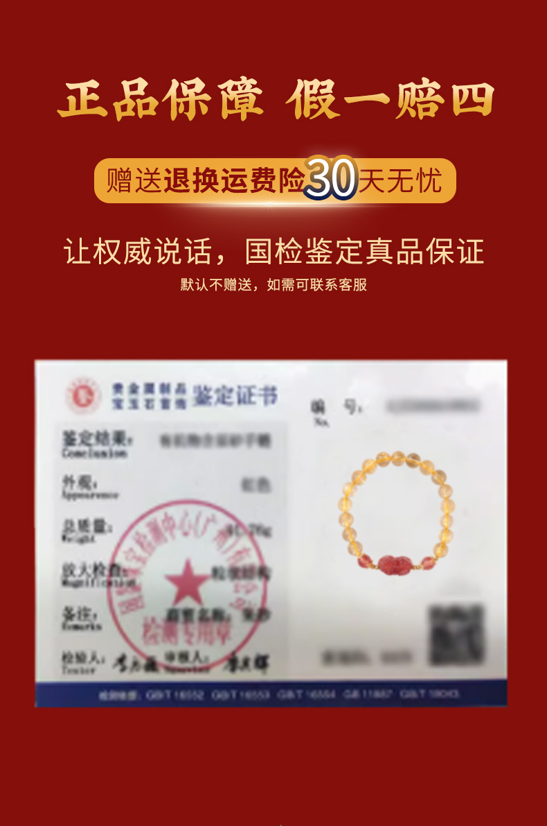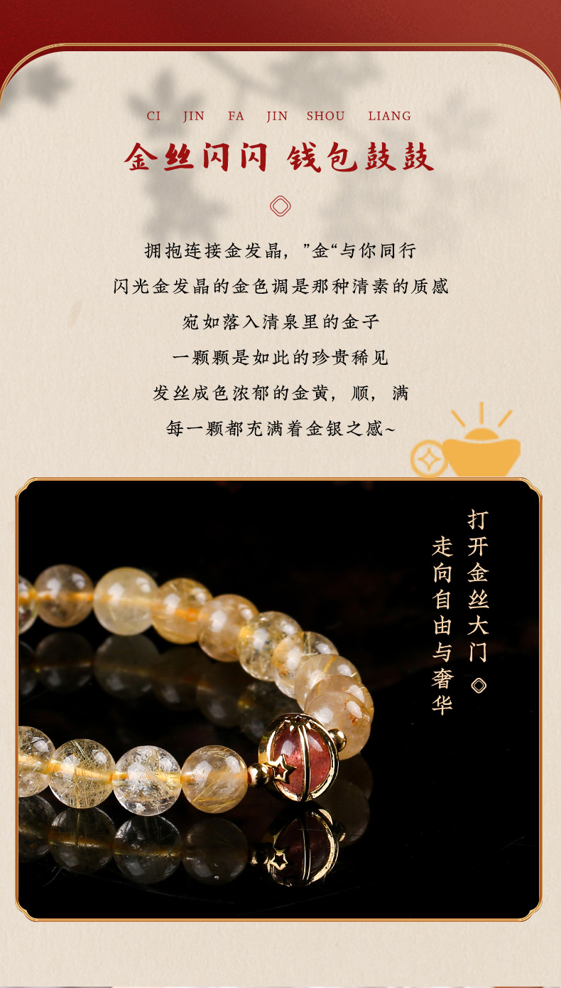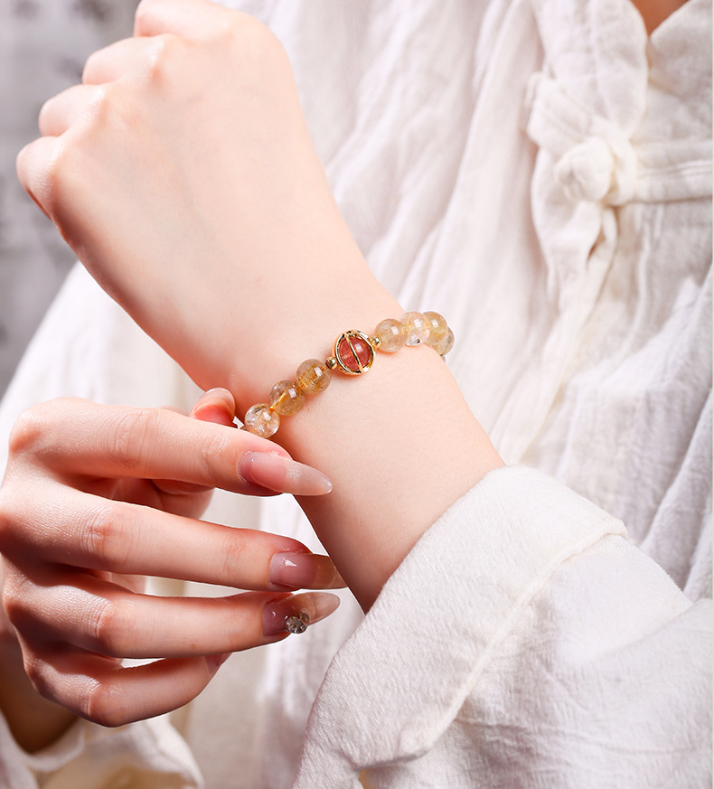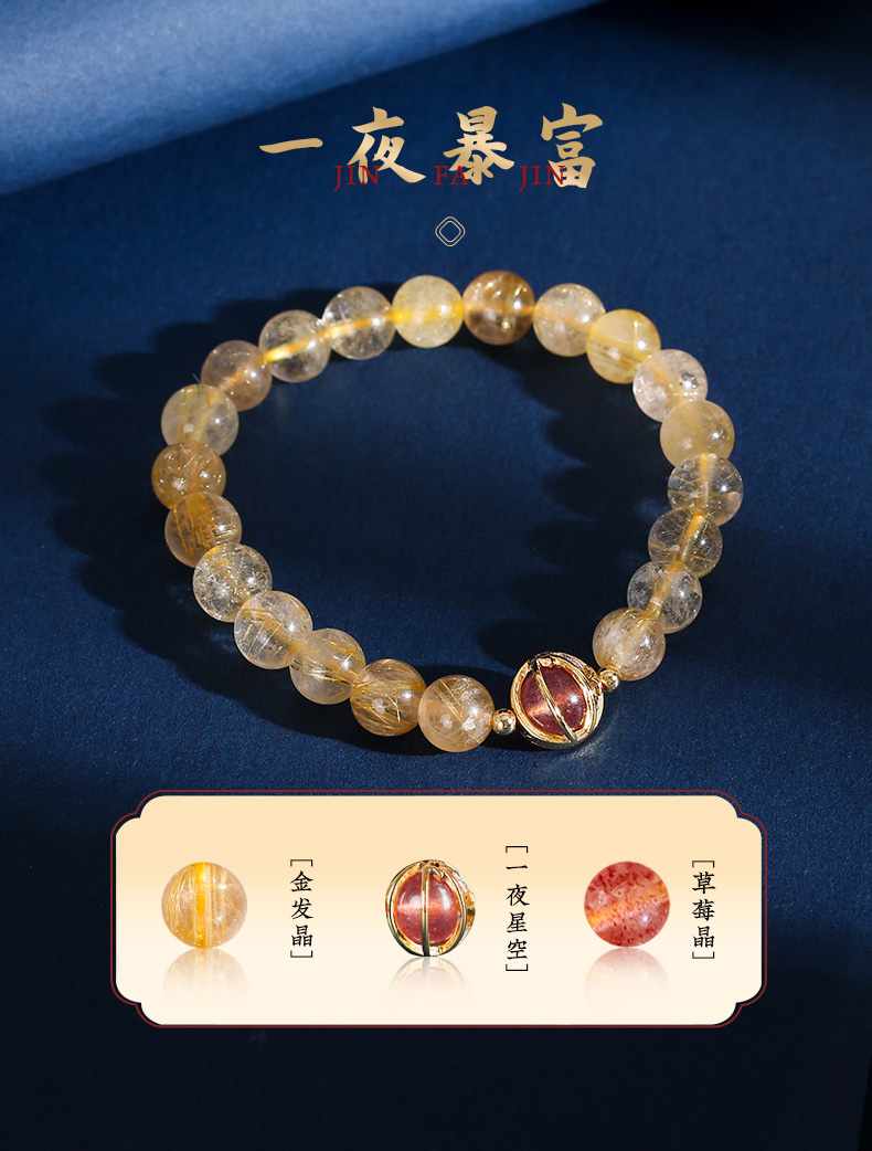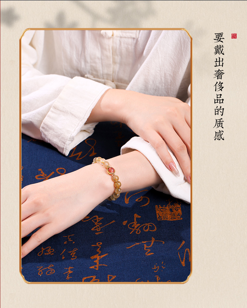 灵机吉品 金发晶手链 女草莓晶貔貅手串
