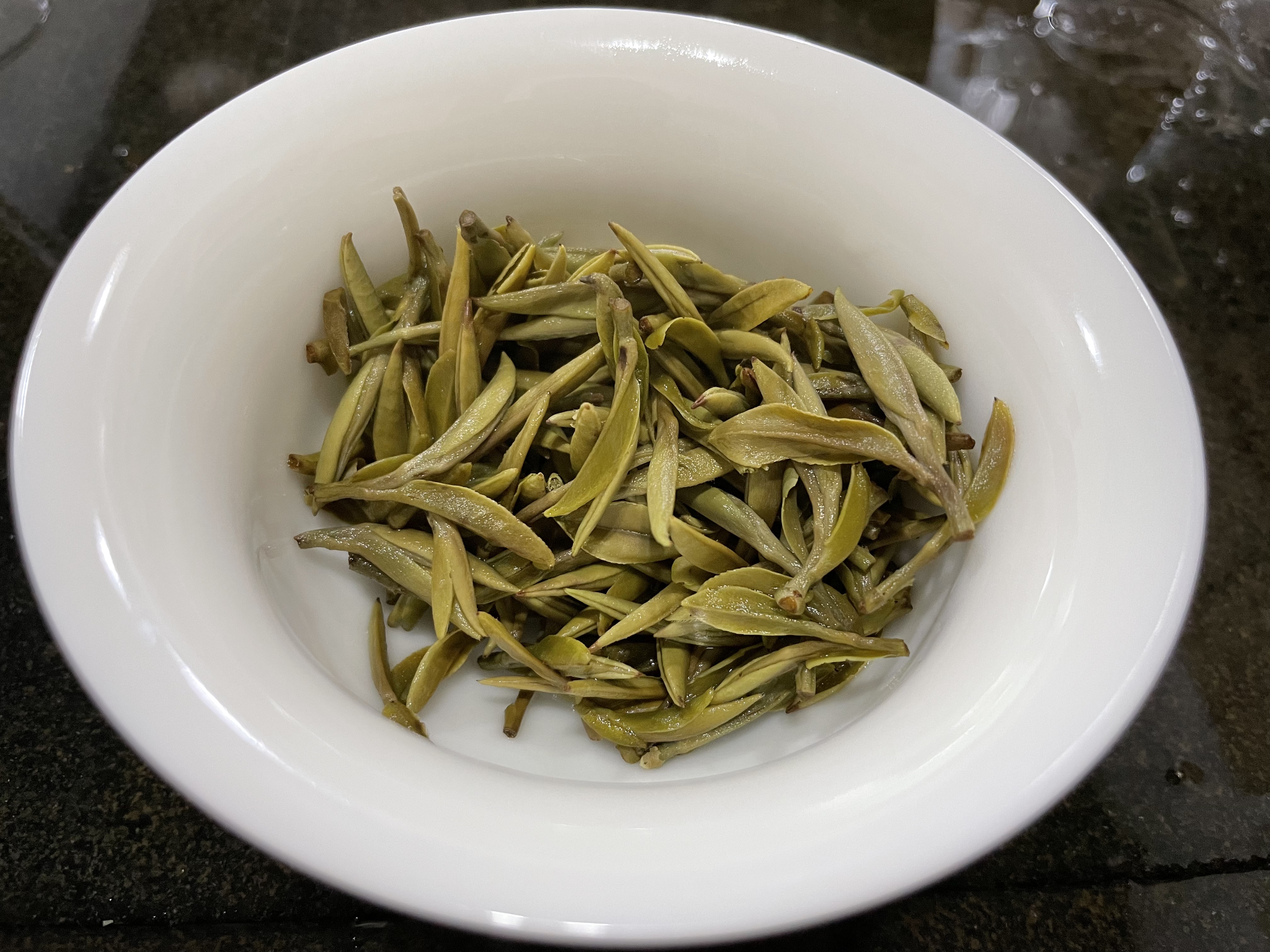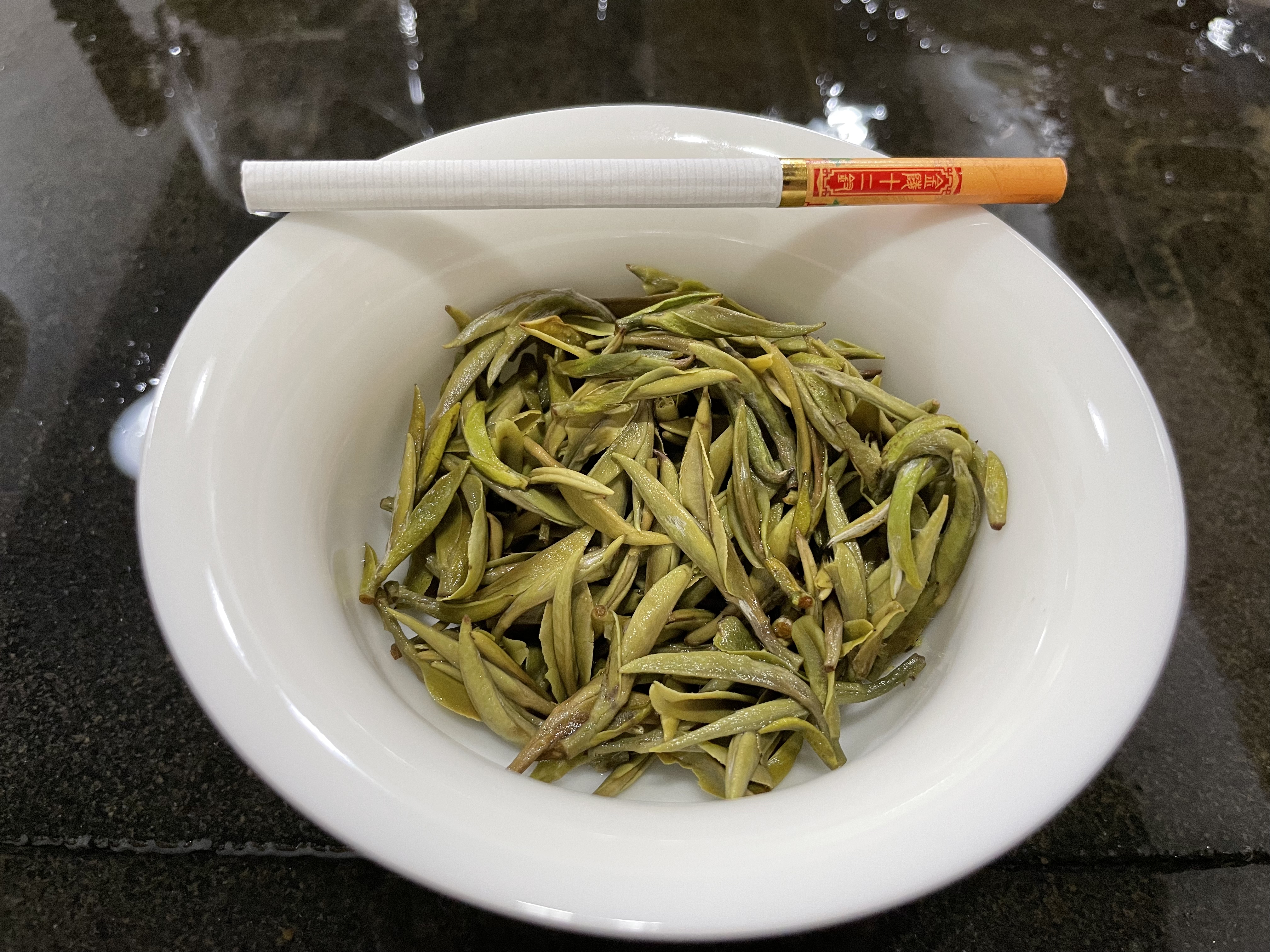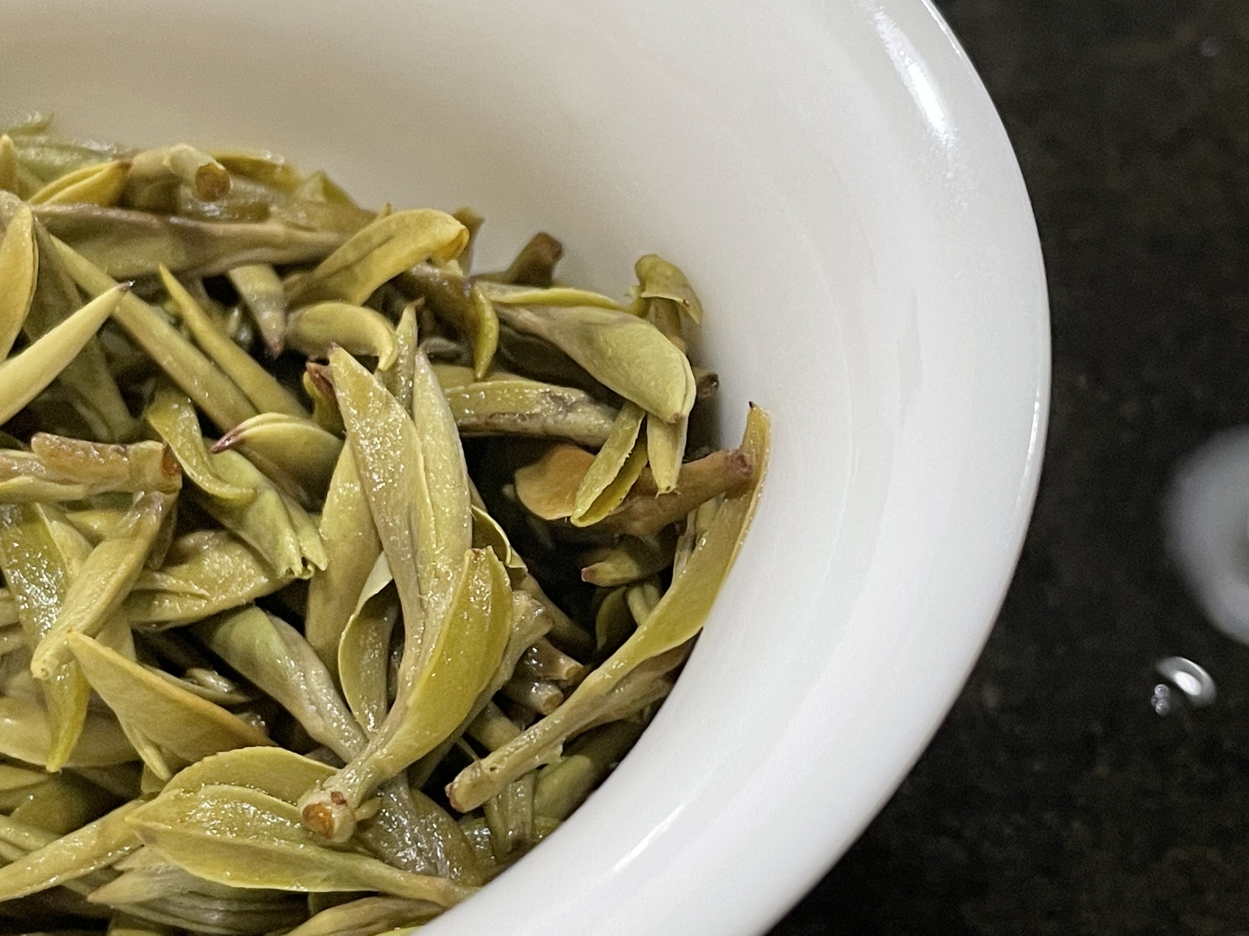 因为是首日芽,属于头采茶,故而于叶多,工艺很到位,所以鱼叶也是鹅黄色。