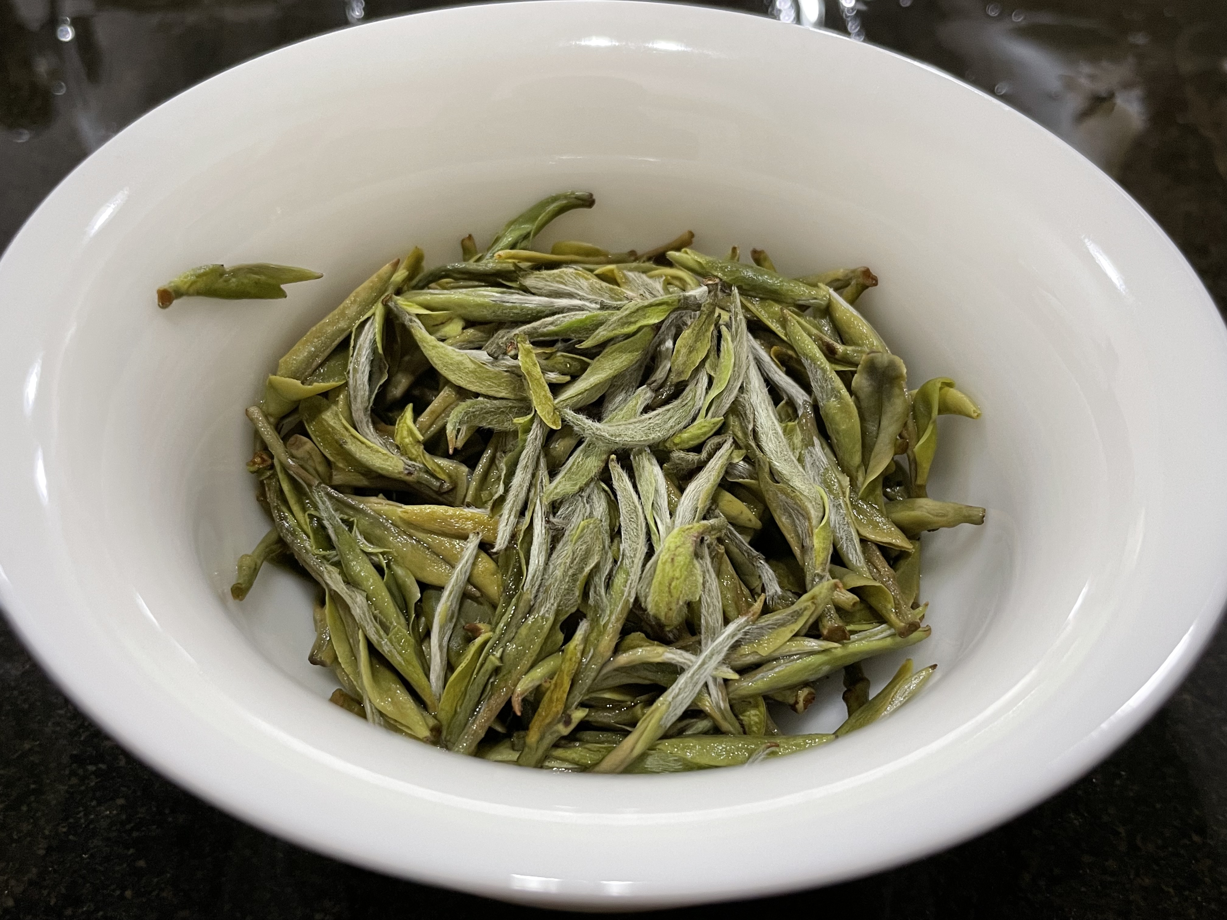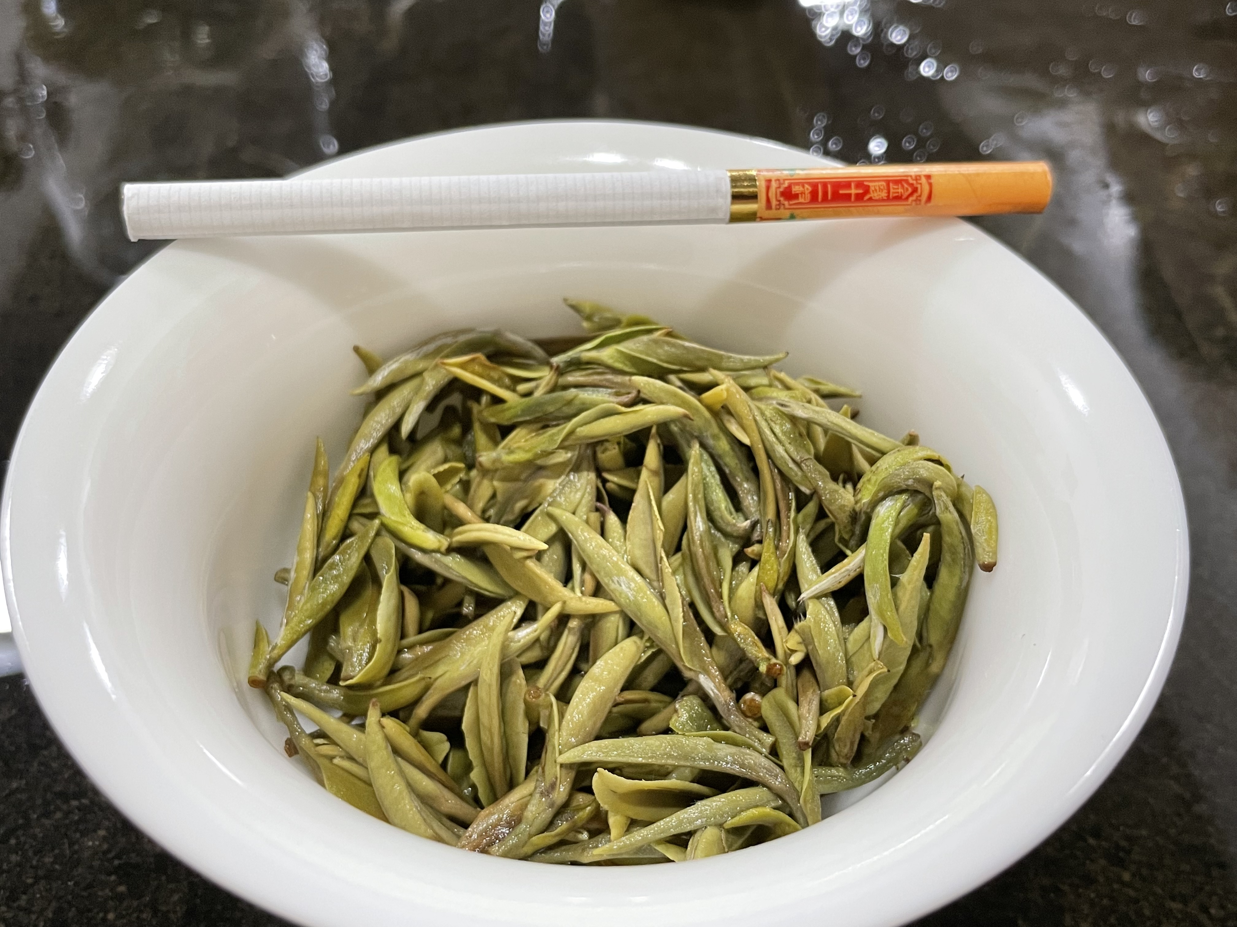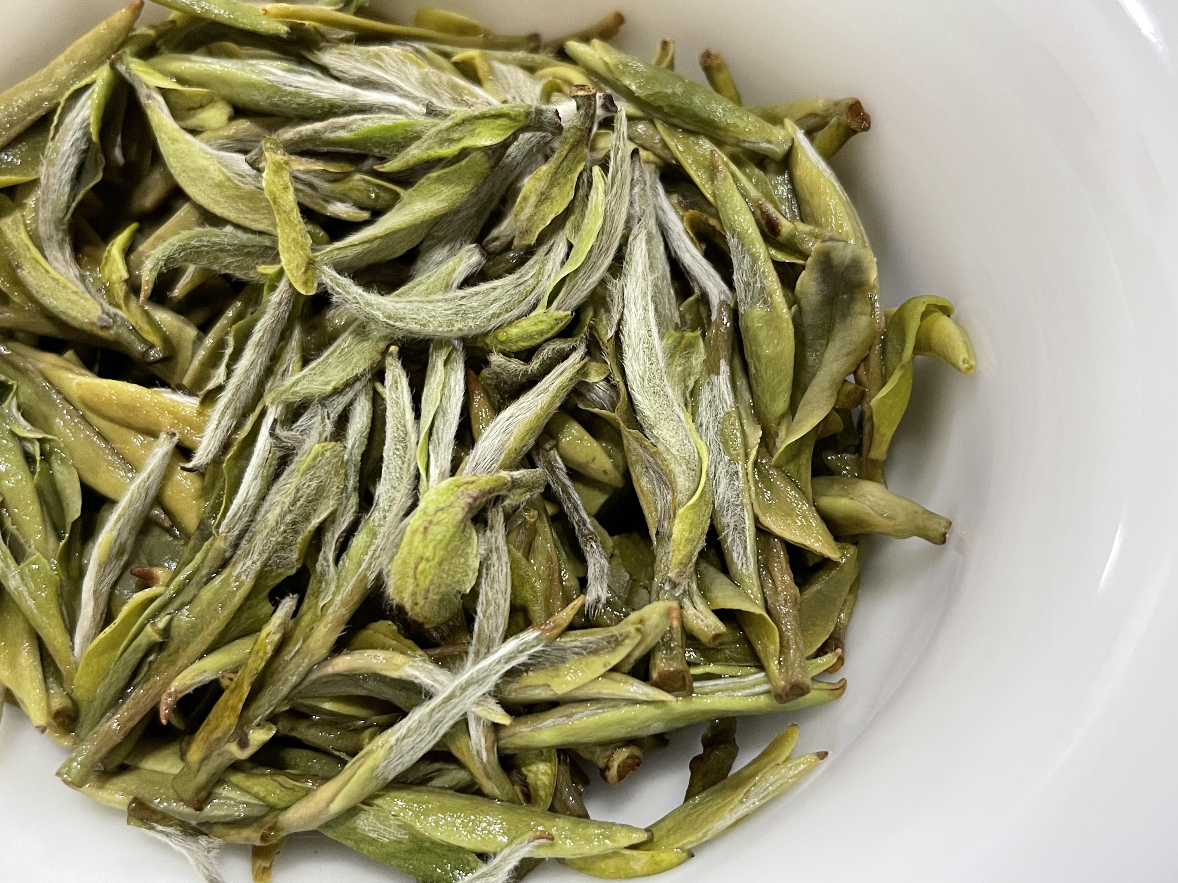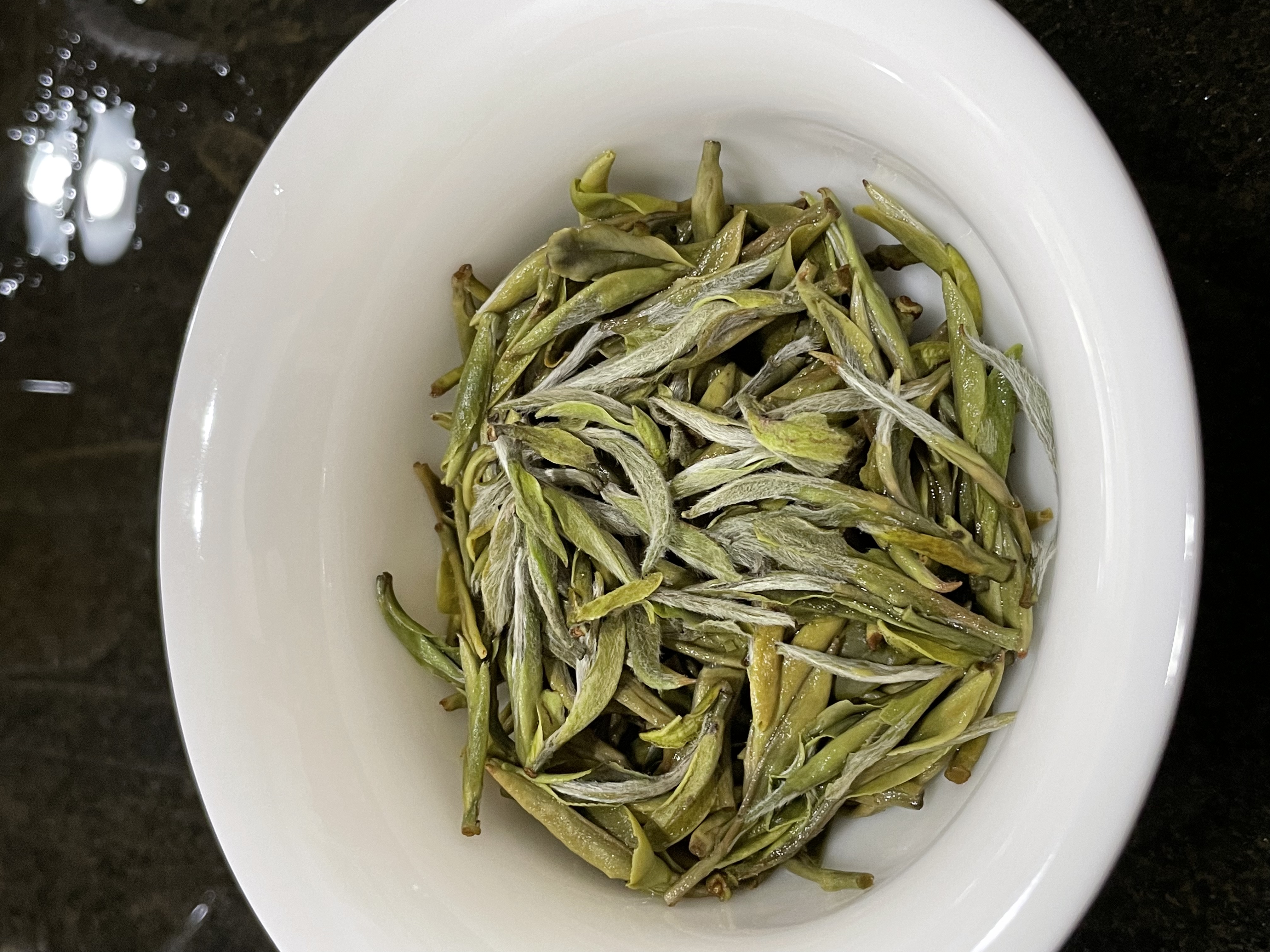 因为是首日芽,属于头采茶,故而于叶多,工艺很到位,所以鱼叶也是鹅黄色。