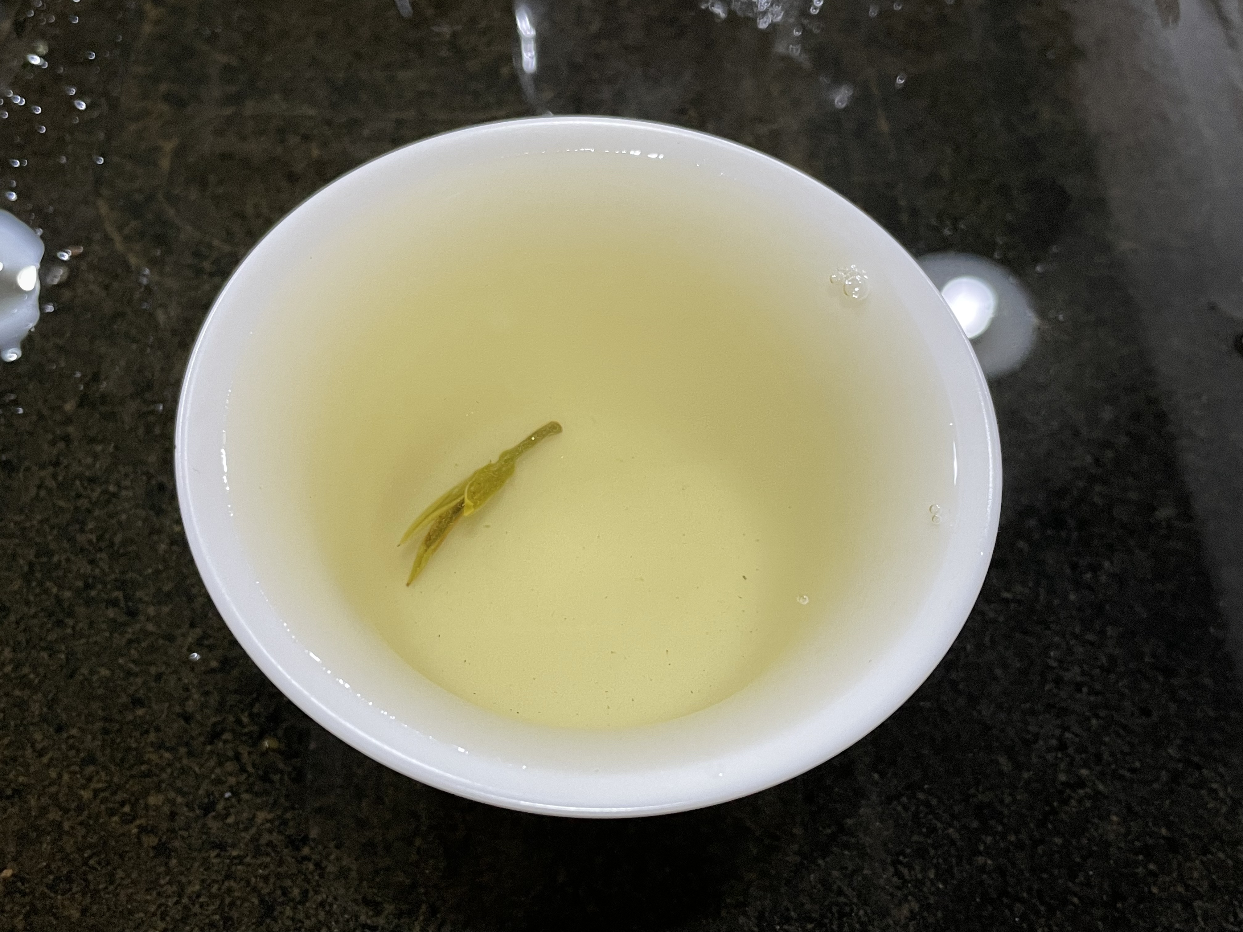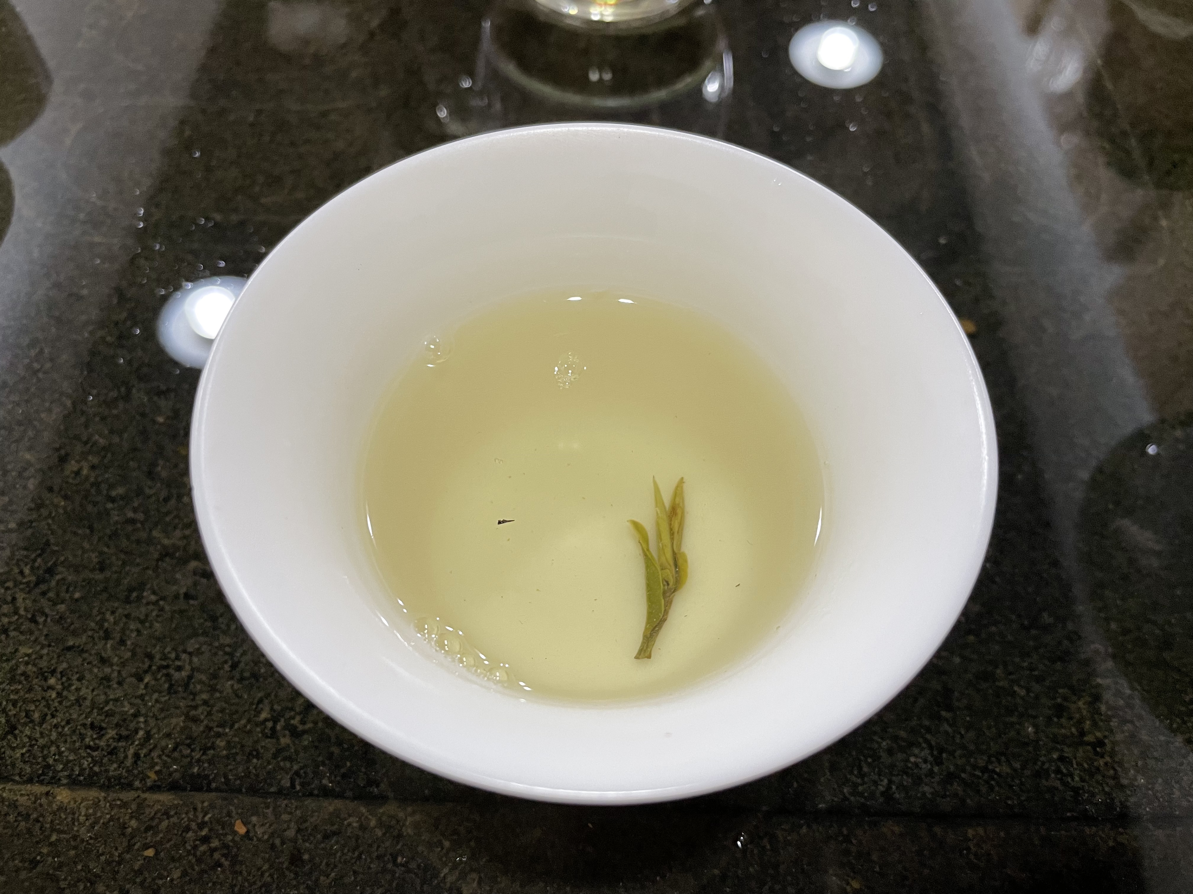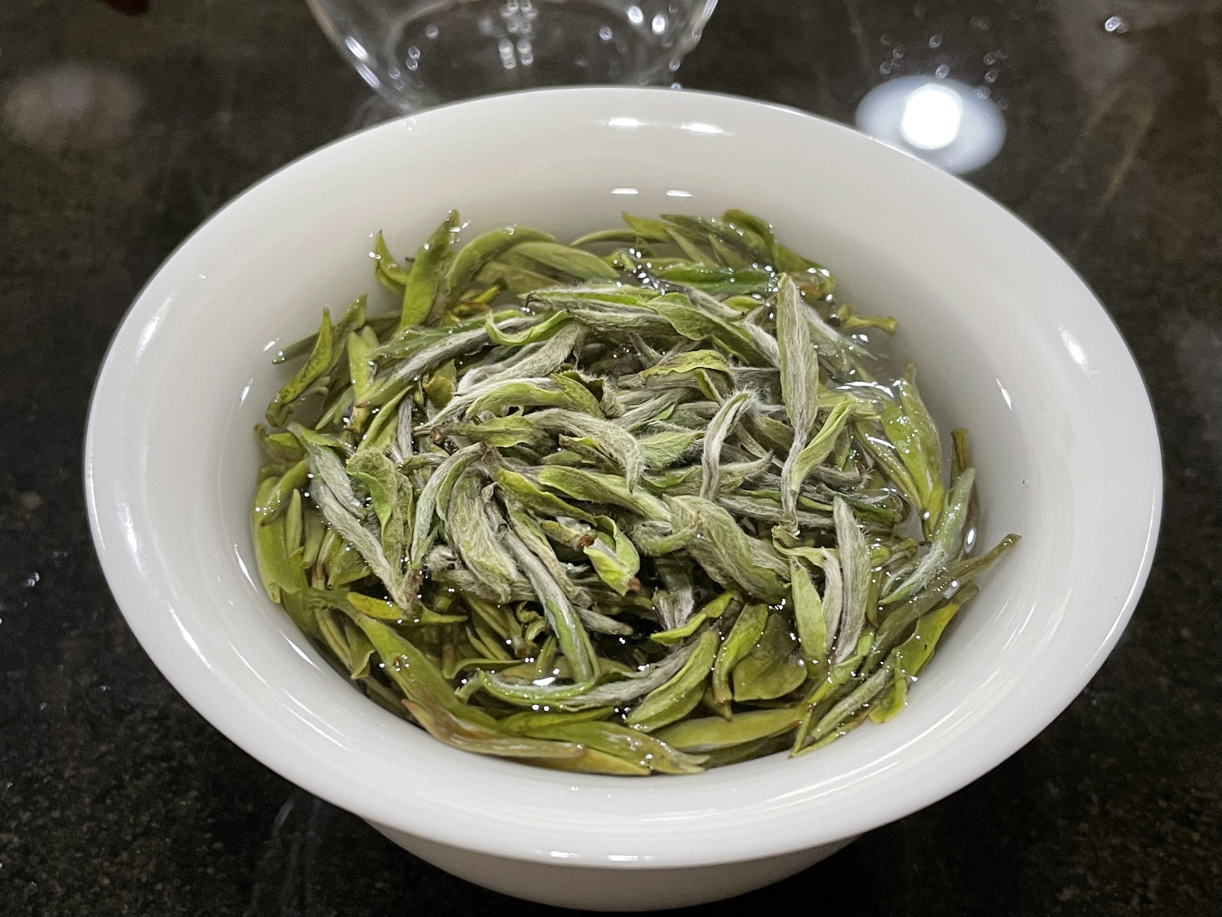 第一道:香气清奇、毫香明显,鲜灵度特高,清香清扬,不带青臭,这是原料好与工艺到位的表现。