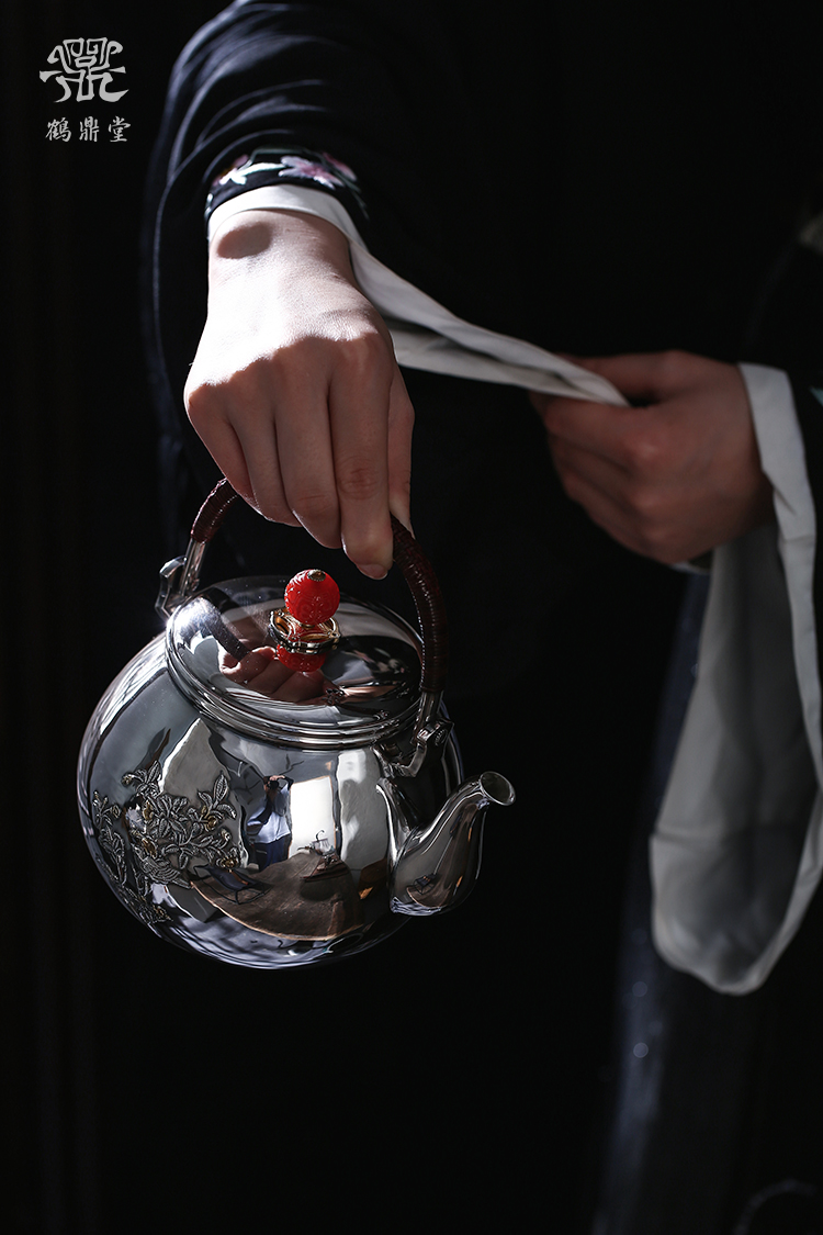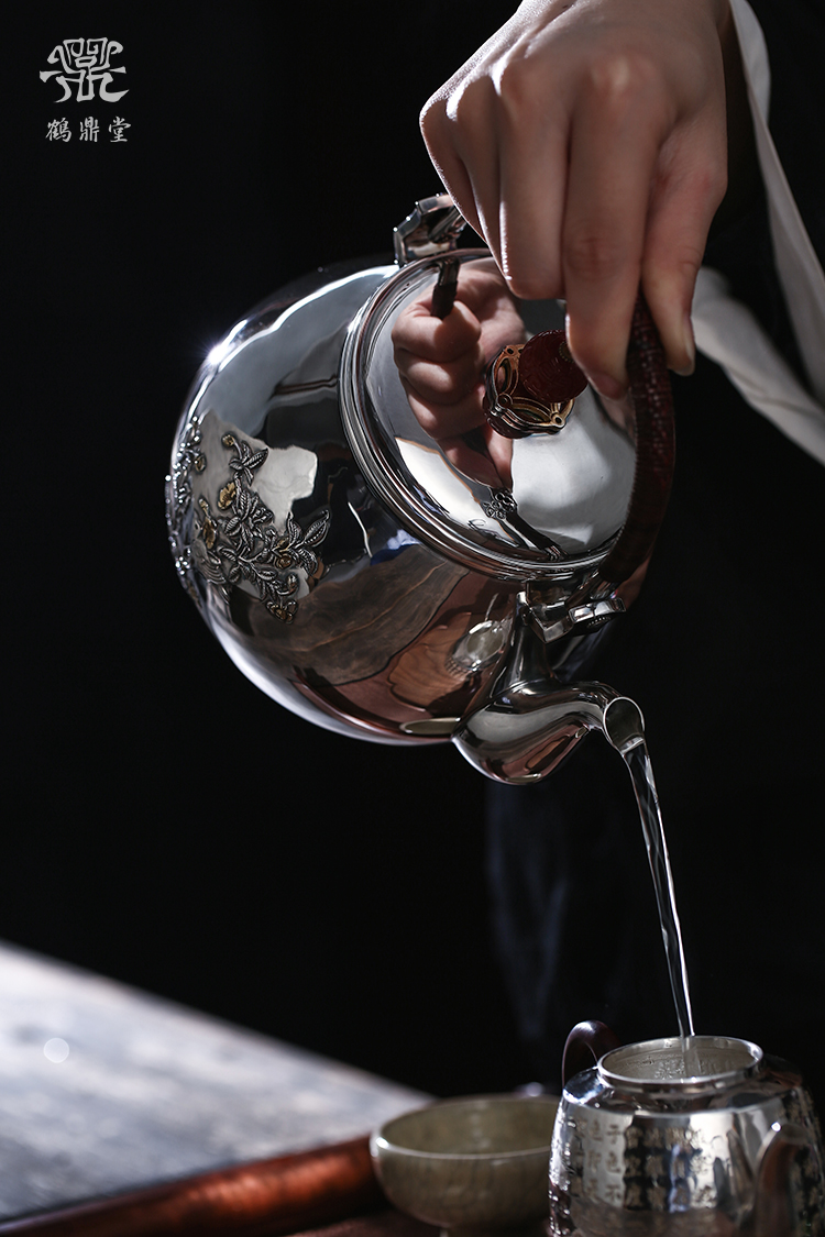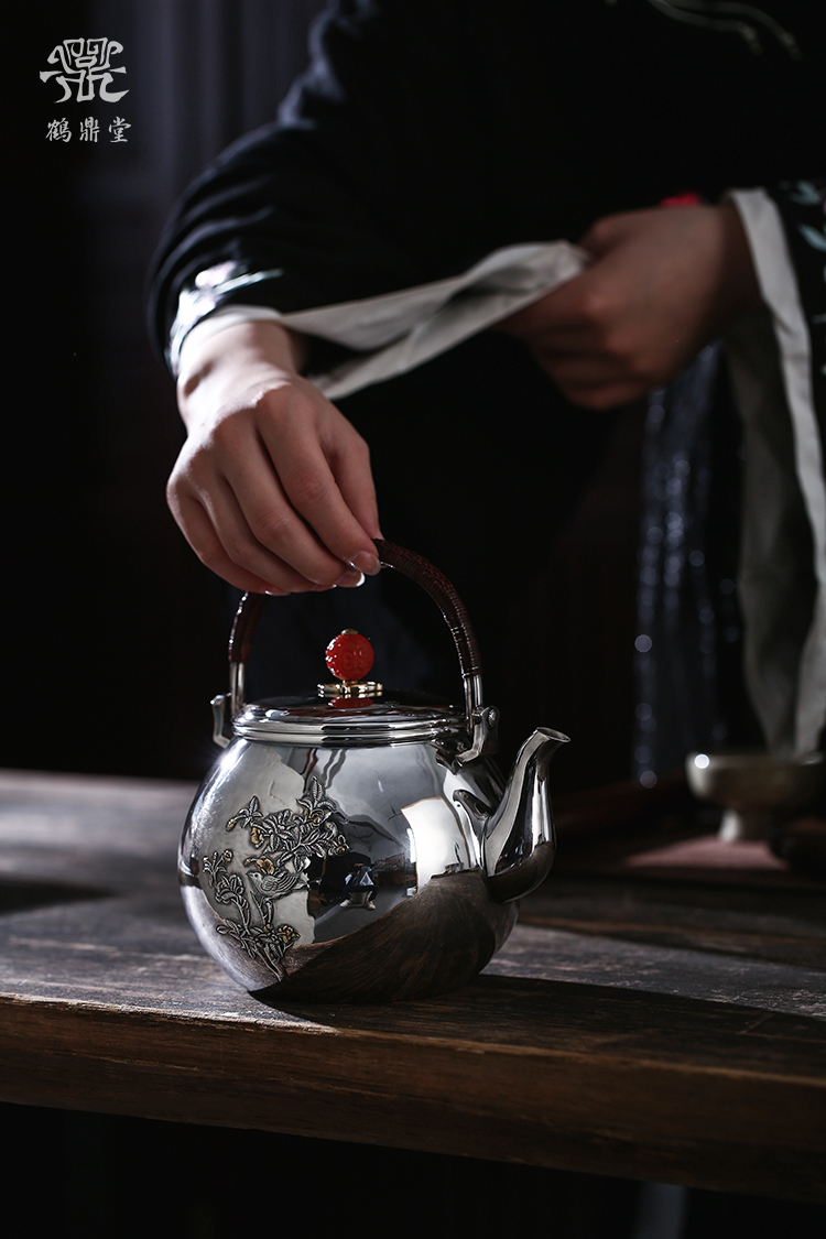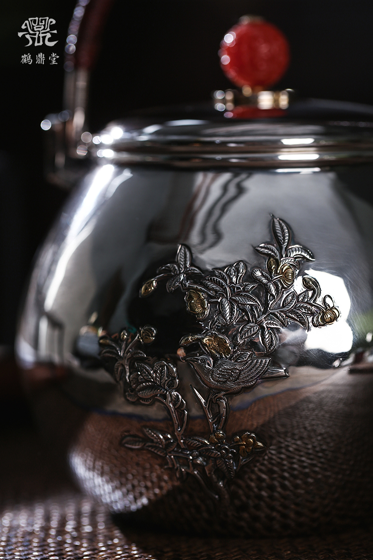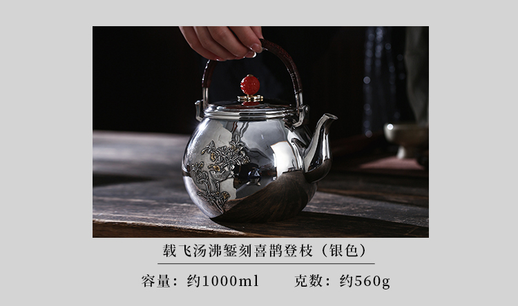 鹤鼎堂银壶闻天系列载飞汤沸錾刻喜鹊登枝(银色)(缺货)