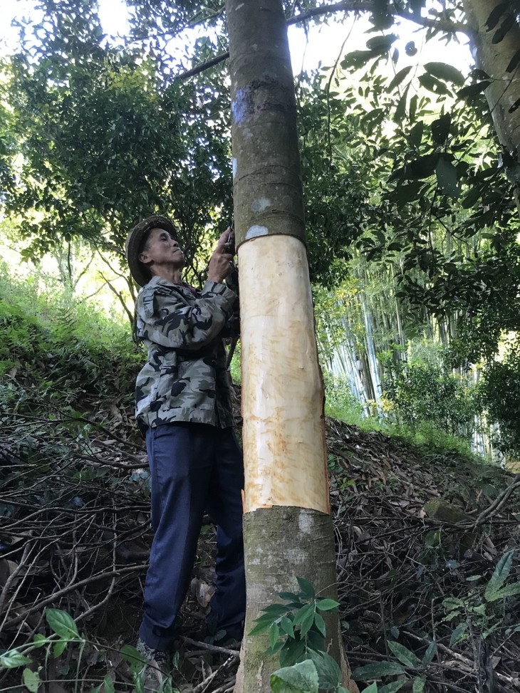 广东从化仙娘溪和乐明村的肉桂是2000年前后种下的,早一些的已经超过二十年,晚一些的也有十七八年。种肉桂和政府的鼓励有很大的关系,但是树种下之后,一方面村民不知道怎么销售,也没有商贩收,再加上很快沙糖橘的种植开始在周围村里风靡,因此,肉桂树就被大家种在山上置之不理了。