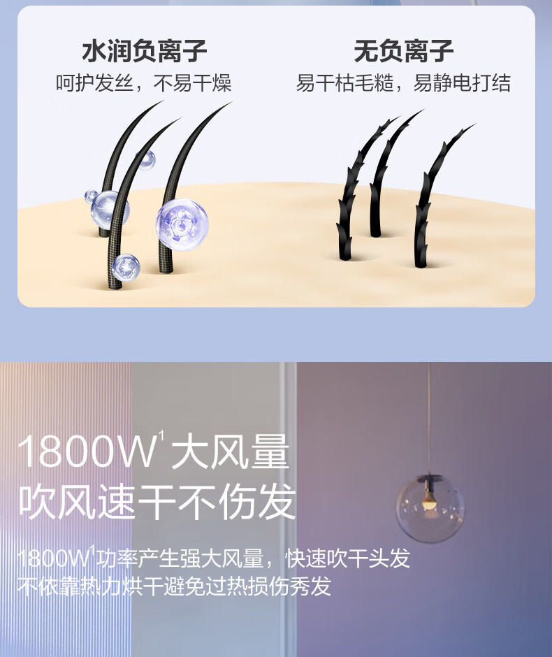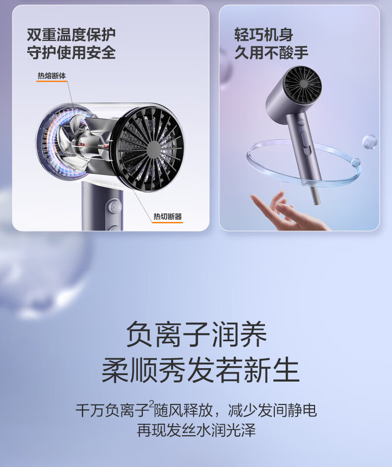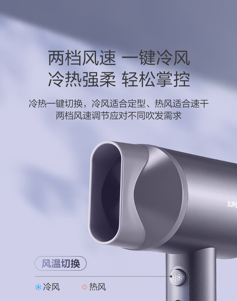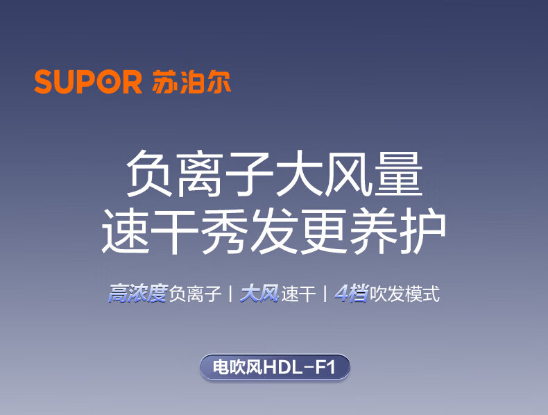 苏泊尔(SUPOR)电吹风 折叠新意巧瘦身大功率高转电机吹风机 大风力速干千万级负离子风温风速可调节 HDL-F1