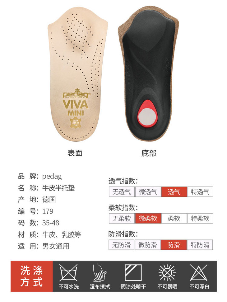 德国pedag牛皮底托护理鞋垫半垫179/180
