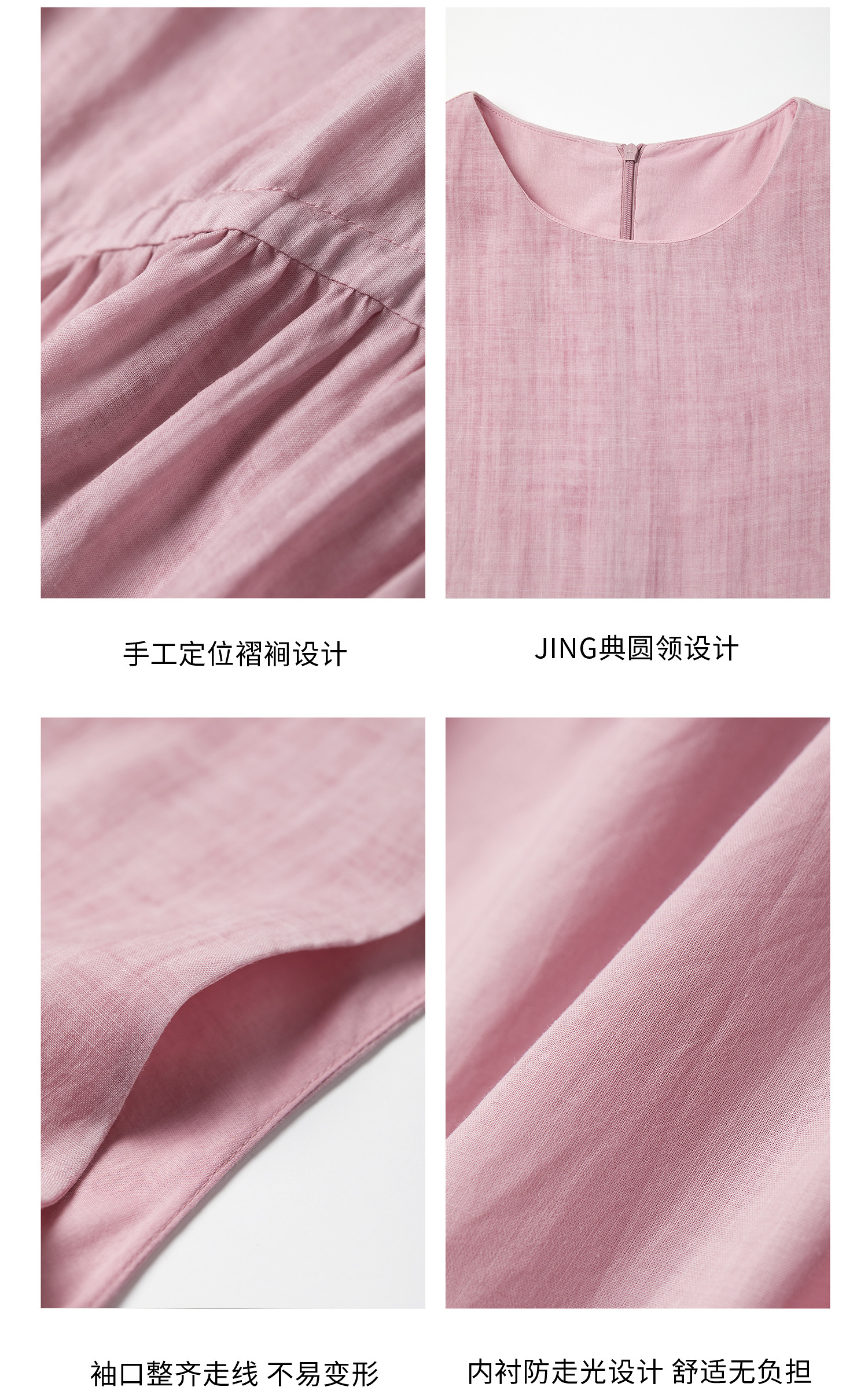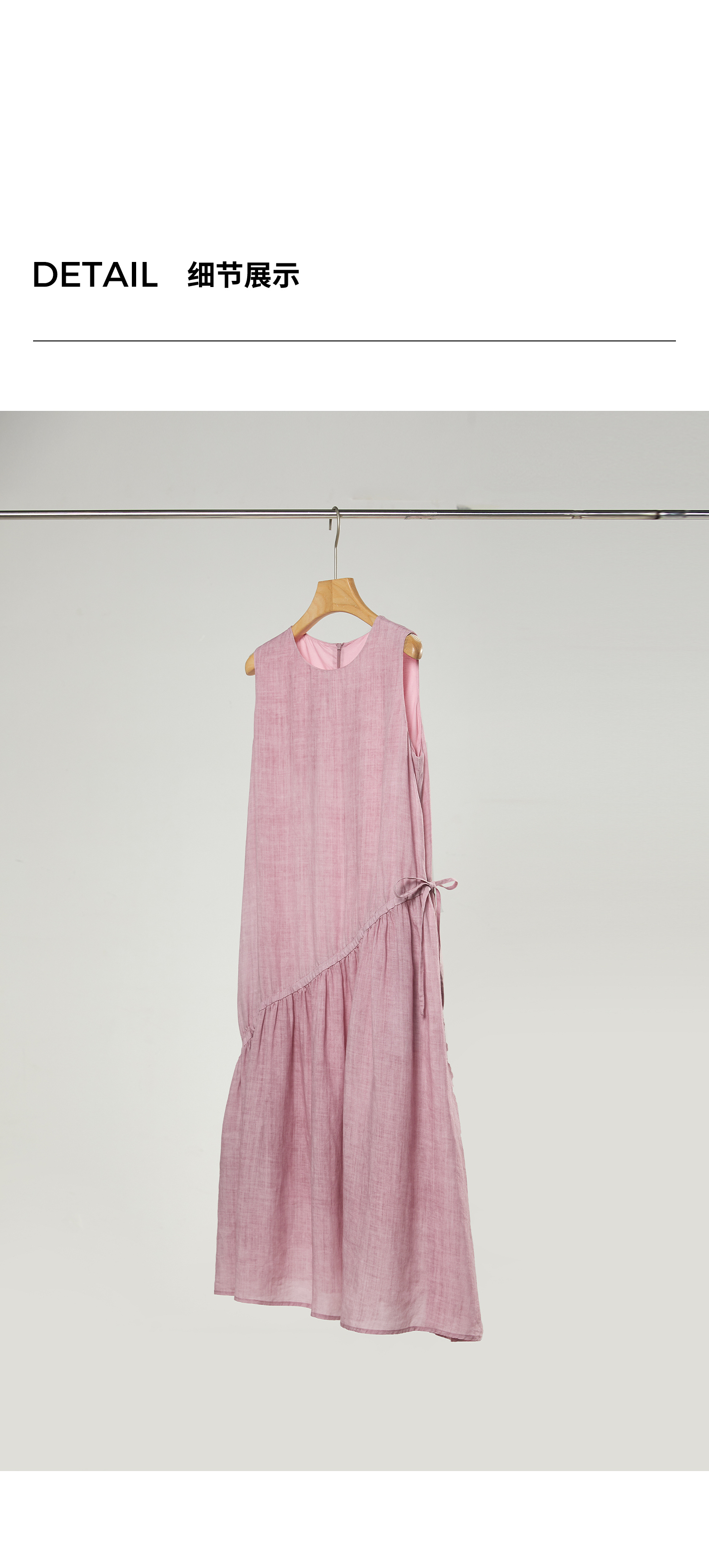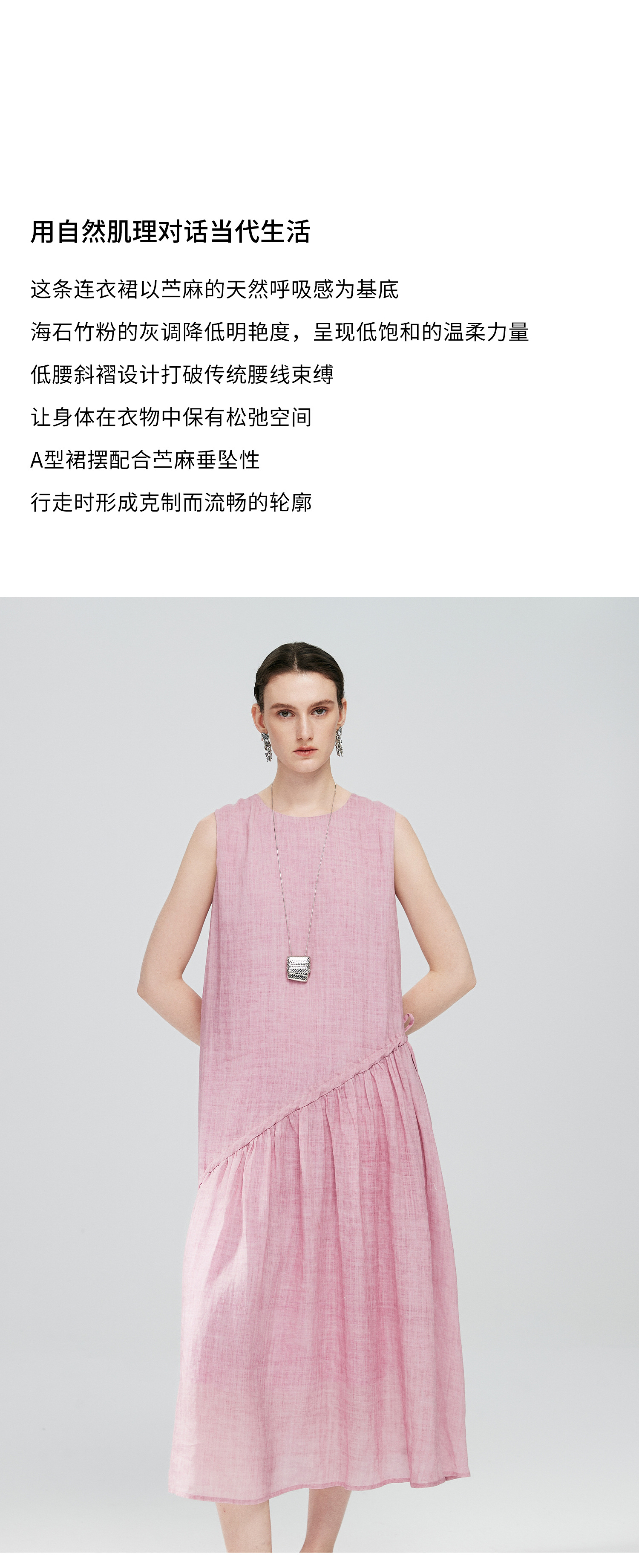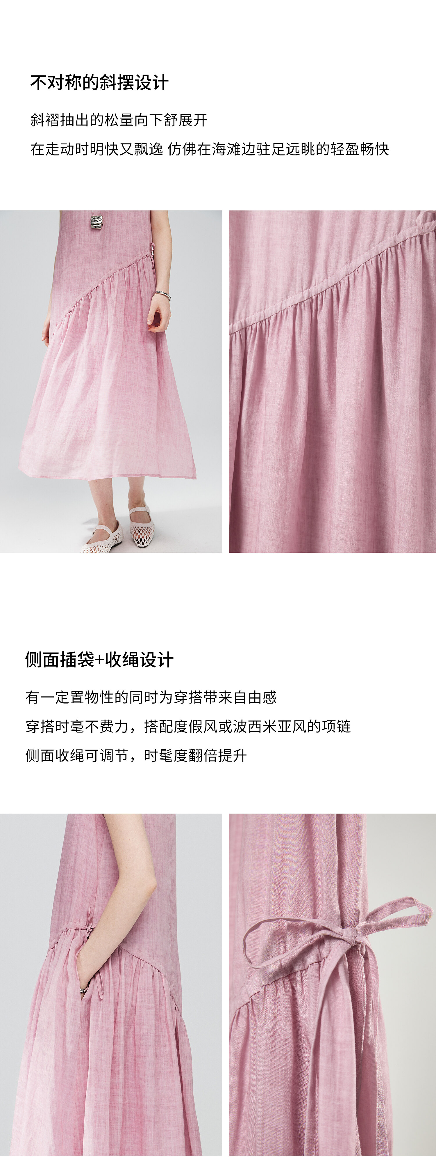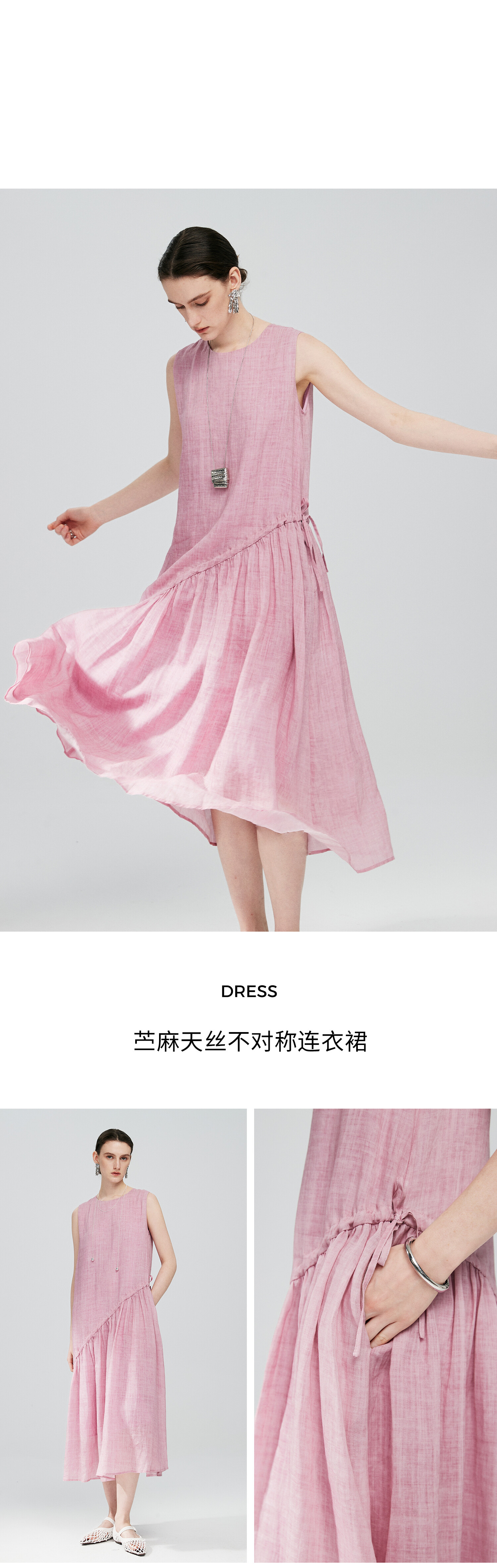 棉仓363616036-初棉海石竹粉-海滨度假风苎麻天丝不对称连衣裙