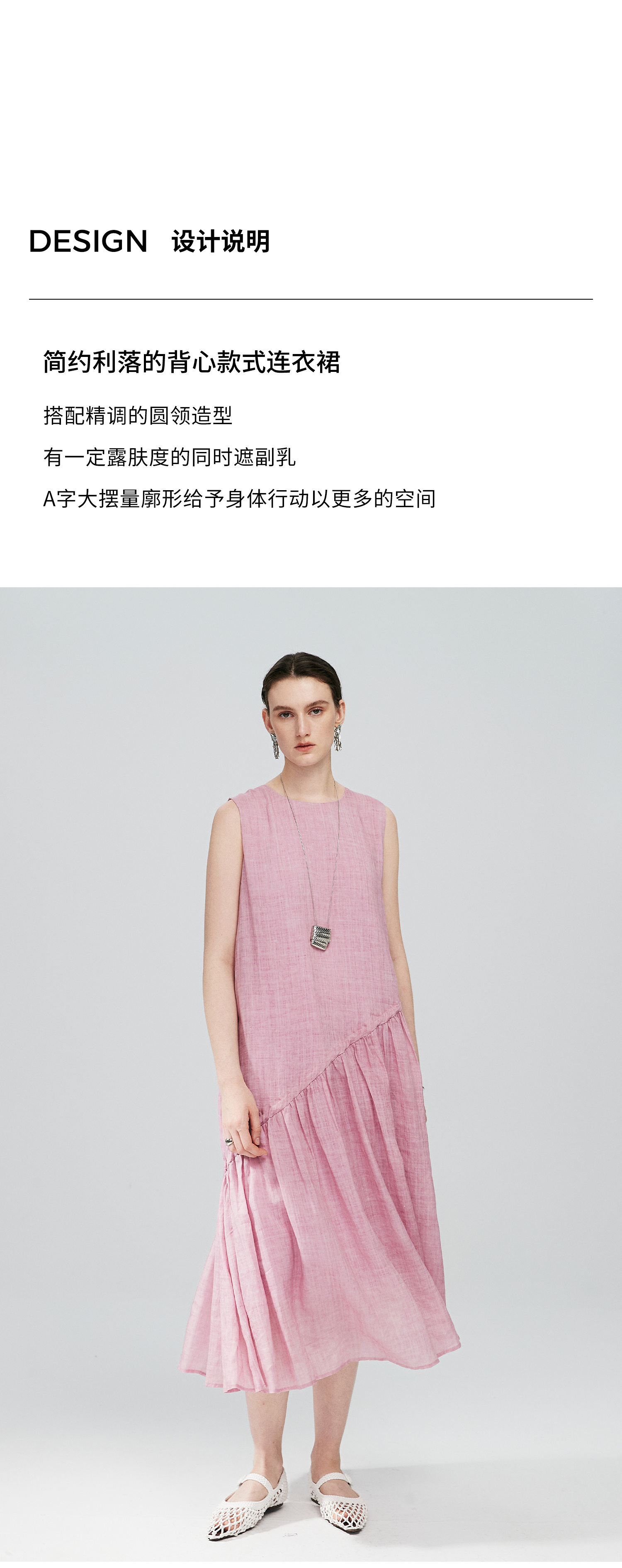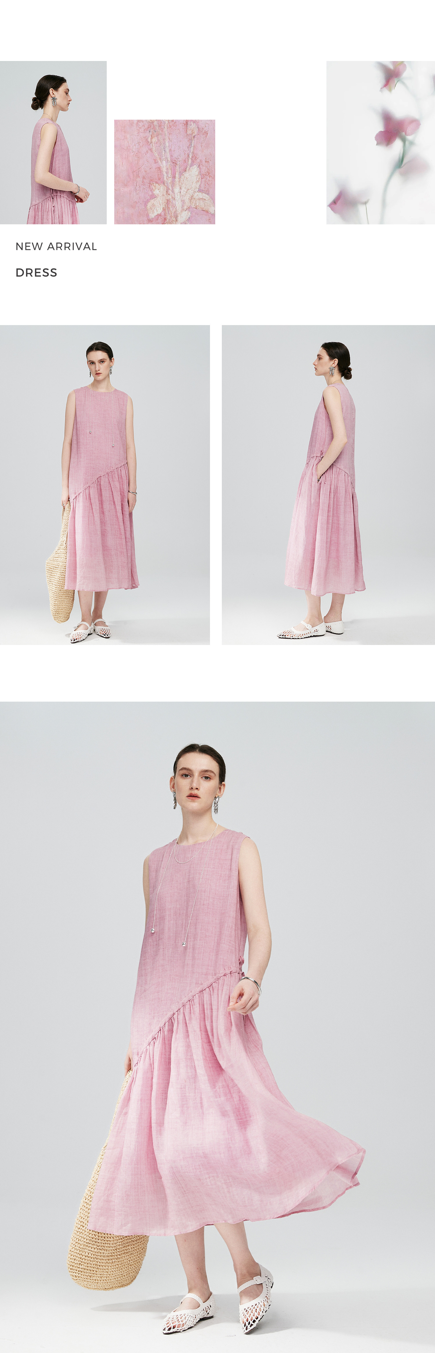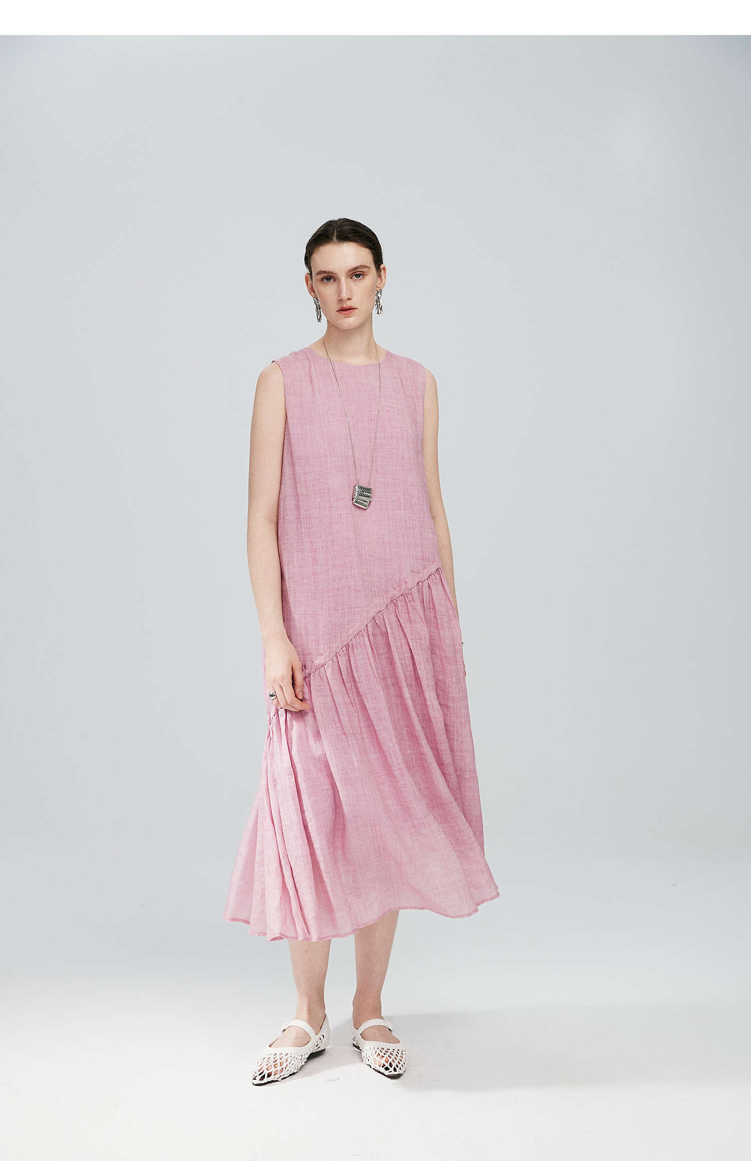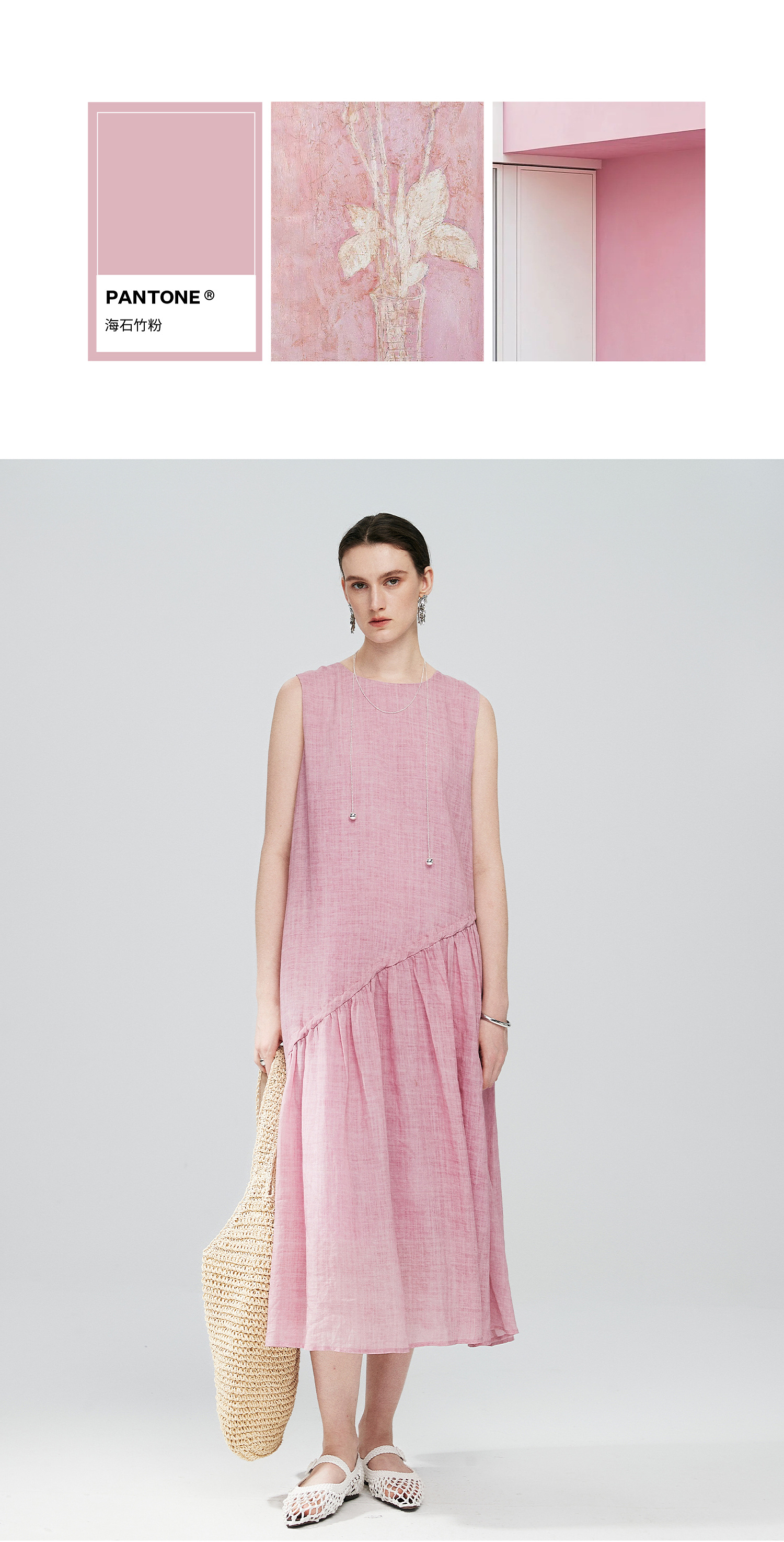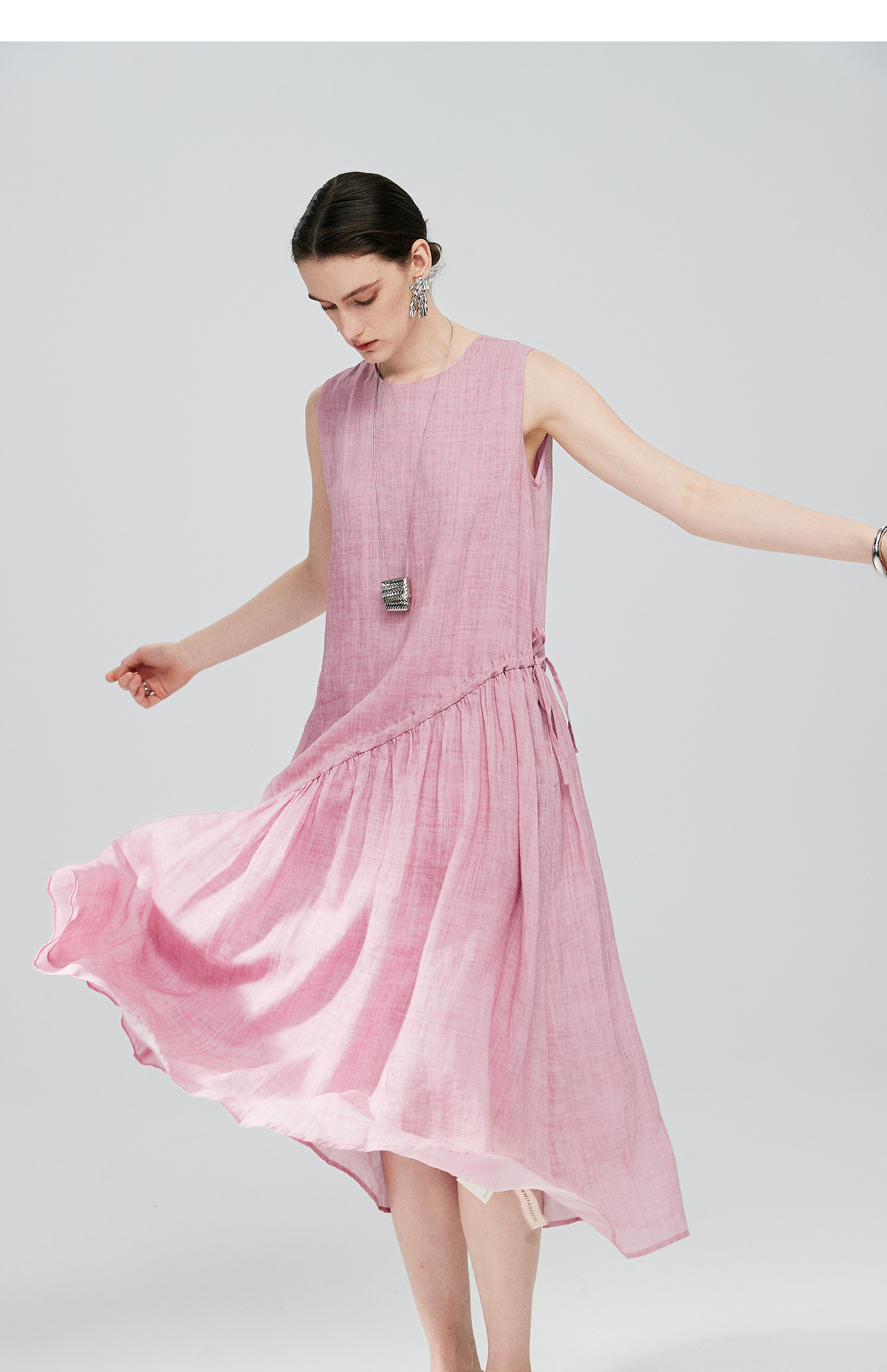 棉仓363616036-初棉海石竹粉-海滨度假风苎麻天丝不对称连衣裙