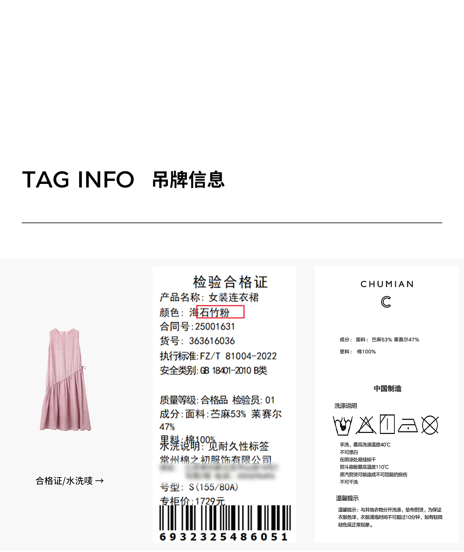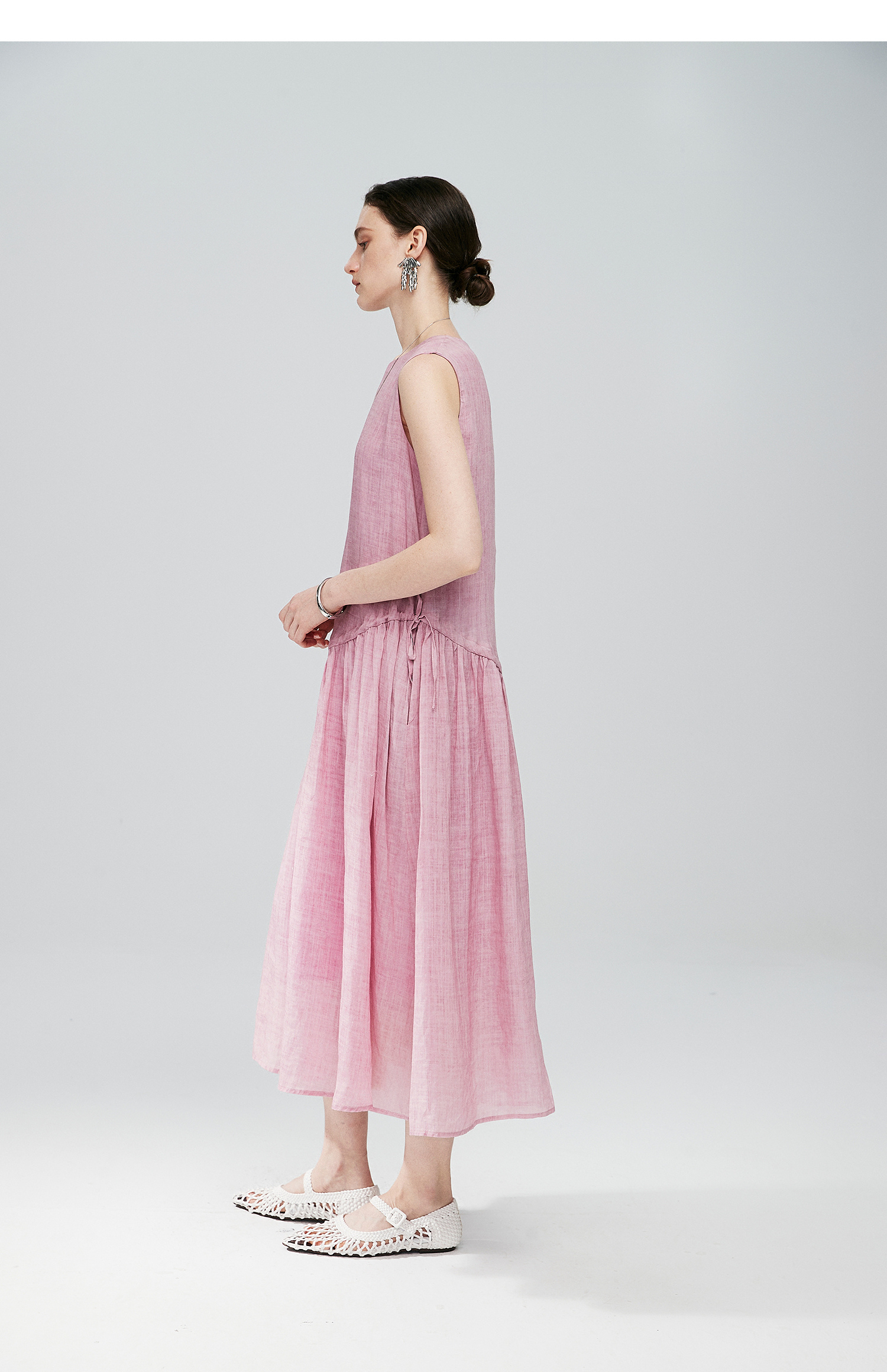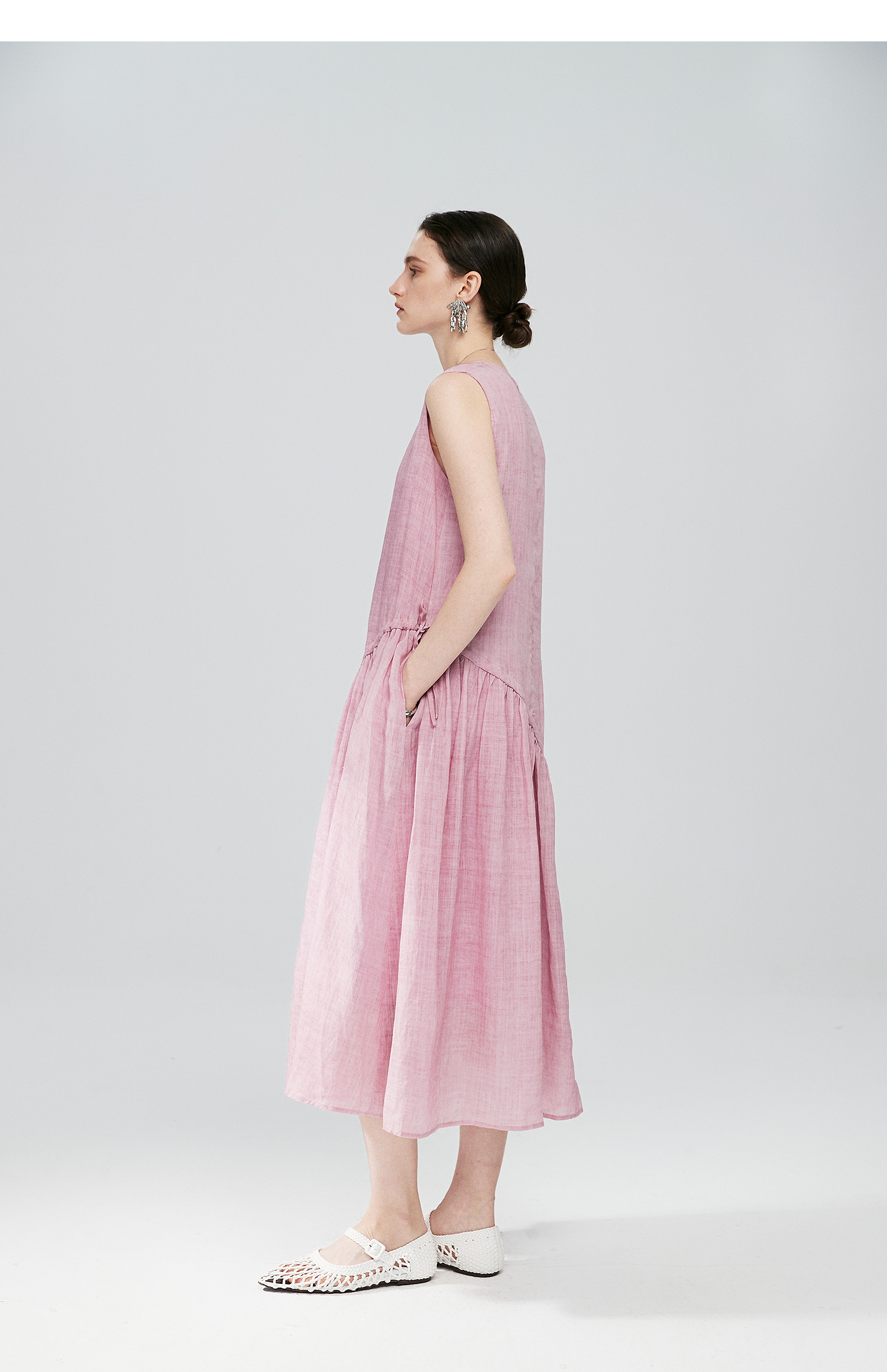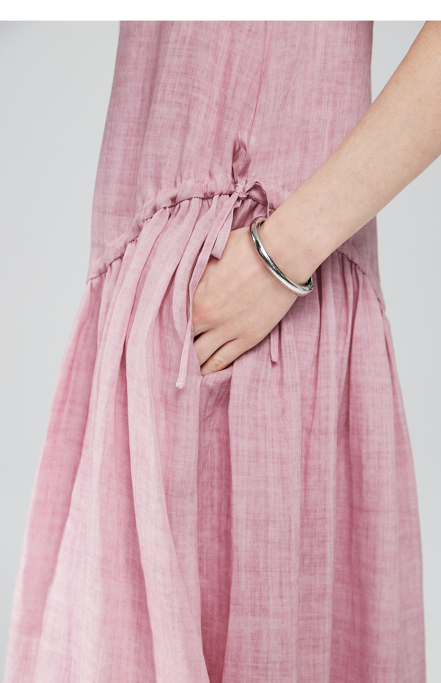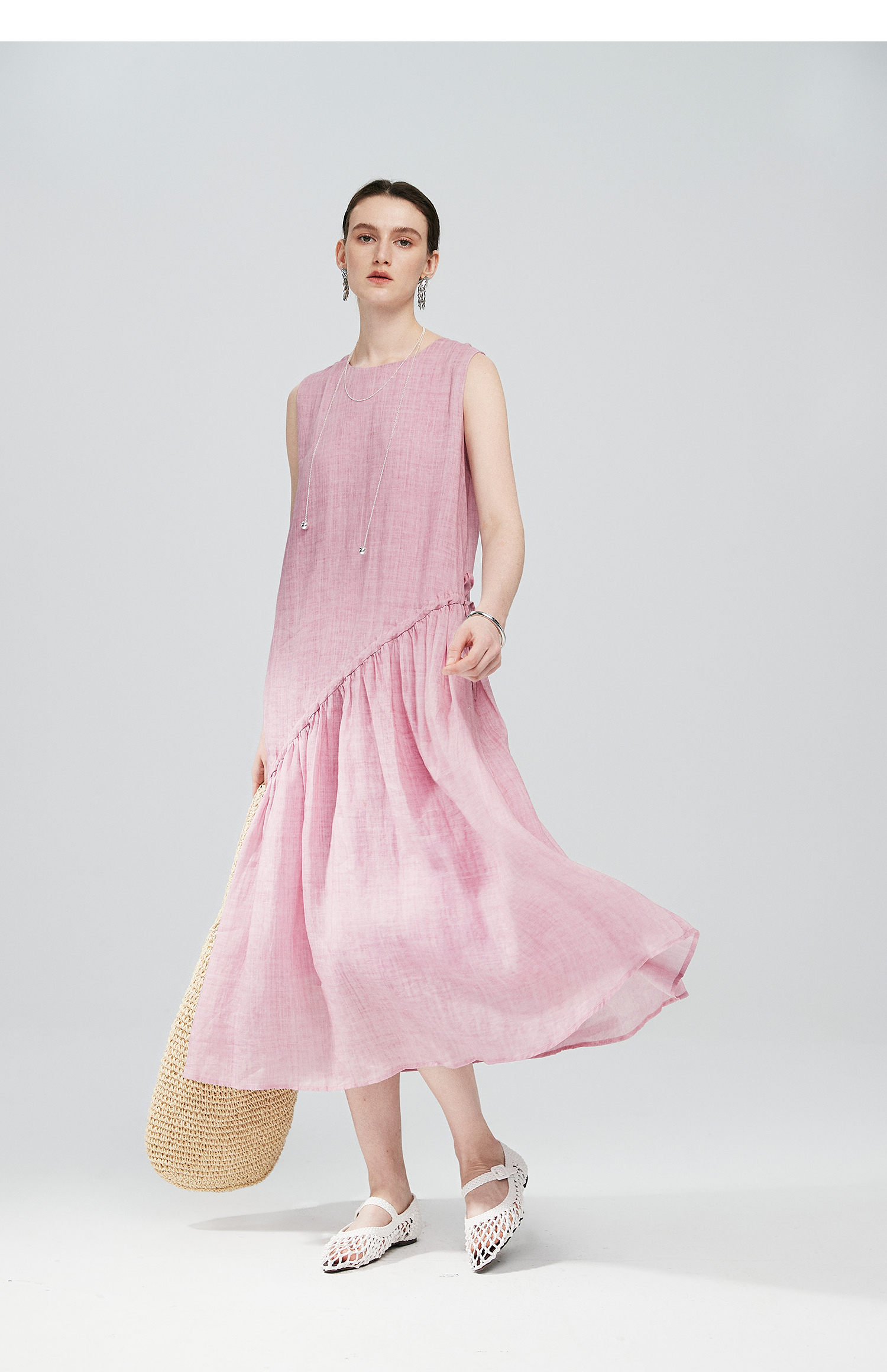 棉仓363616036-初棉海石竹粉-海滨度假风苎麻天丝不对称连衣裙