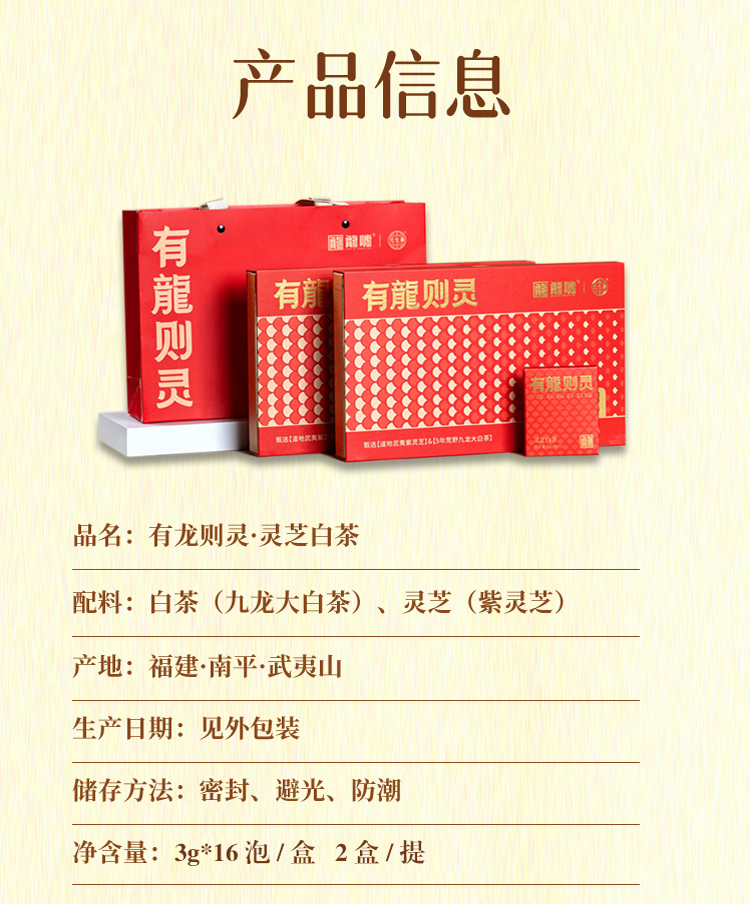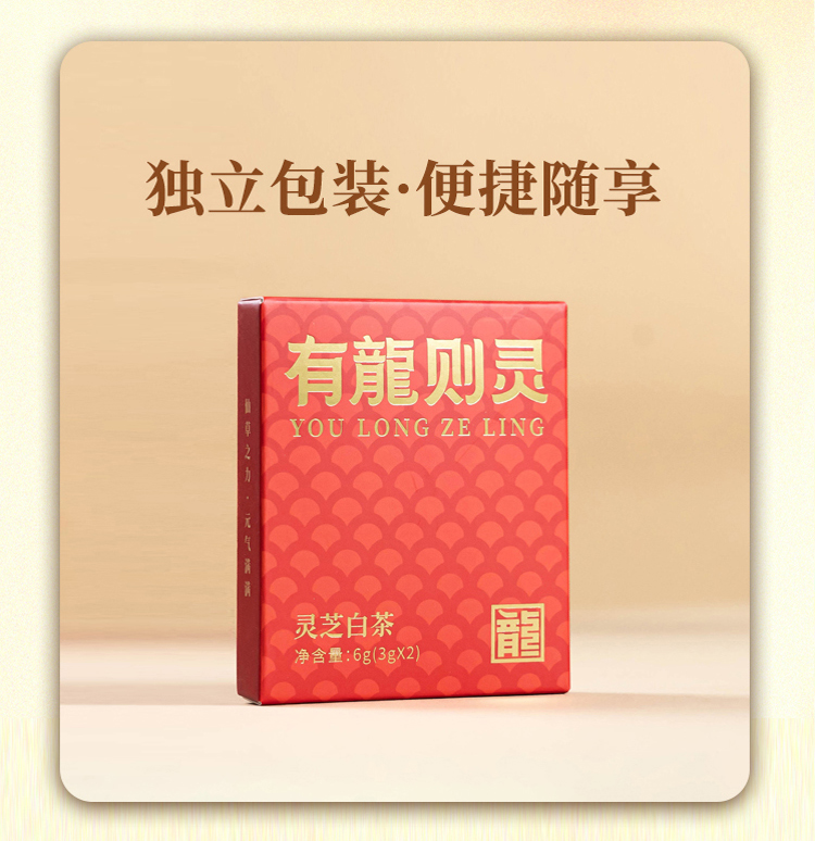 元生泰 有龙则灵.灵芝白茶 3g*16泡/盒 武夷山紫灵芝+福建松溪白茶