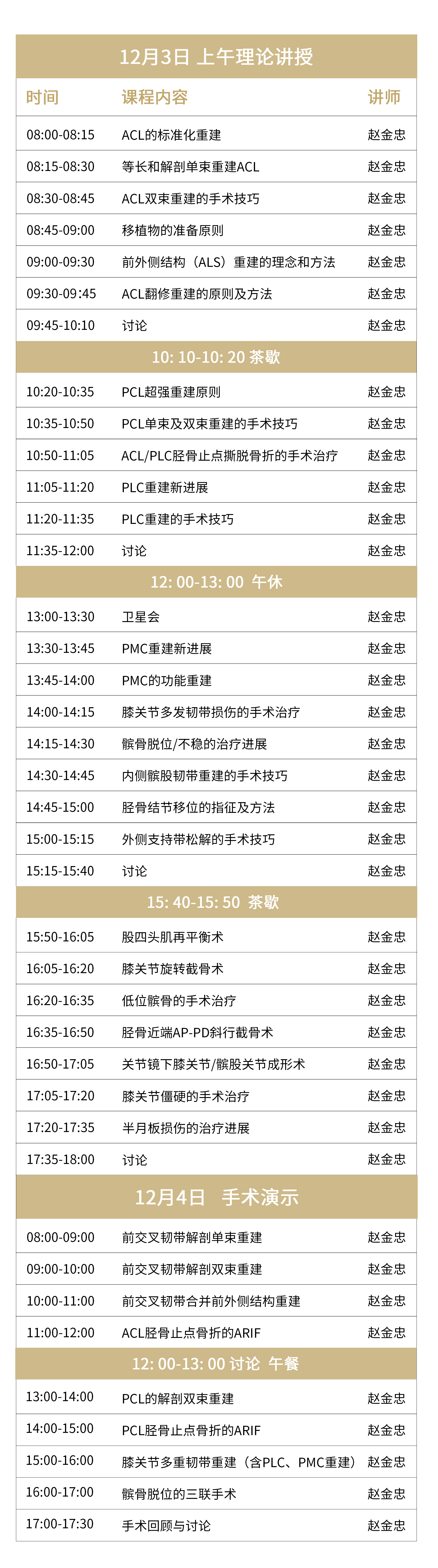 这是一次最全面、最系统、最深入的微创膝关节功能重建专题课程。为了让学员更好的掌握相关理论和操作技巧,上海交通大学附属第六人民医院运动医学科主任赵金忠教授对课程进行了精心设计和准备,在理论授课+手术演示的基础上,辅以线上互动答疑环节,旨在带领学员真正掌握一套能“上得了战场”的真功夫!