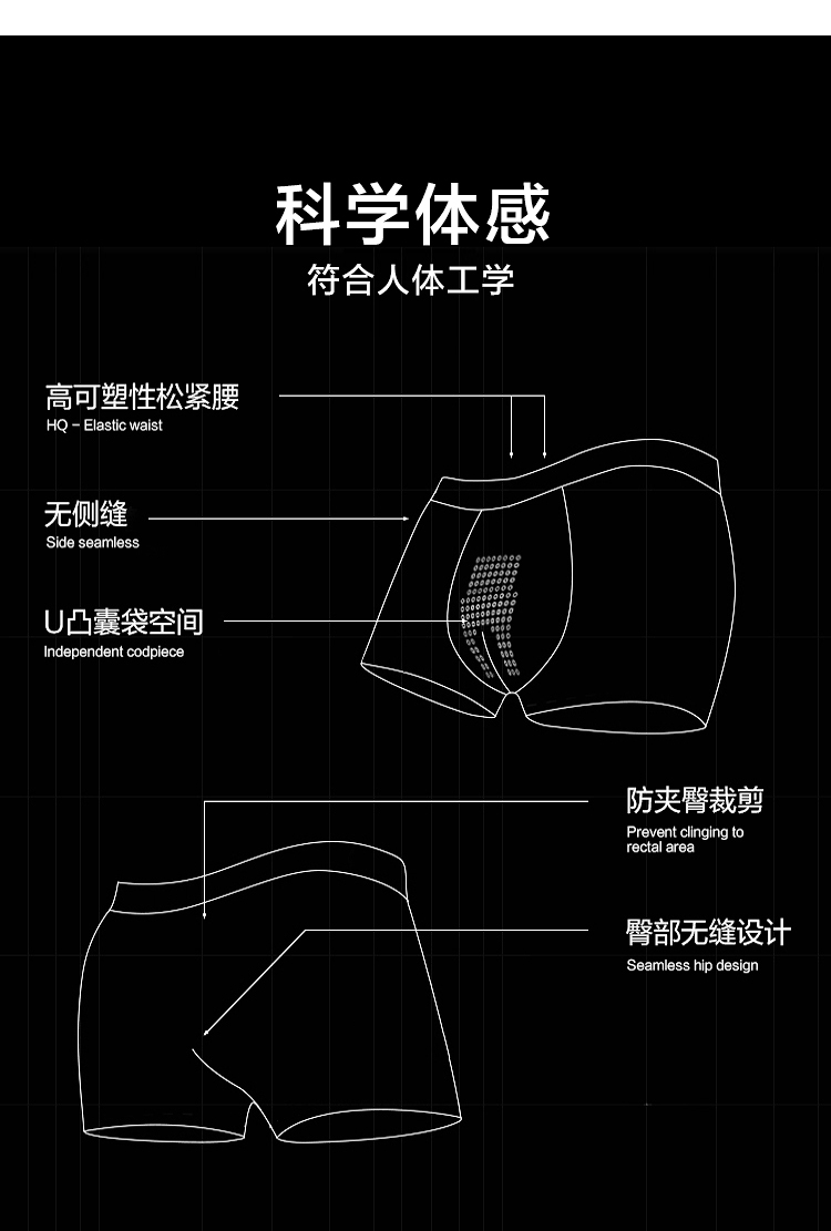 棉仓313898003-60s莫代尔内裤男负离子抗菌裆透气无痕平角内裤3D无痕剪裁