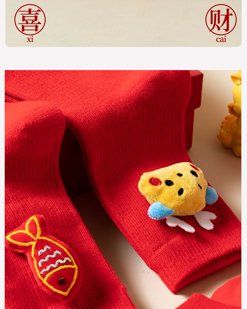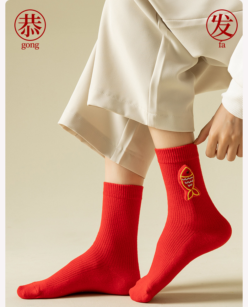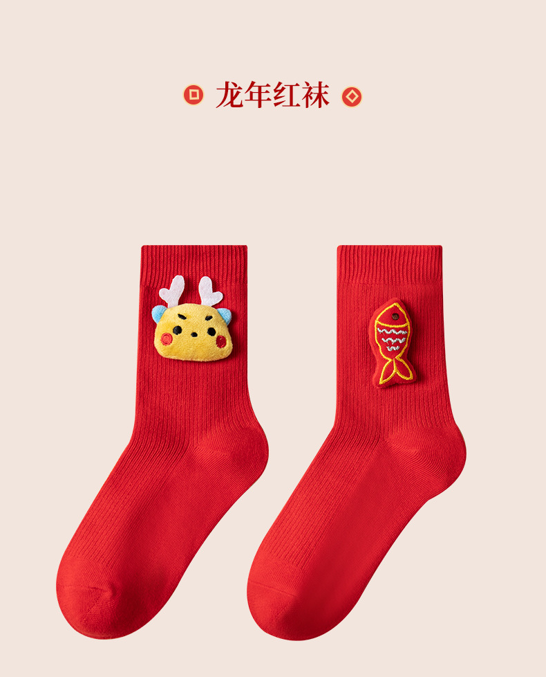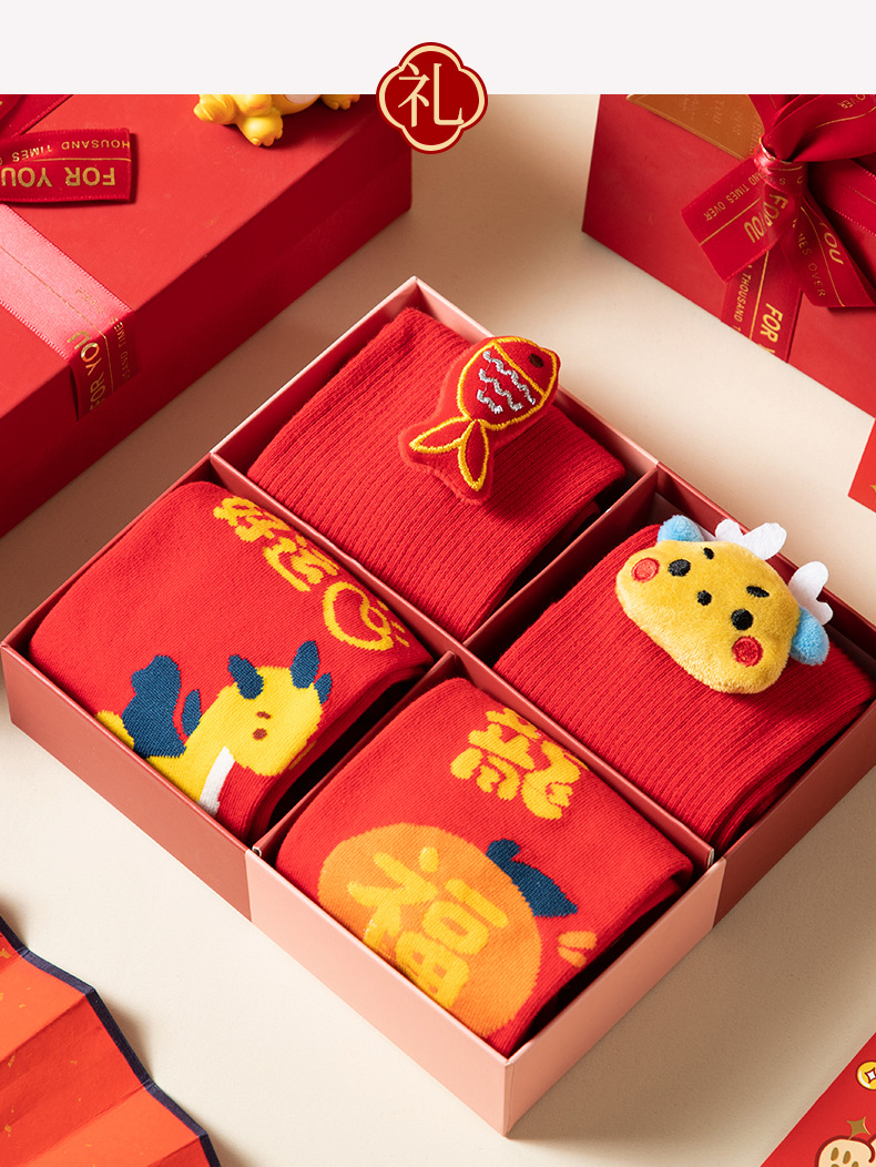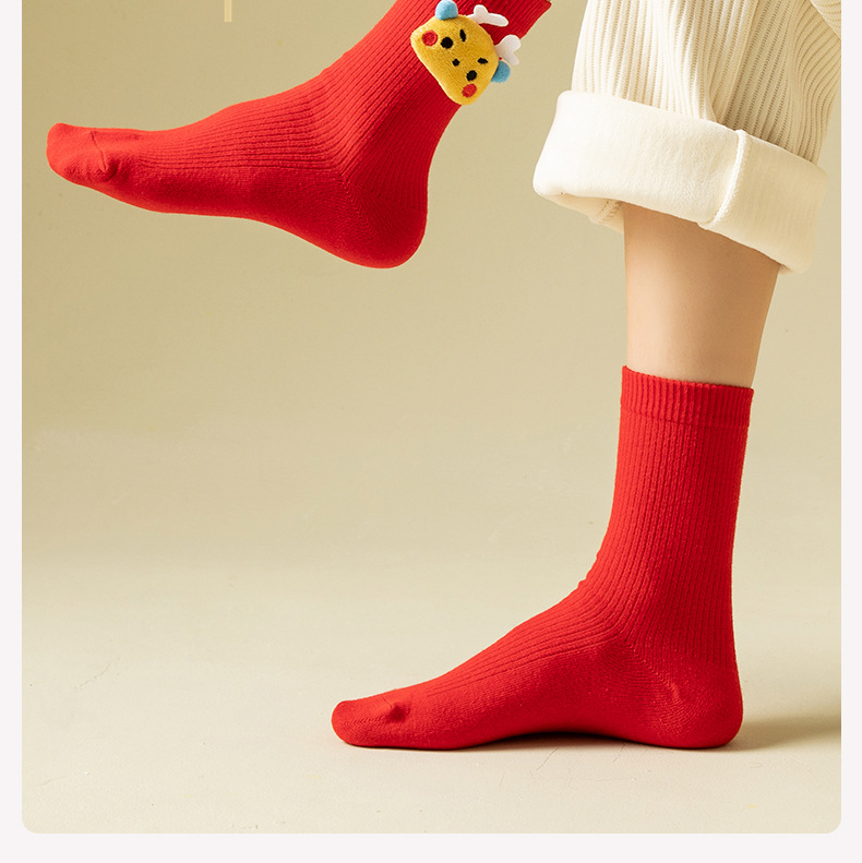 【穿好袜行好运❗️鸿运中筒袜】卡通可爱蛇年,新年本命年,红色袜子女,中筒袜,棉袜秋冬结婚情侣礼物大红长筒袜新年礼盒年货礼盒