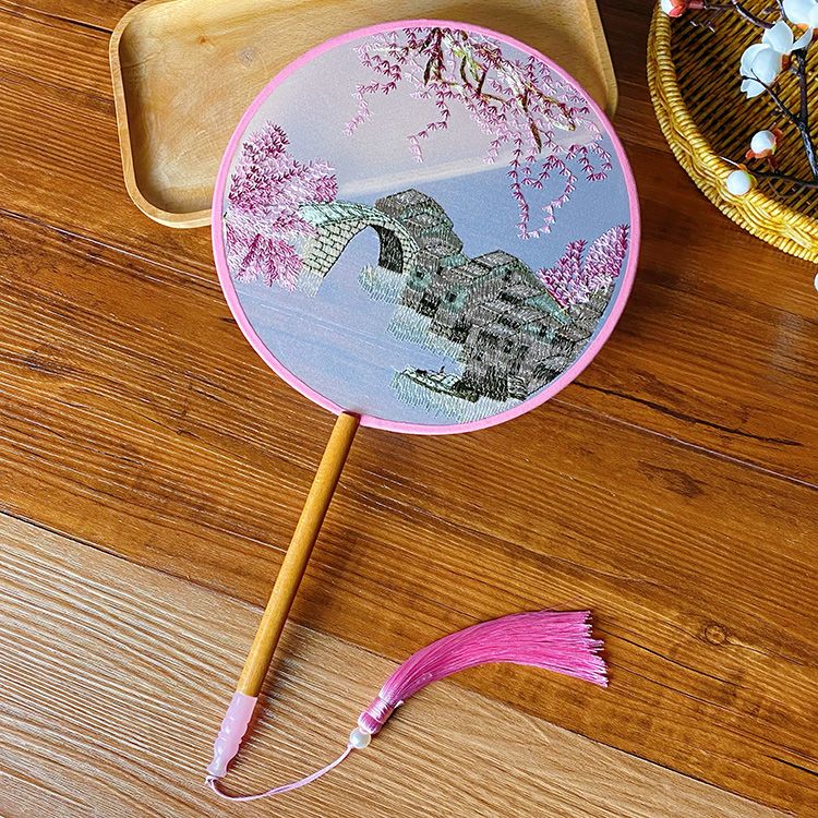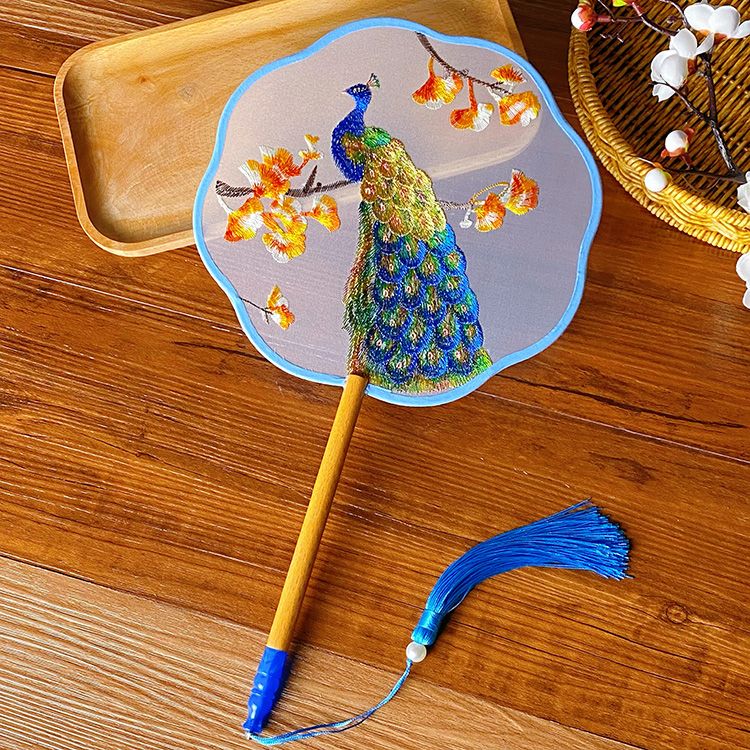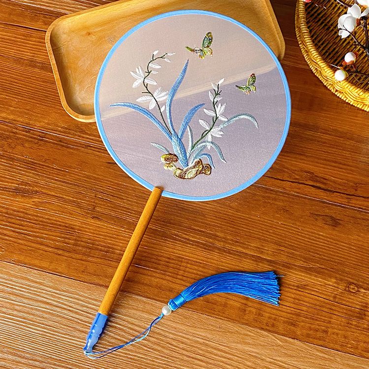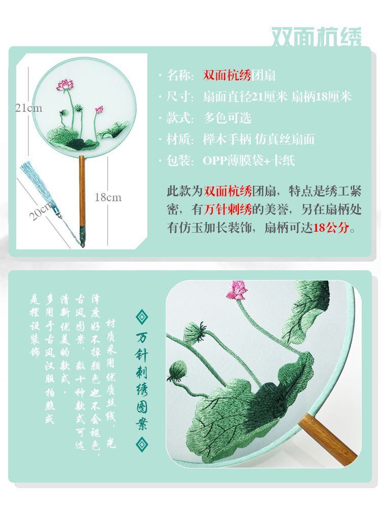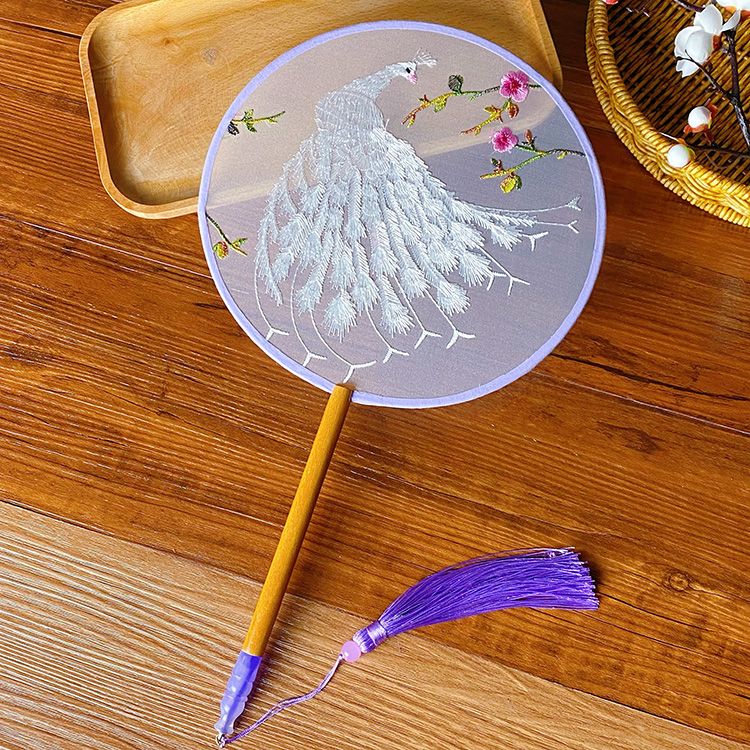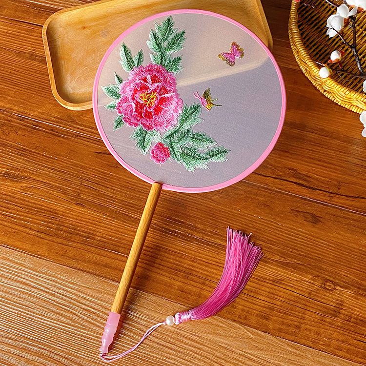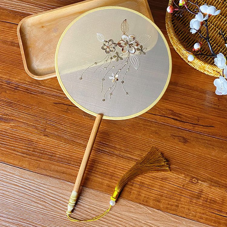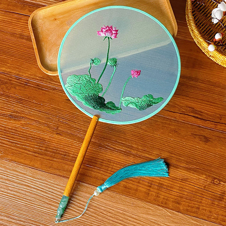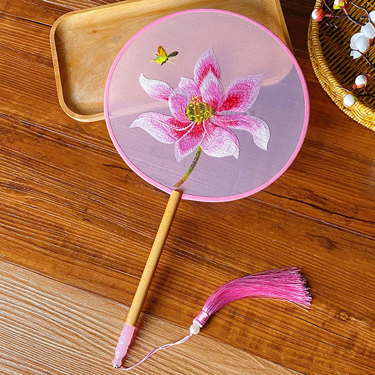 中国古风文艺透明刺绣团扇古典汉服旗袍舞蹈扇八瓣圆形绣花团扇