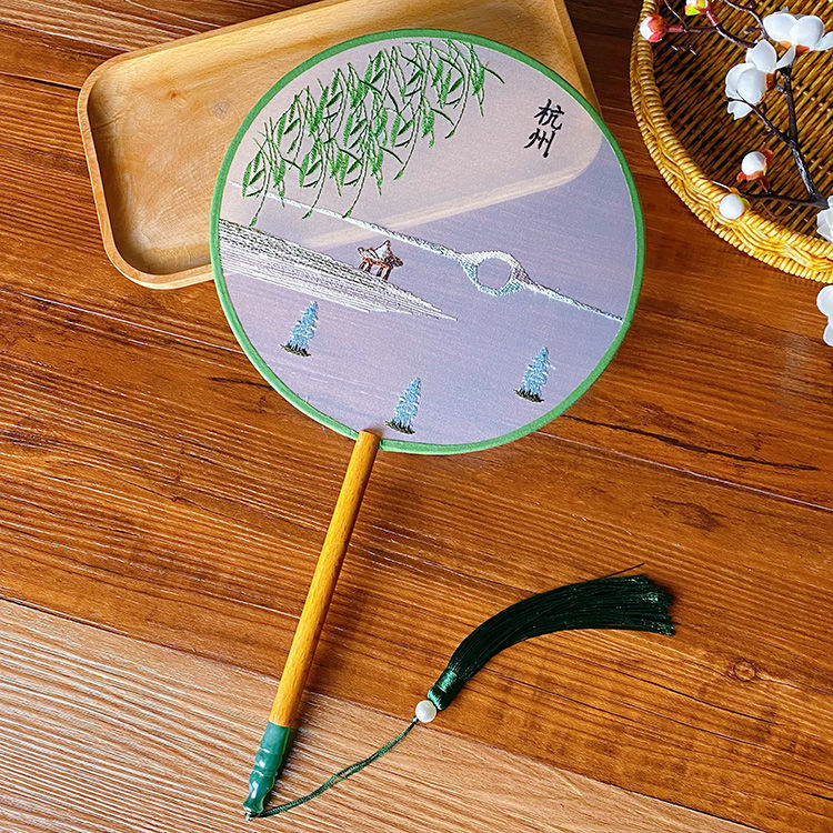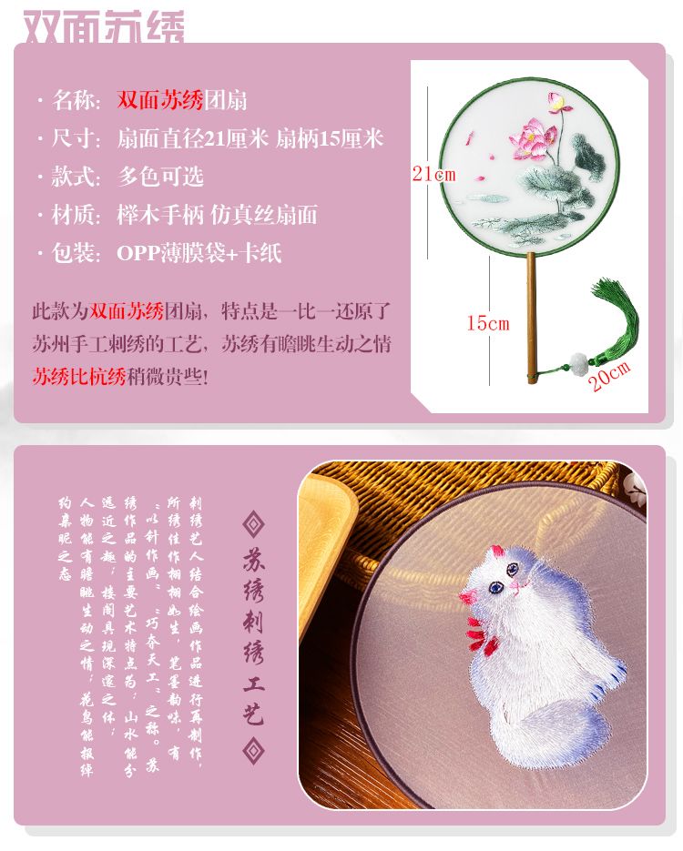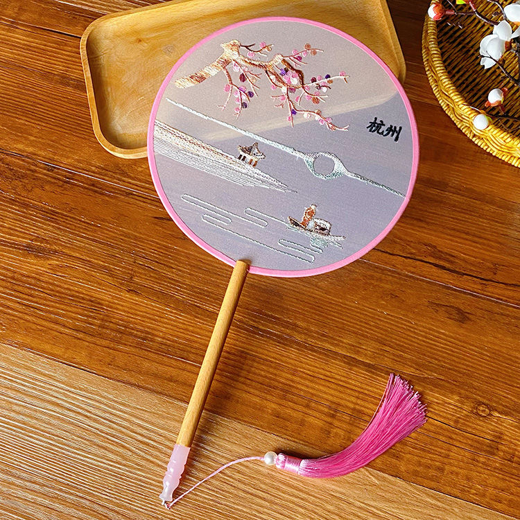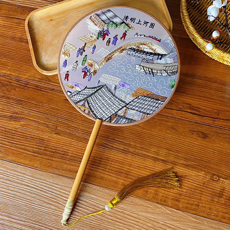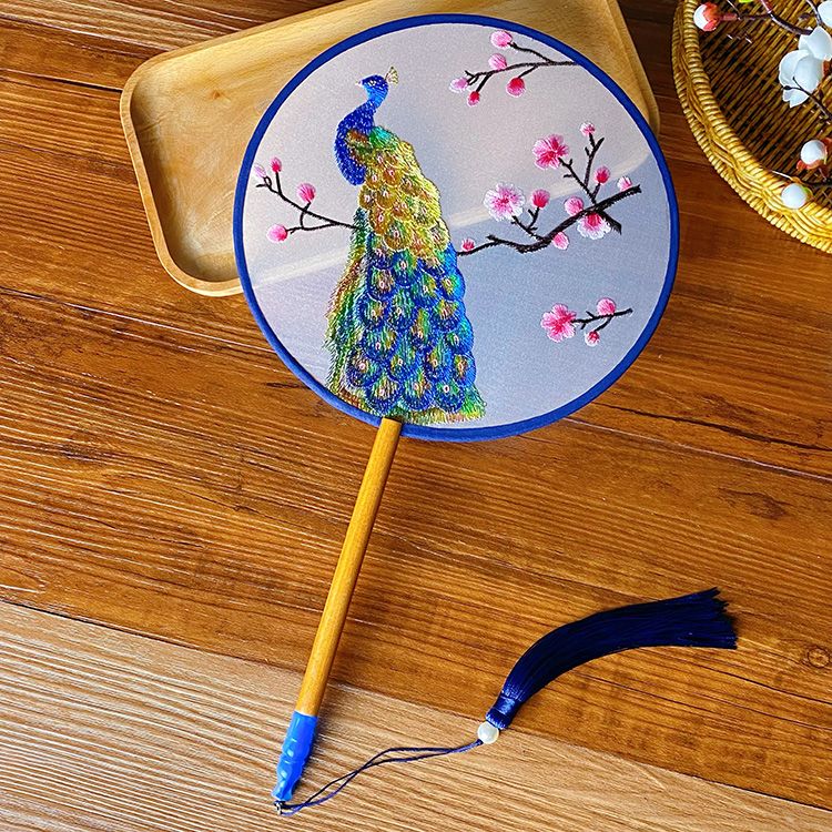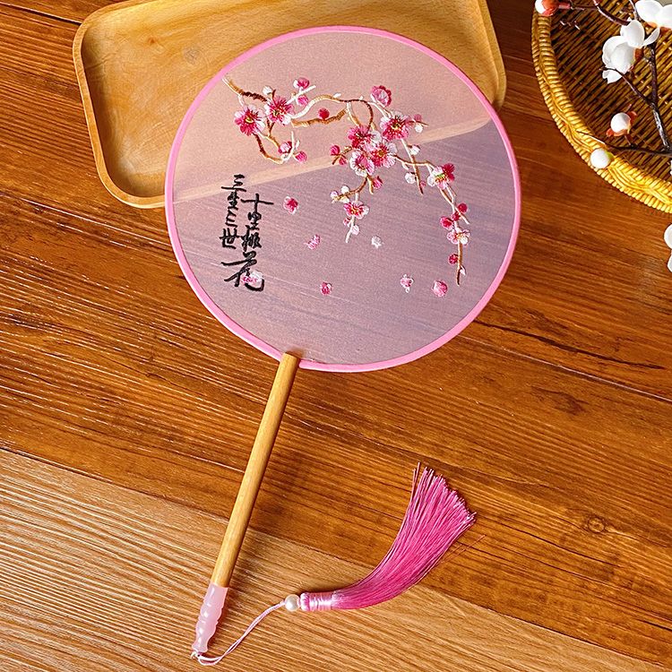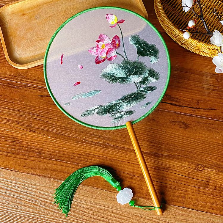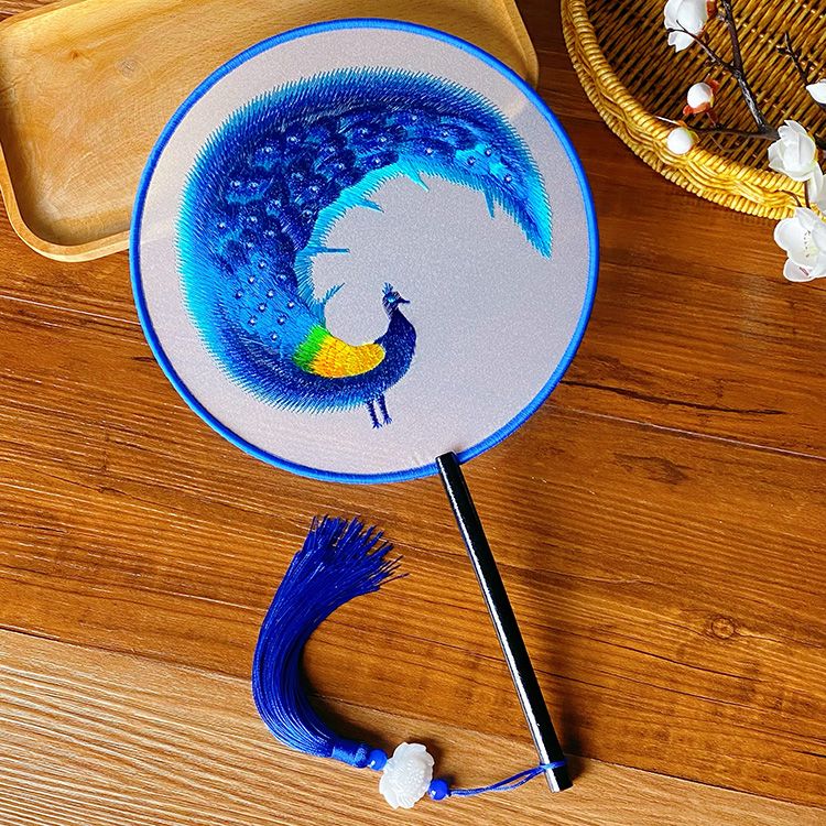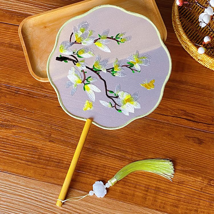 中国古风文艺透明刺绣团扇古典汉服旗袍舞蹈扇八瓣圆形绣花团扇