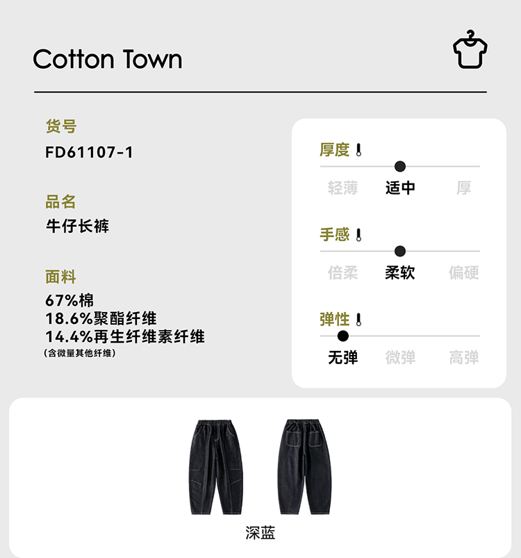 【牛仔长裤】棉花堂 牛仔长裤 活性染色 防褪色 耐磨 FD61107-1