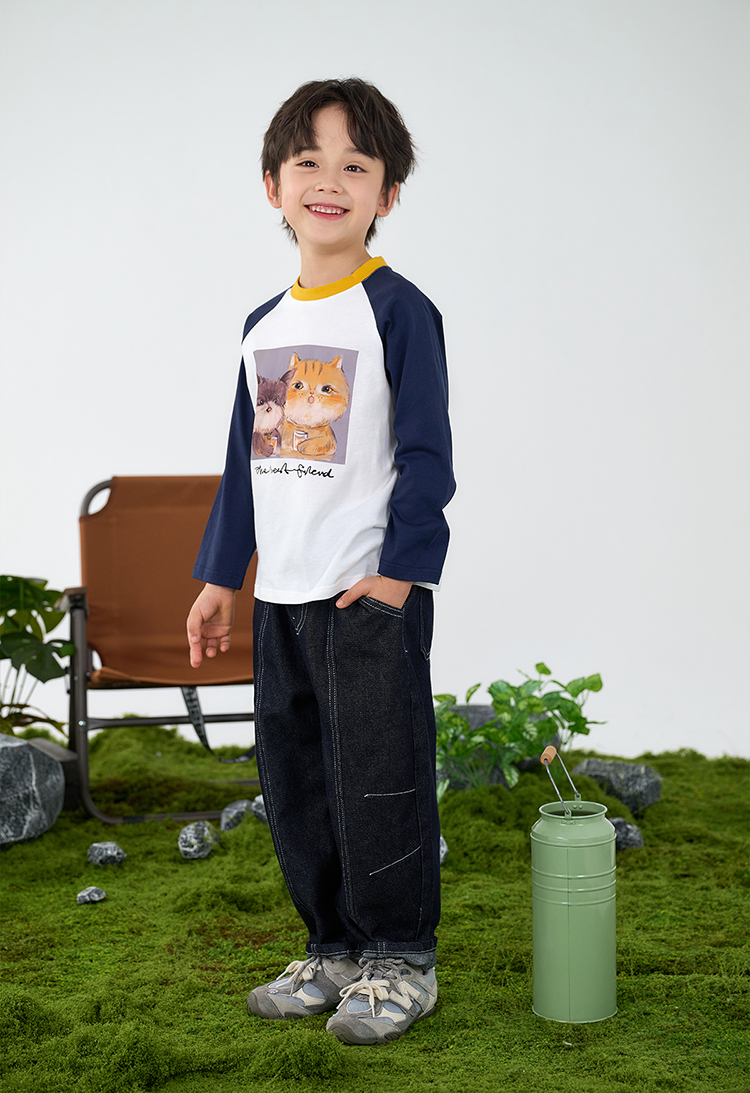 【100%棉 山系假两件糯糯T桖】棉花堂针织长袖T恤 A类面料 吸湿透气 不易起球 FA52152YX