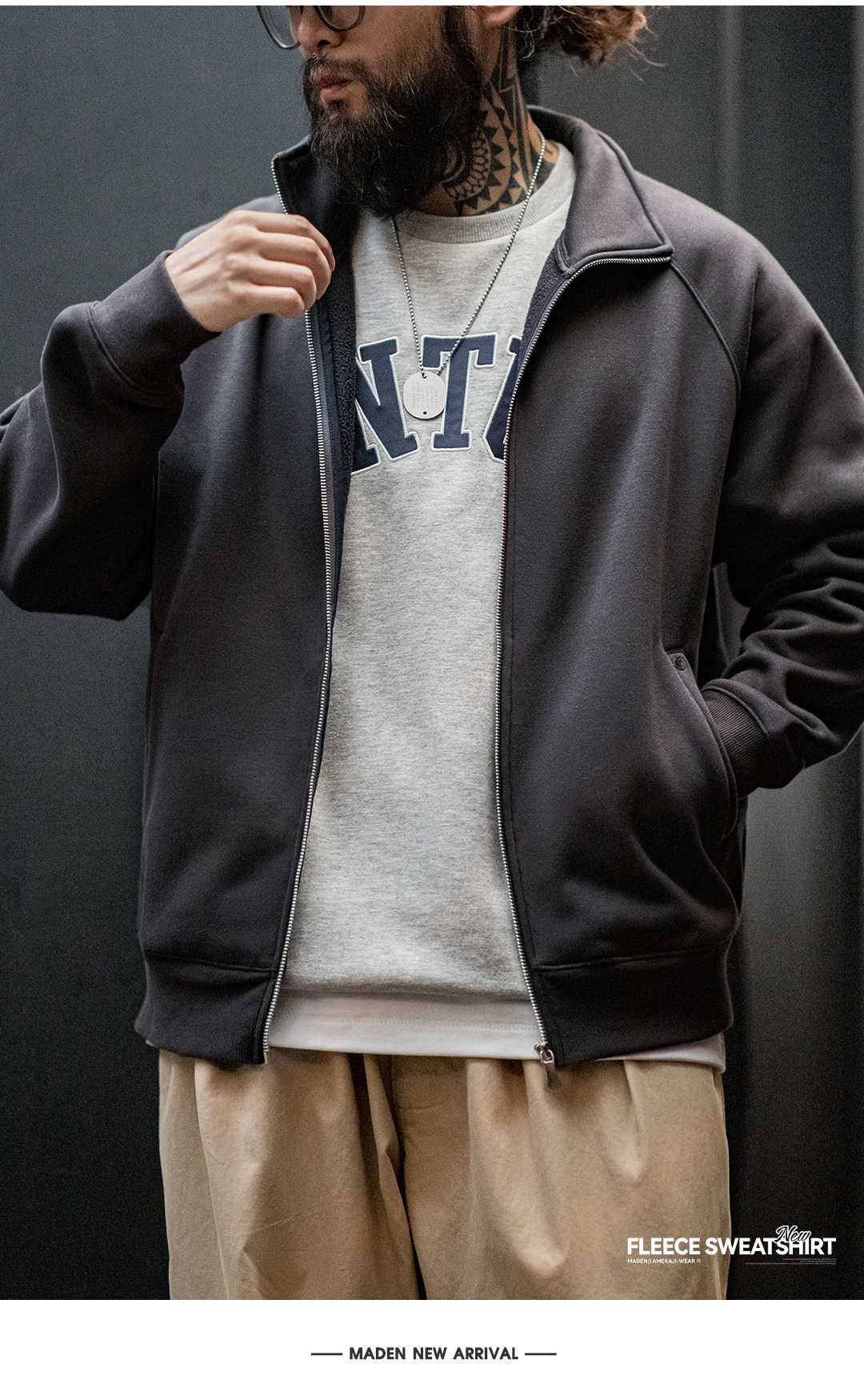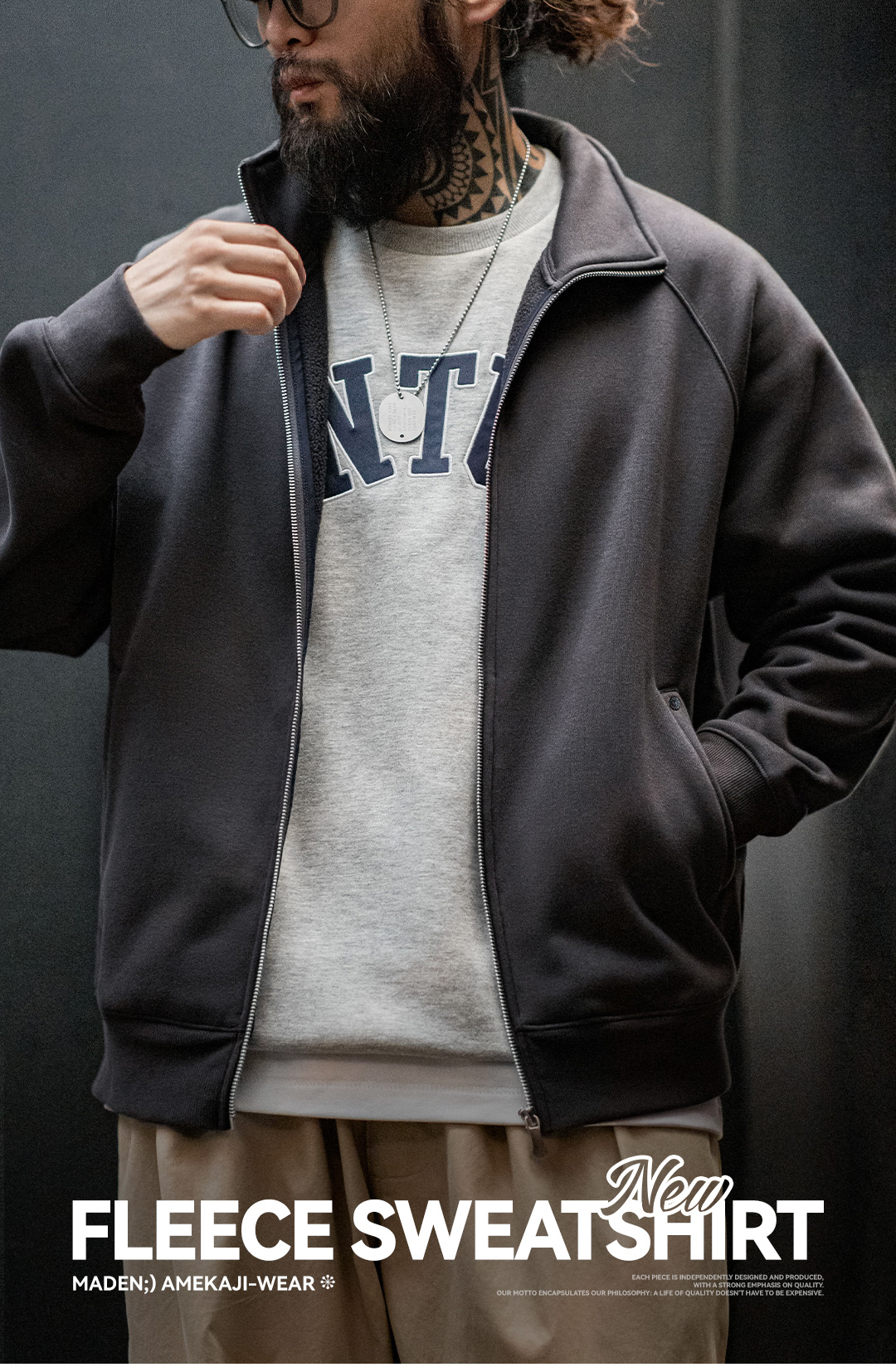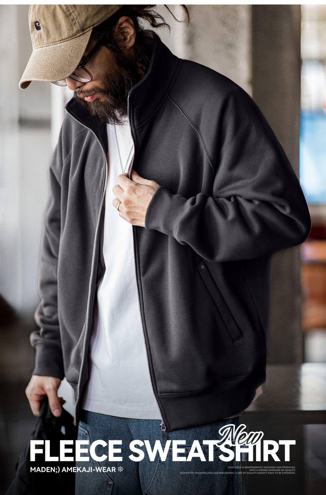 工装优选美式休闲摇粒绒开衫卫衣学院风立领加绒运动拉链外套男秋