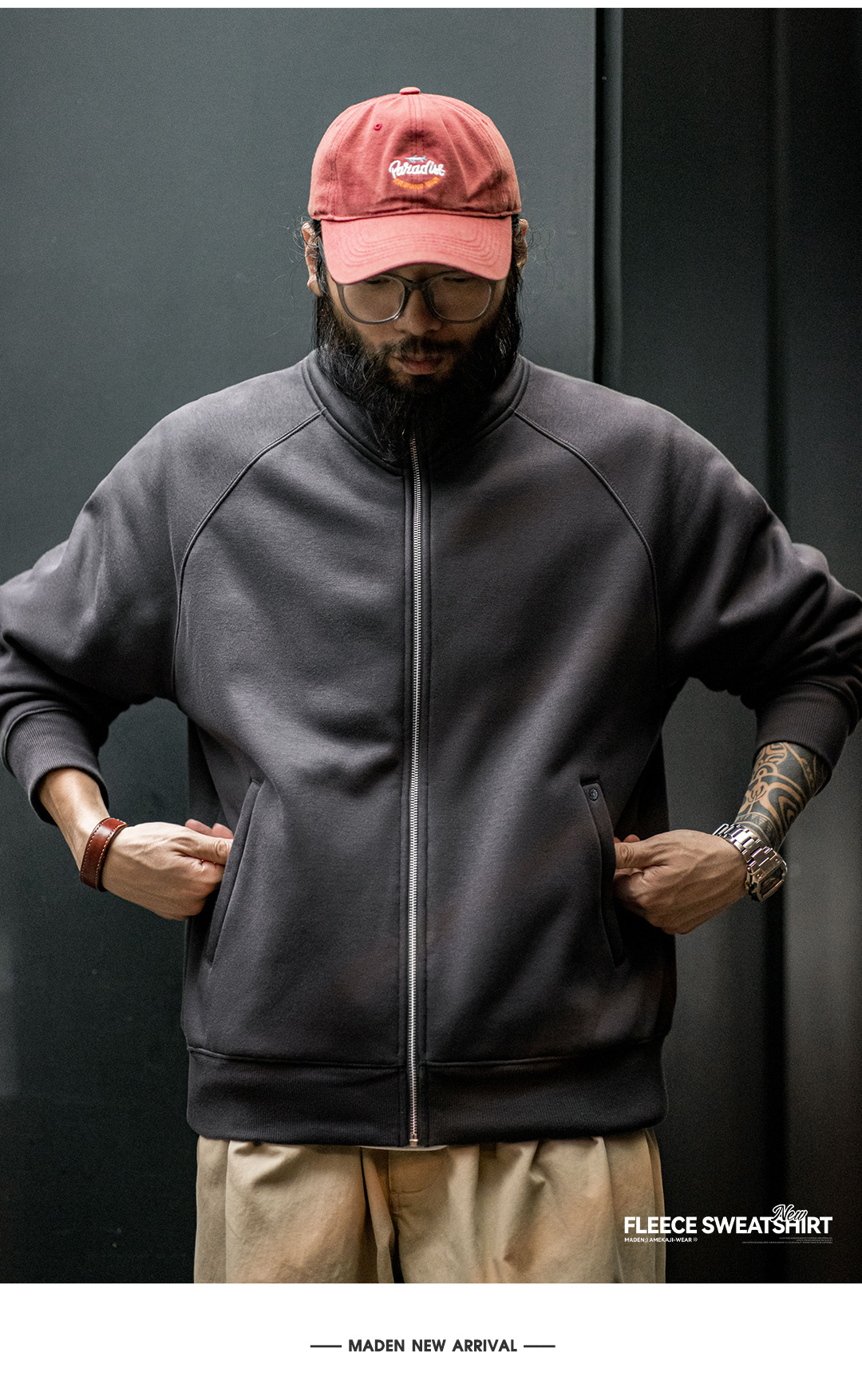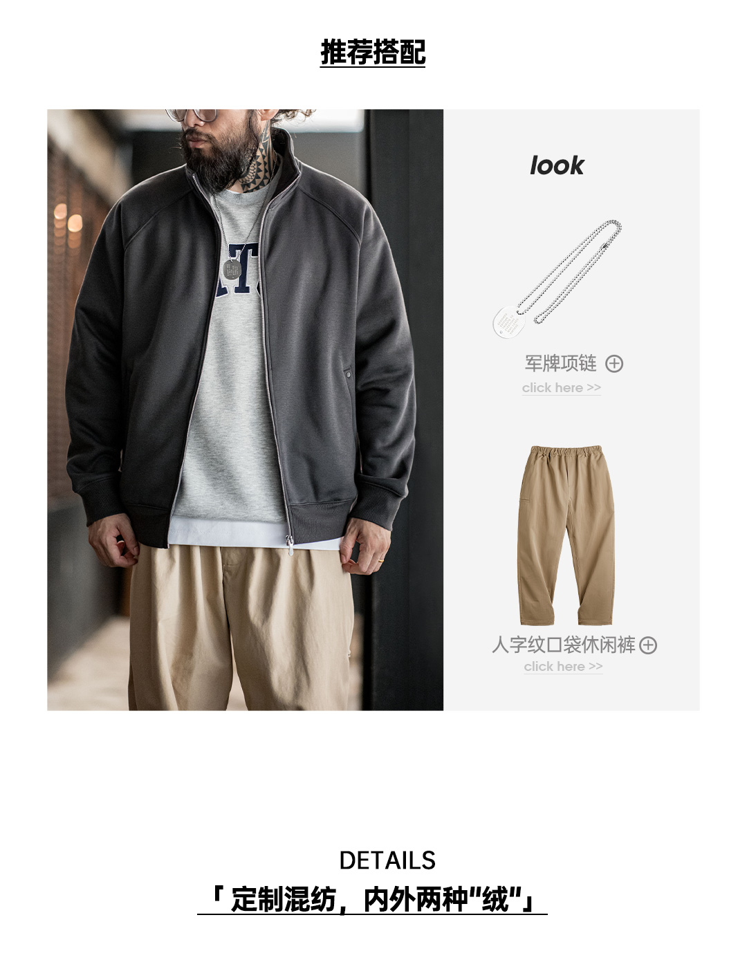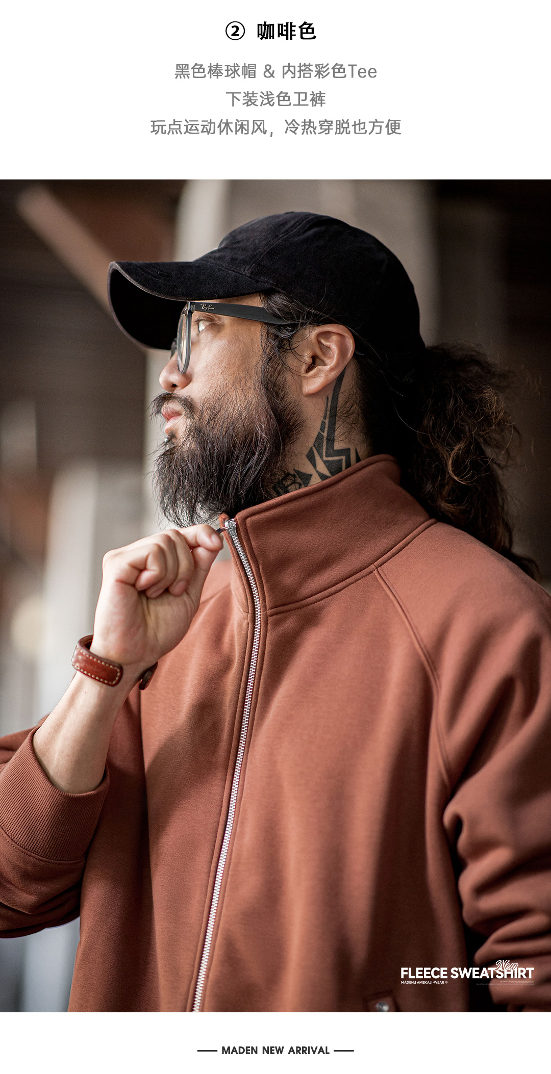 工装优选美式休闲摇粒绒开衫卫衣学院风立领加绒运动拉链外套男秋