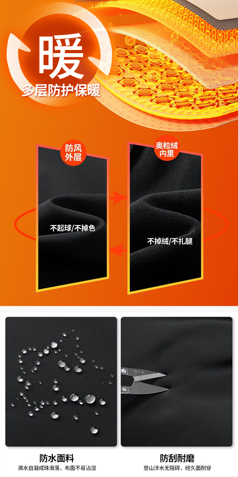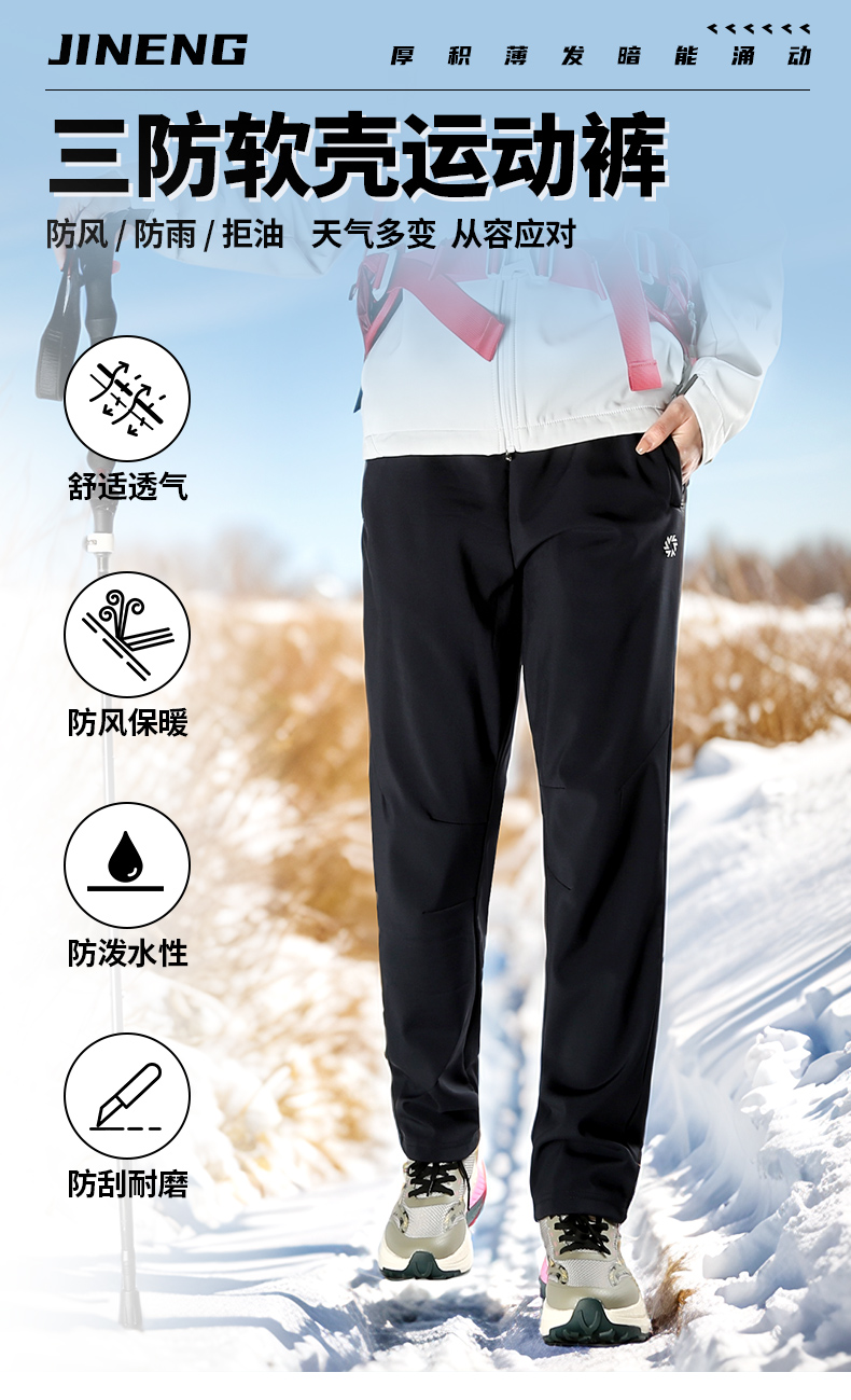 积能 秋冬奥粒绒软壳裤户外防风冲锋裤男女加绒加厚保暖裤