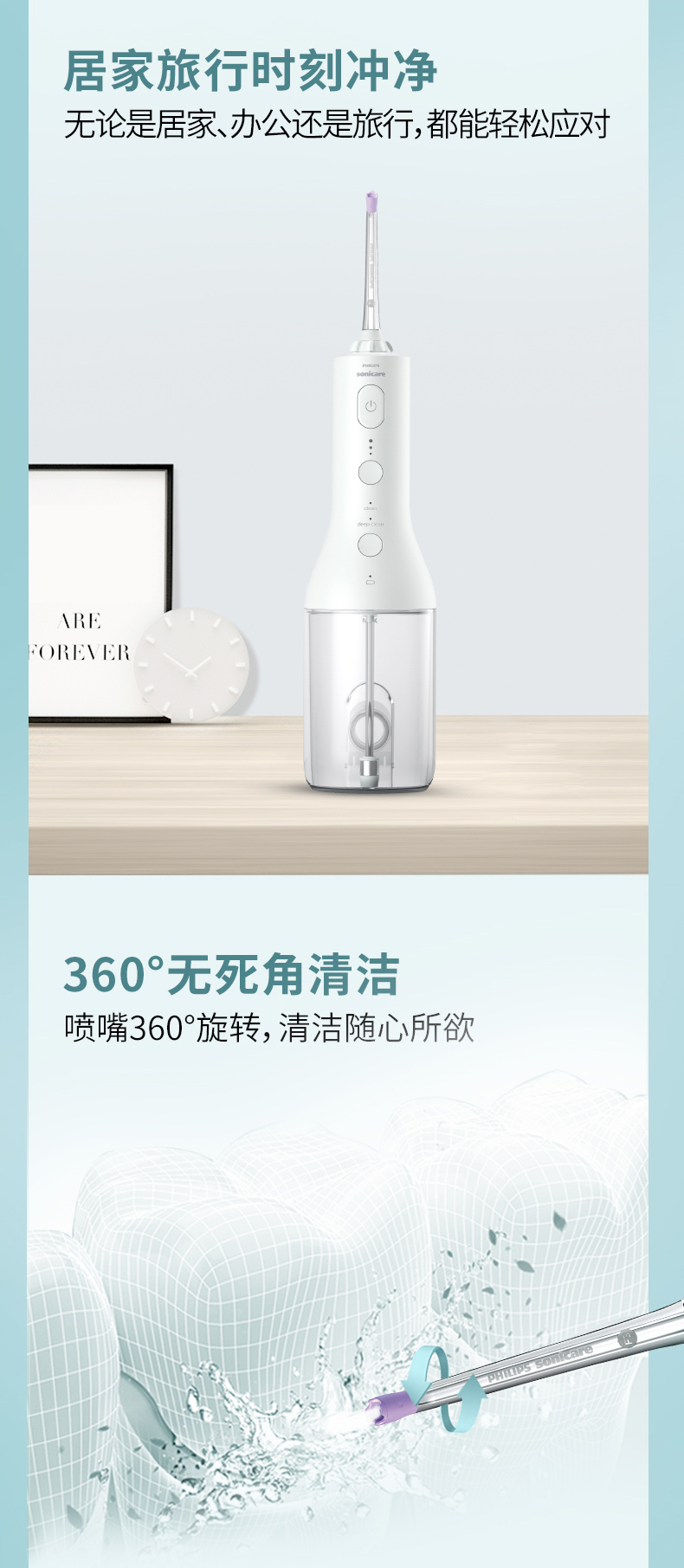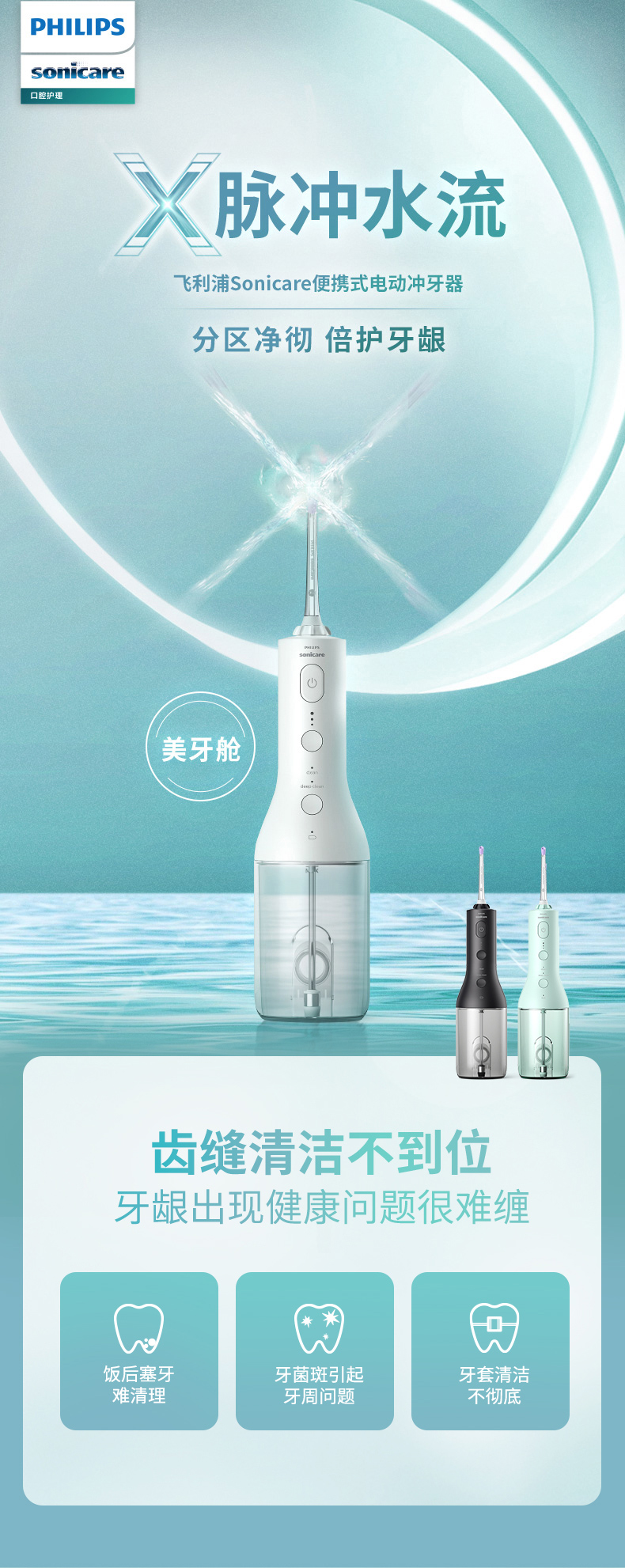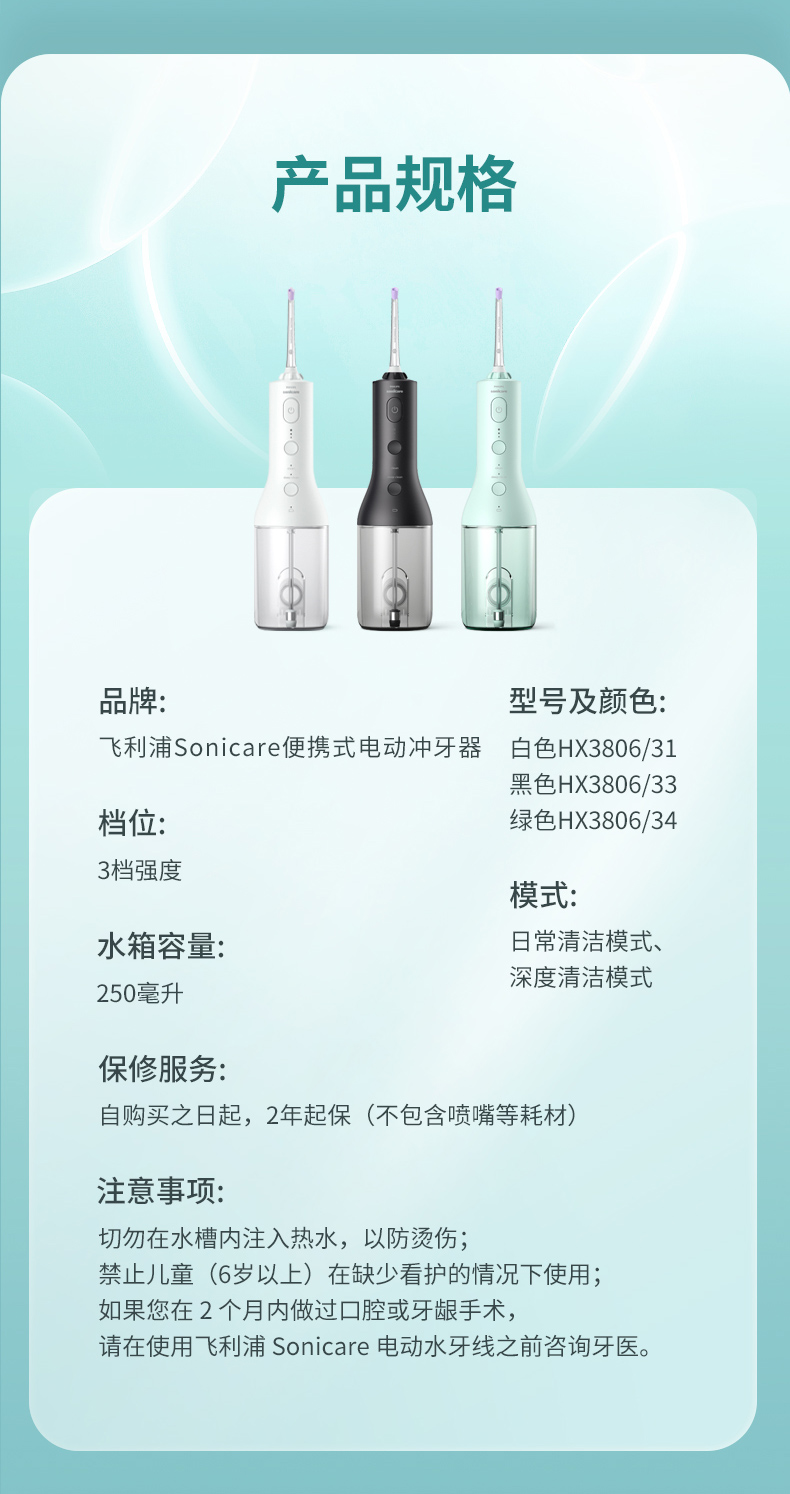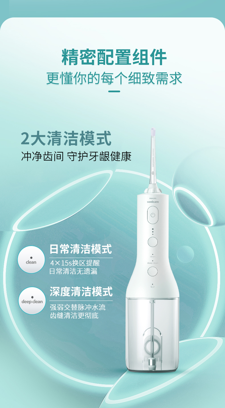 【6F】飞利浦水牙线家用洗牙器便携式电动冲牙器牙齿正畸专用神器HX3826
