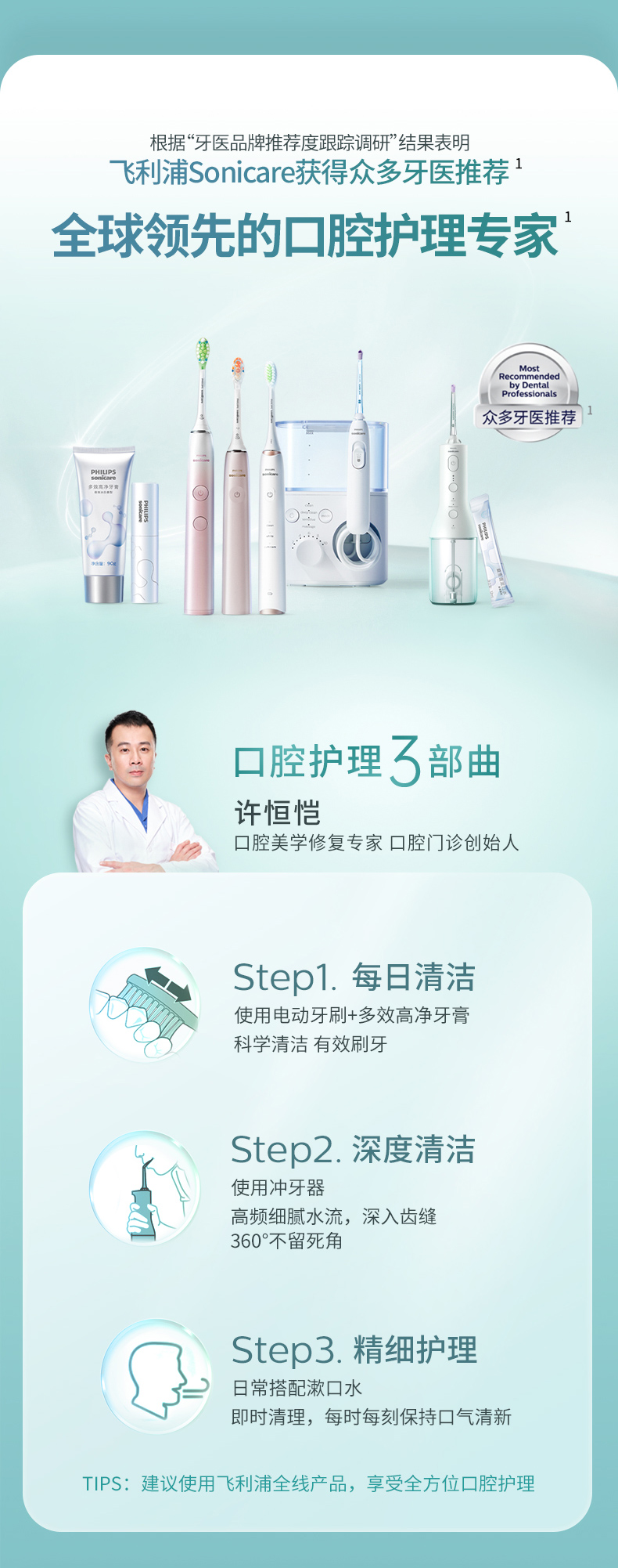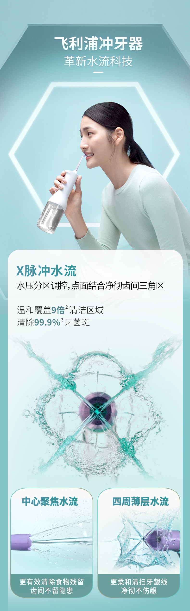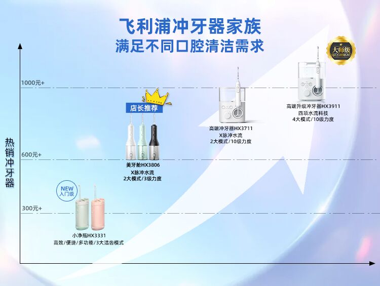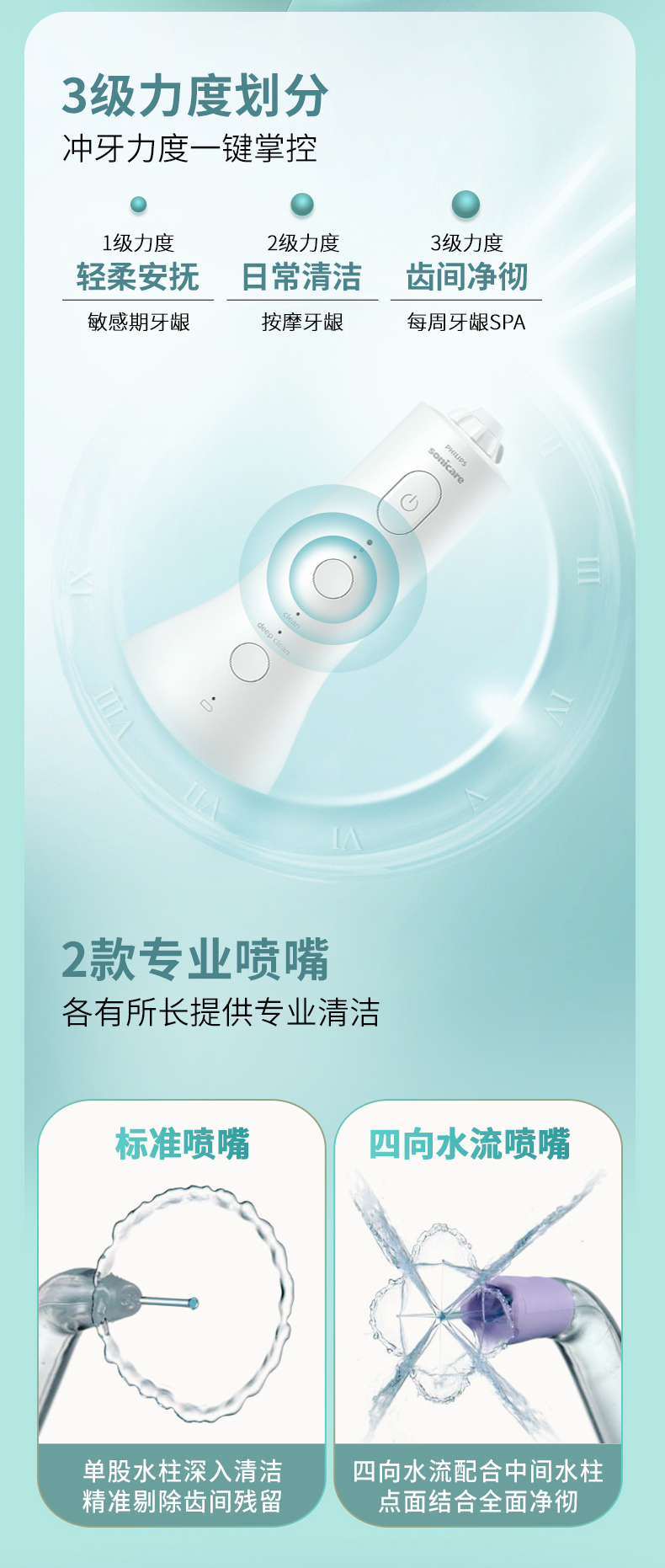 【6F】飞利浦水牙线家用洗牙器便携式电动冲牙器牙齿正畸专用神器HX3826