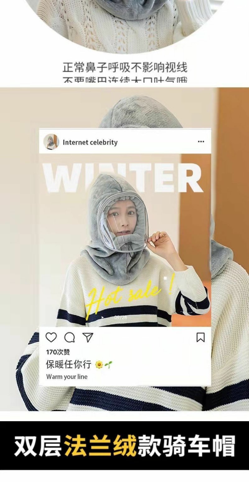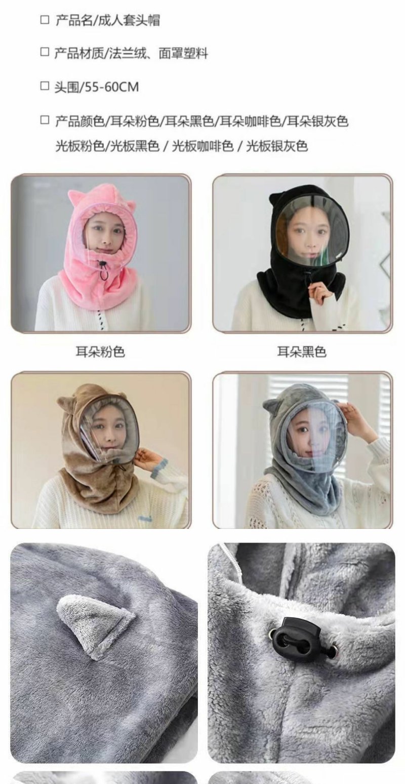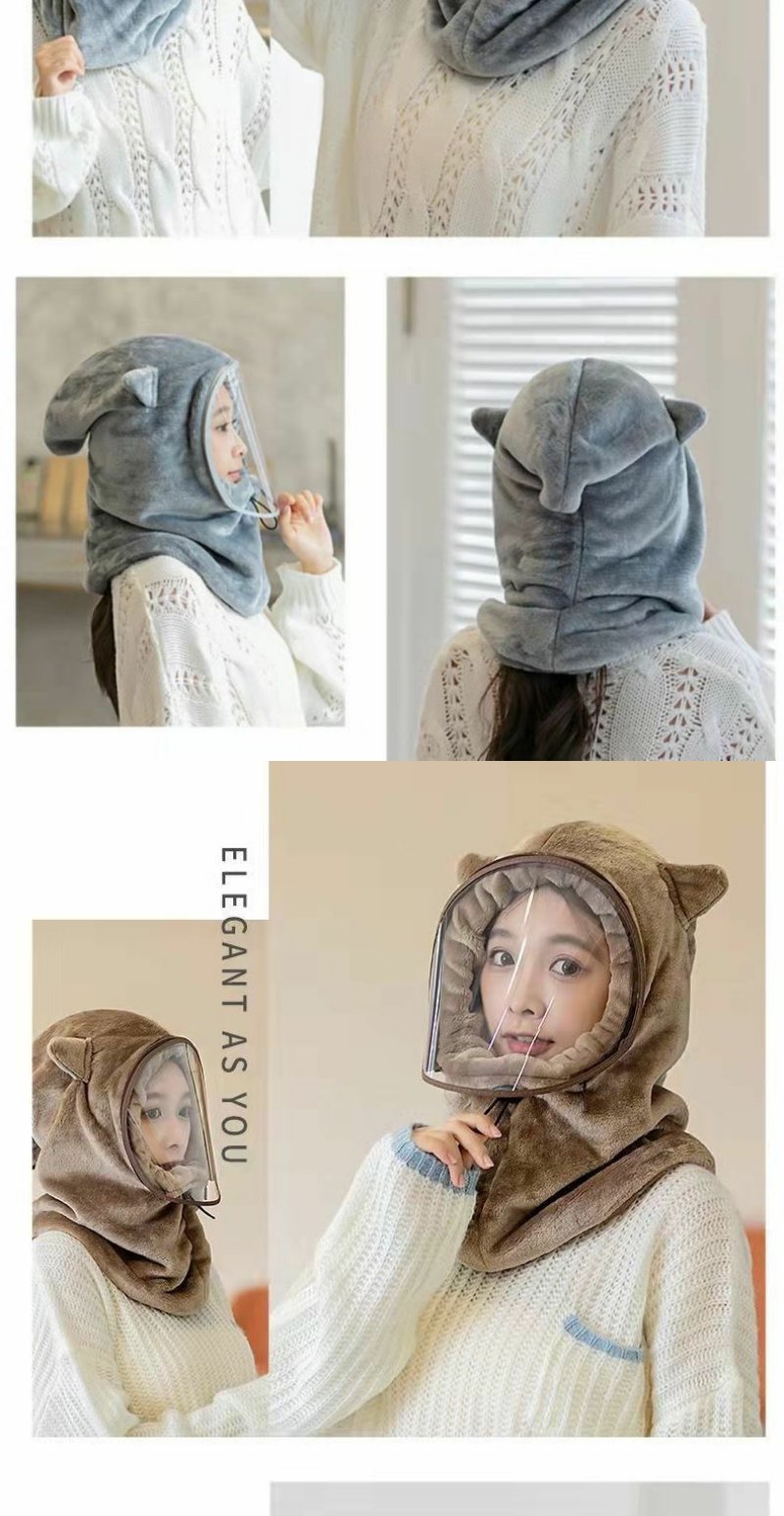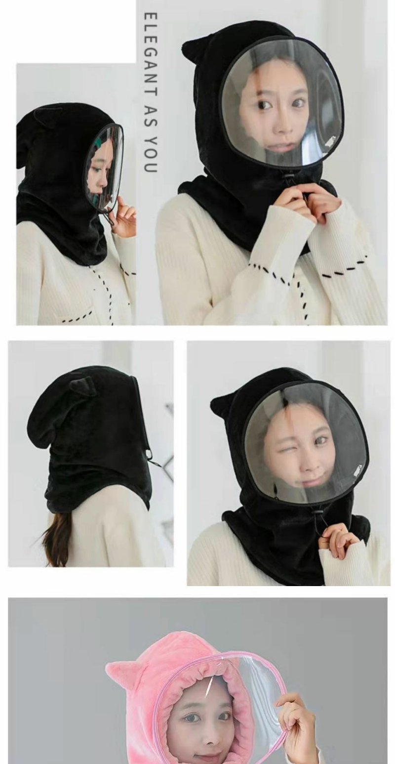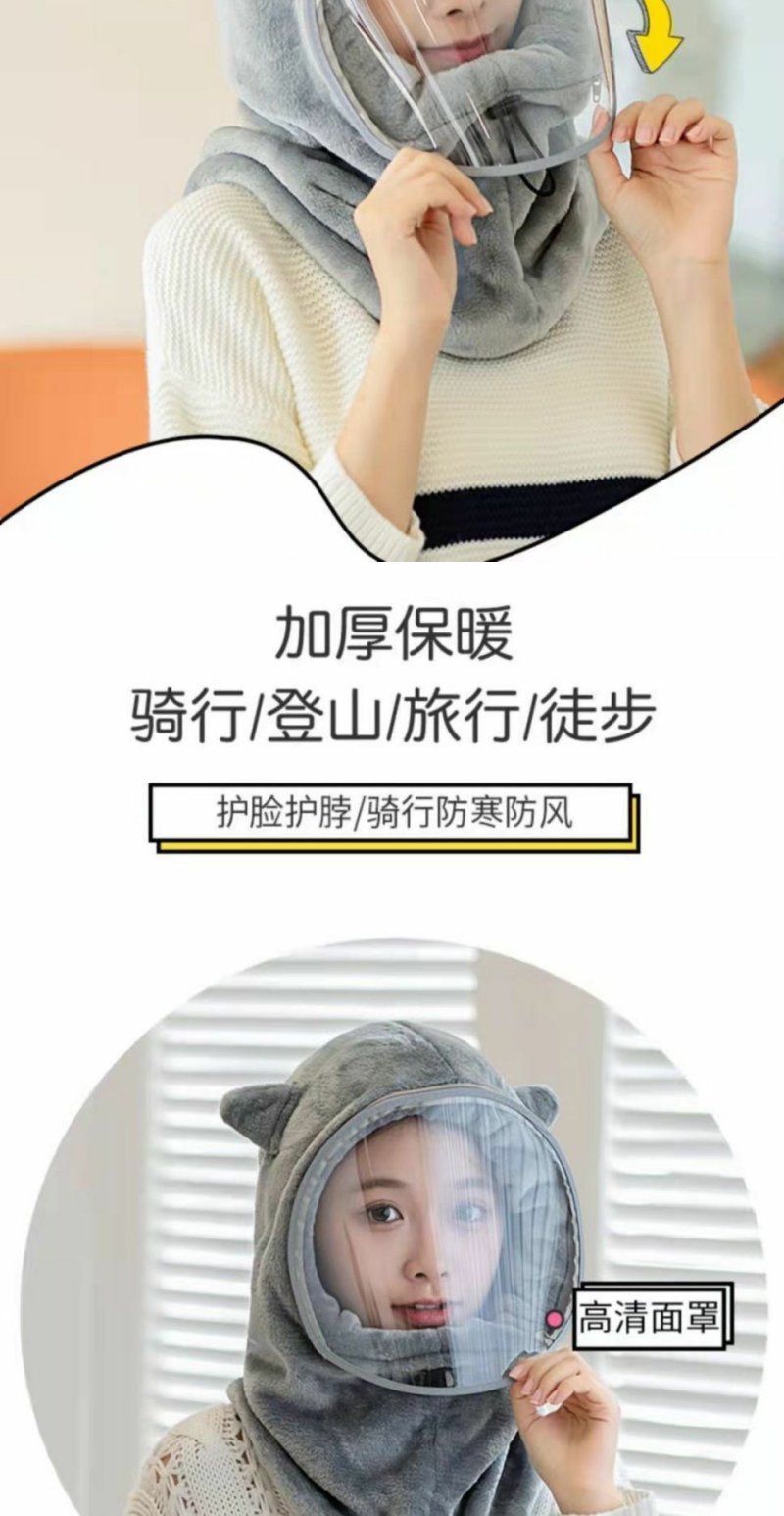 网红秋冬帽子新款护脖套头骑车防风帽女加厚保暖护耳帽带面罩