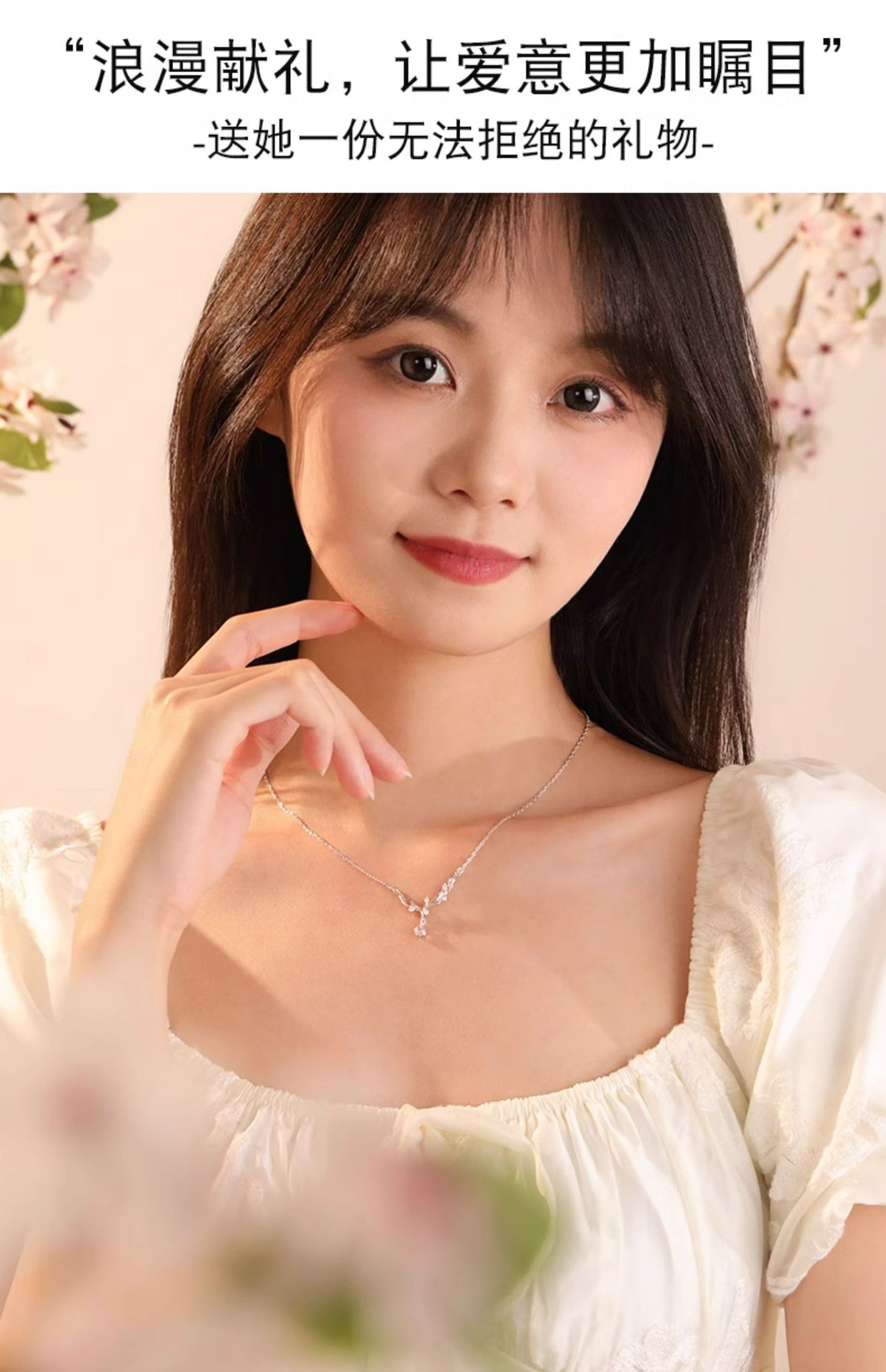 【丘比特之心】六鑫珠宝 s999足银粉钻爱心翅膀流苏项链 甜美百搭