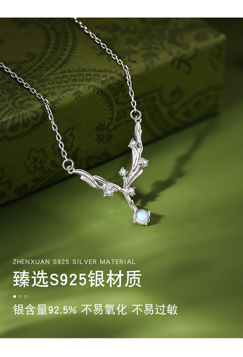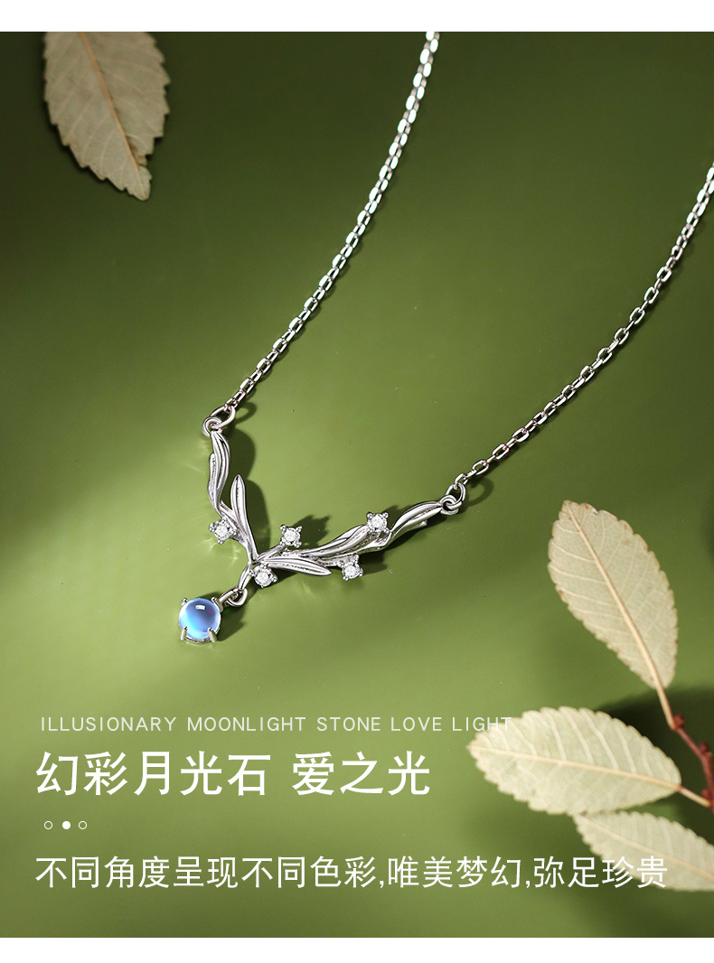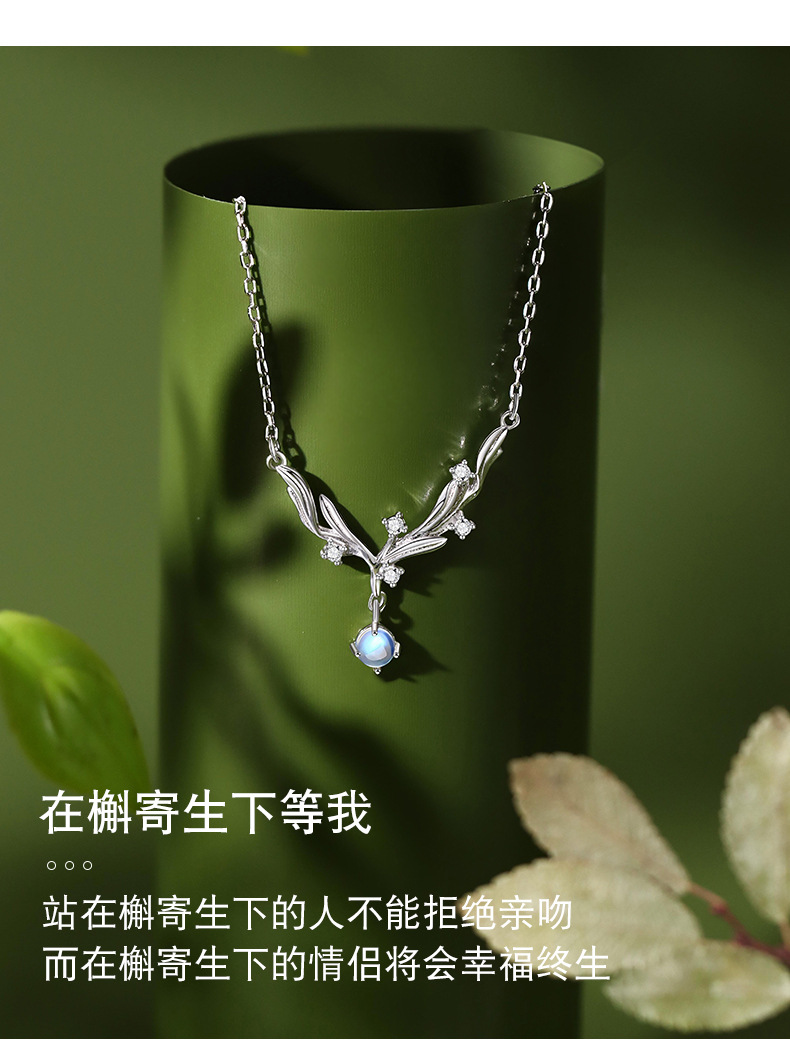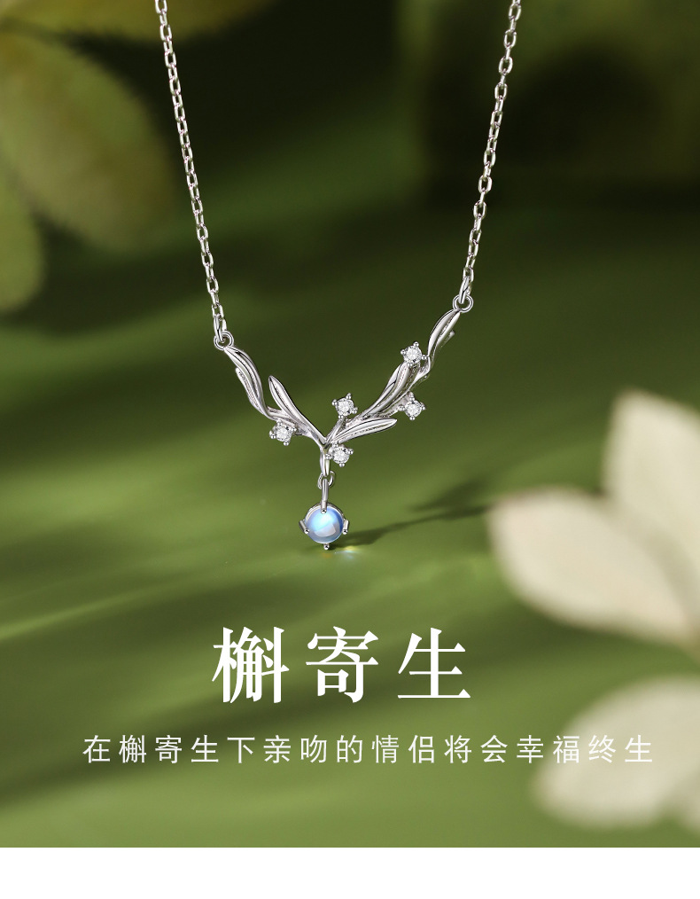 六鑫珠宝 槲寄生月光石吊坠 轻奢小众 S925纯银