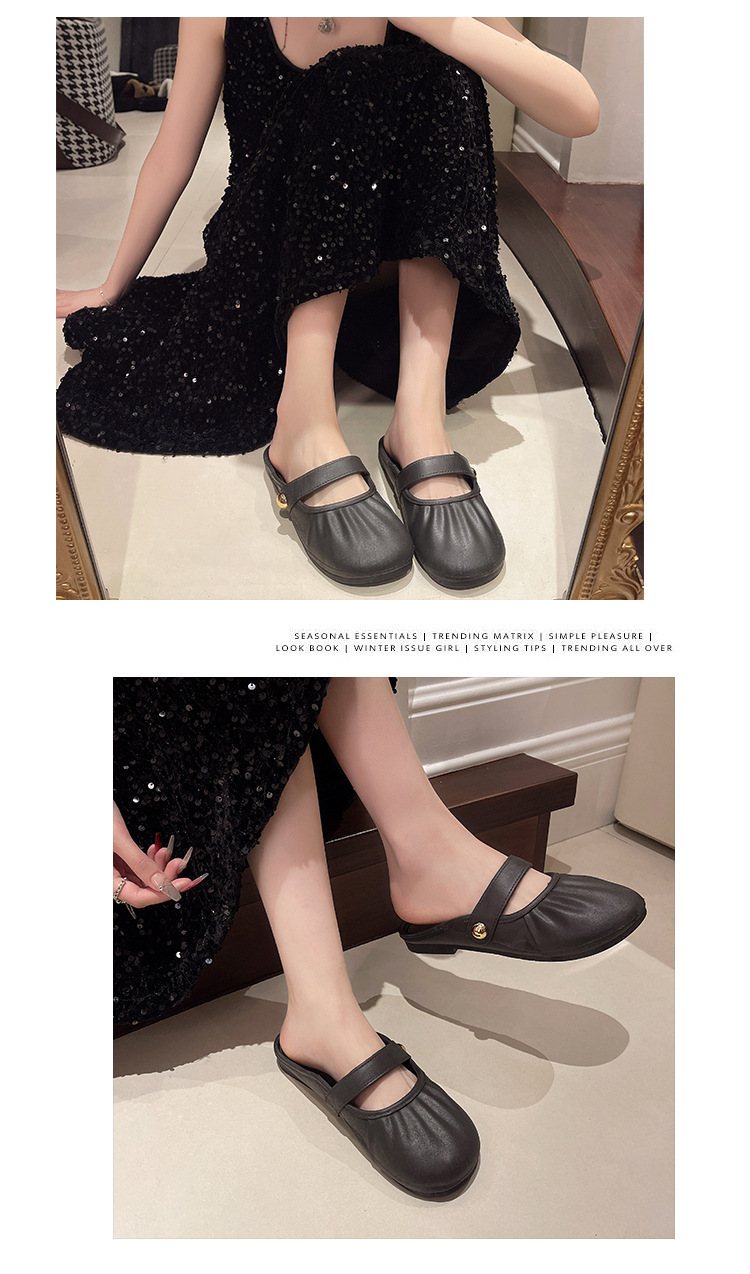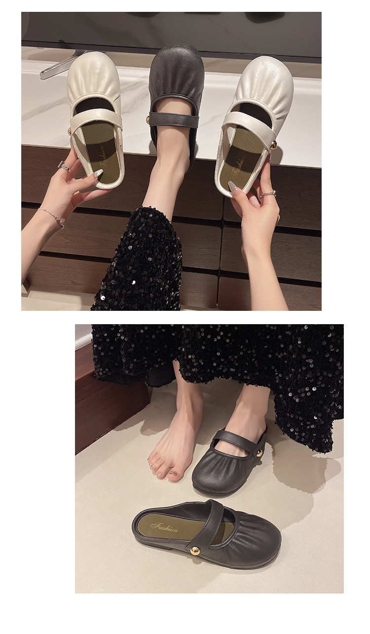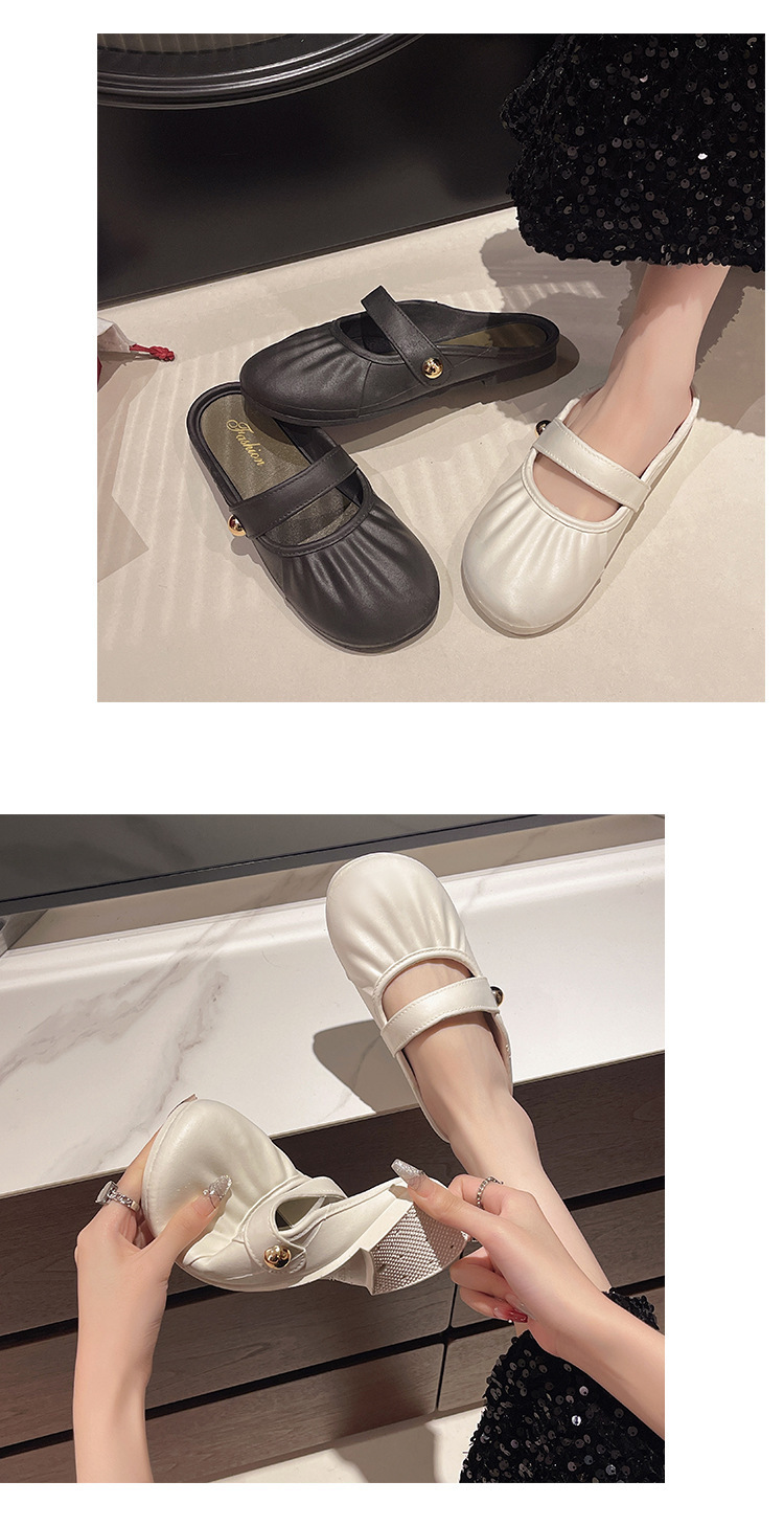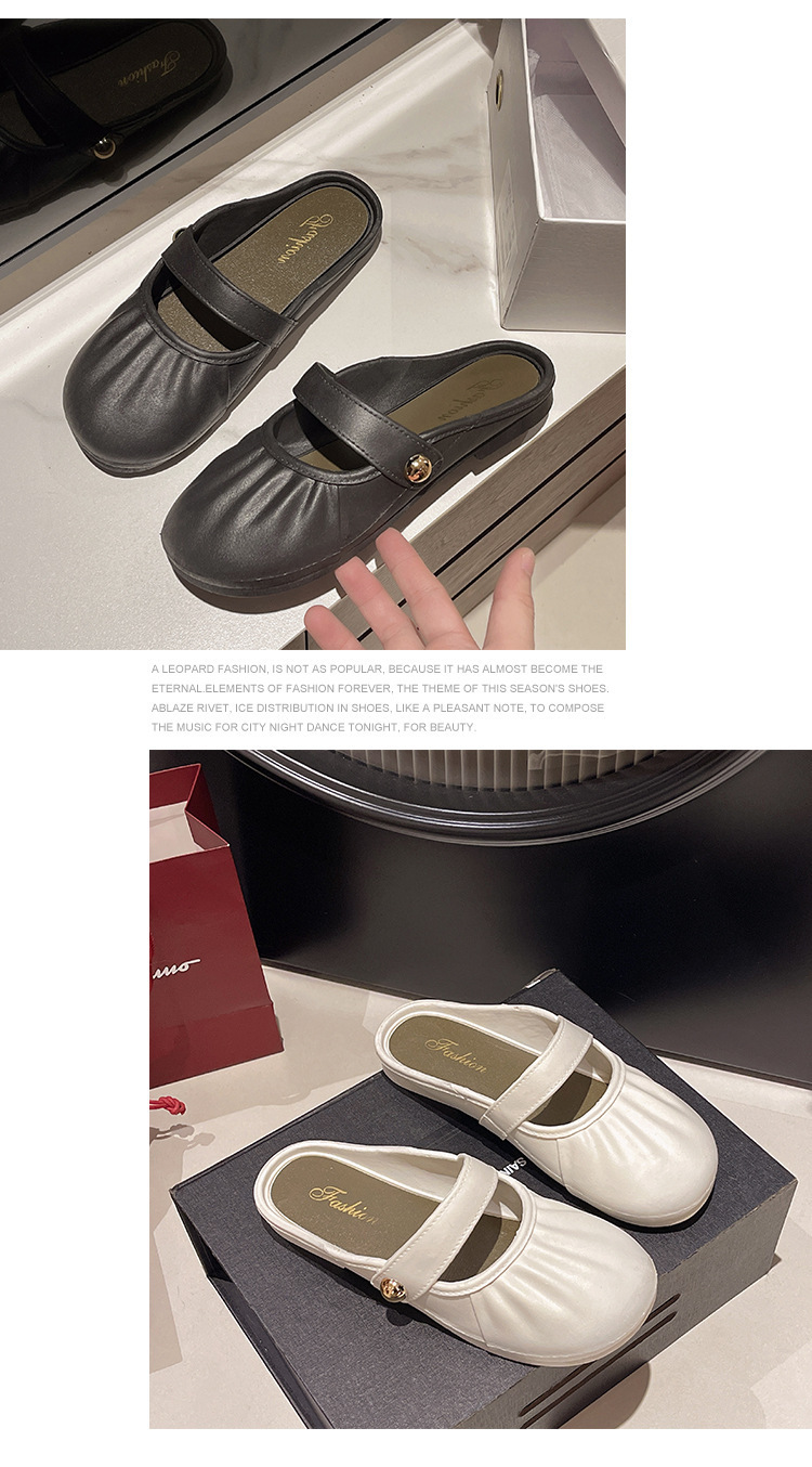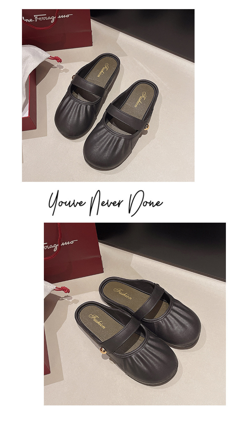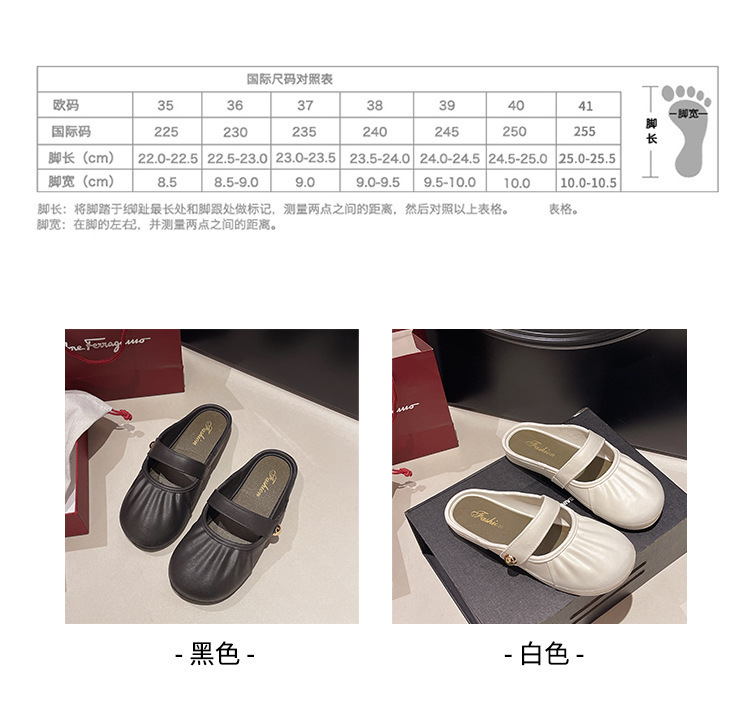 【百搭神器❗️褶皱软皮奶奶鞋】柔软轻盈,修饰腿型,亲肤舒适!包头半拖鞋女外穿复古平底一脚蹬懒人褶皱凉拖