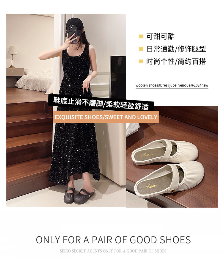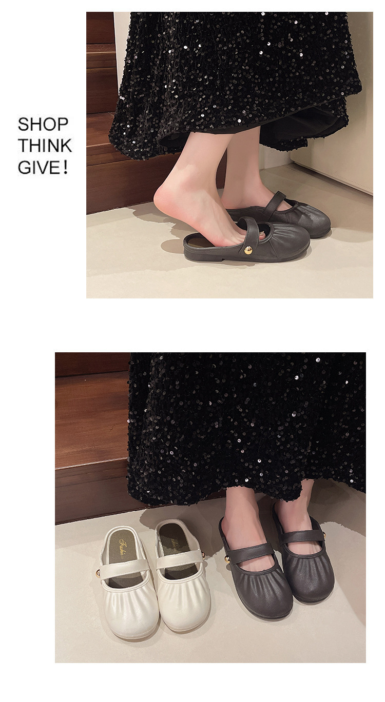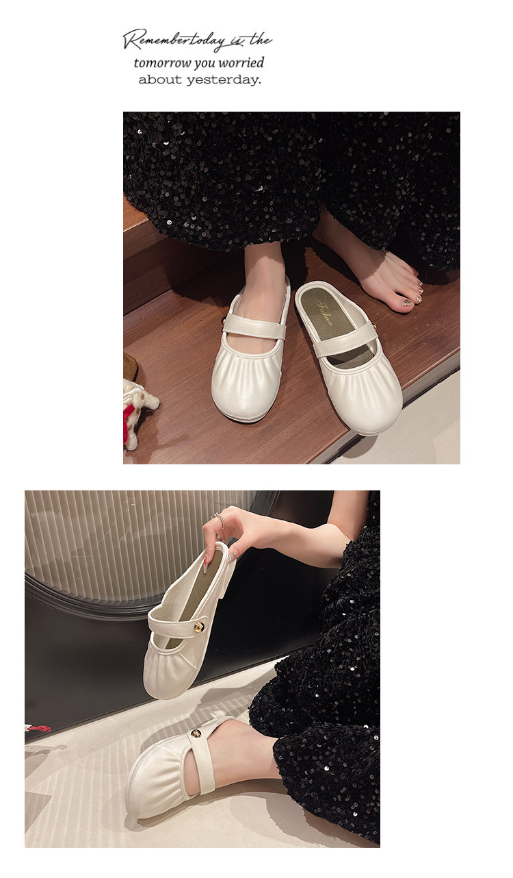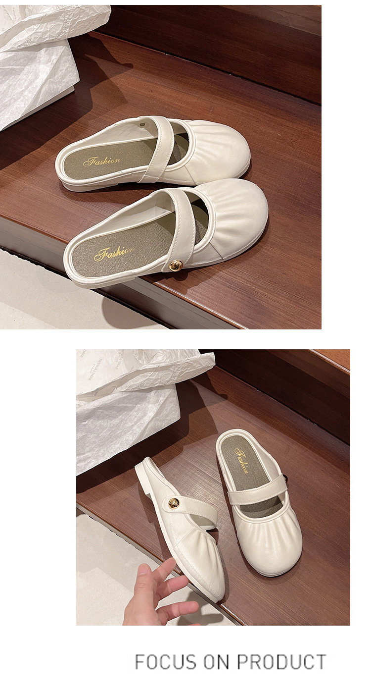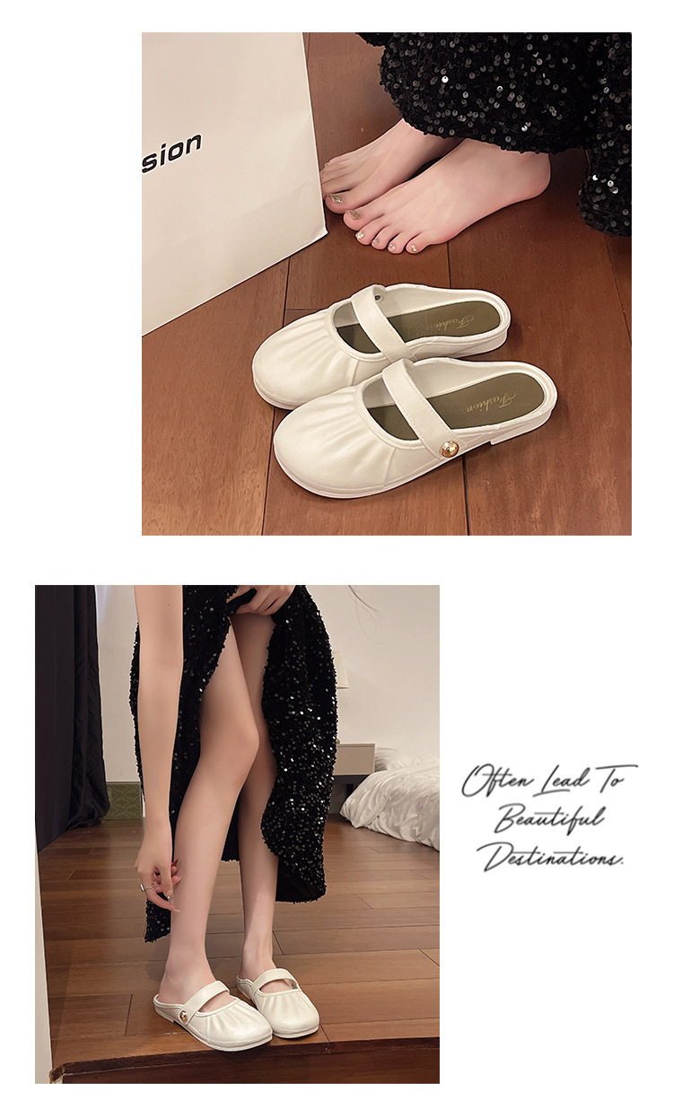 【百搭神器❗️褶皱软皮奶奶鞋】柔软轻盈,修饰腿型,亲肤舒适!包头半拖鞋女外穿复古平底一脚蹬懒人褶皱凉拖