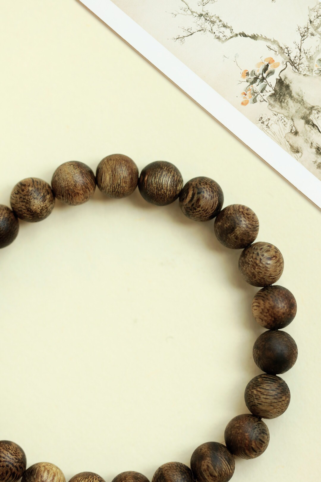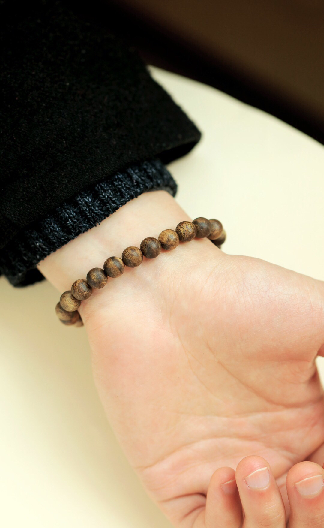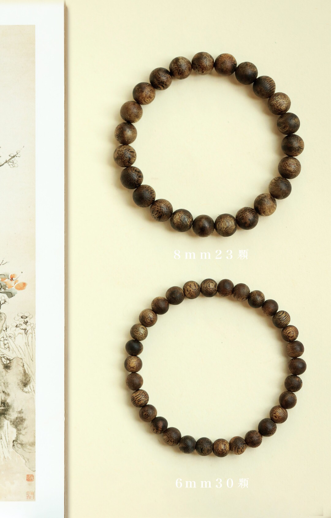 绿棋楠 沉香手串 通体结黑油,浑然天成, 结油饱满,清幽甘醇! 香气扑鼻,冰凉味怡人, 佩戴别致儒雅。